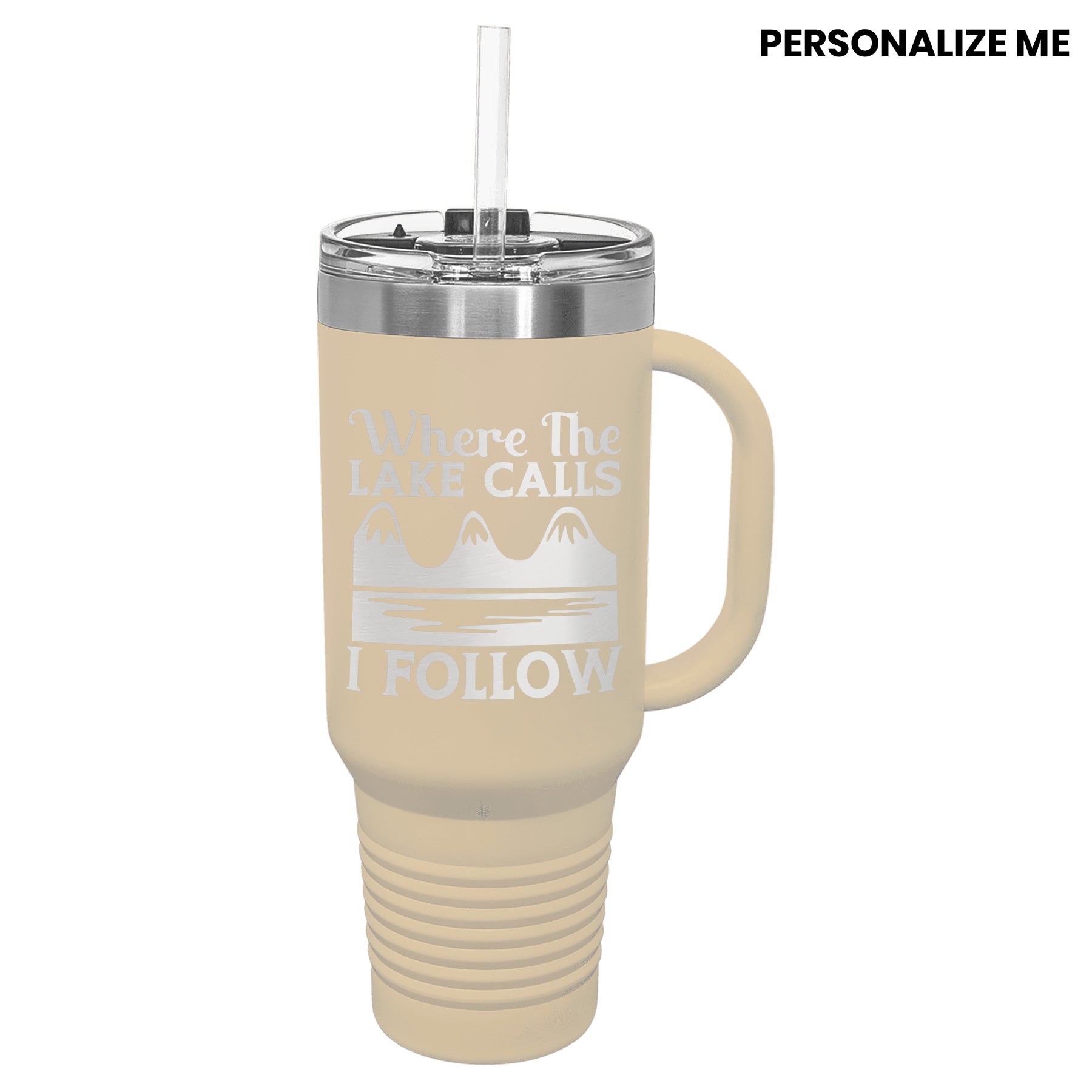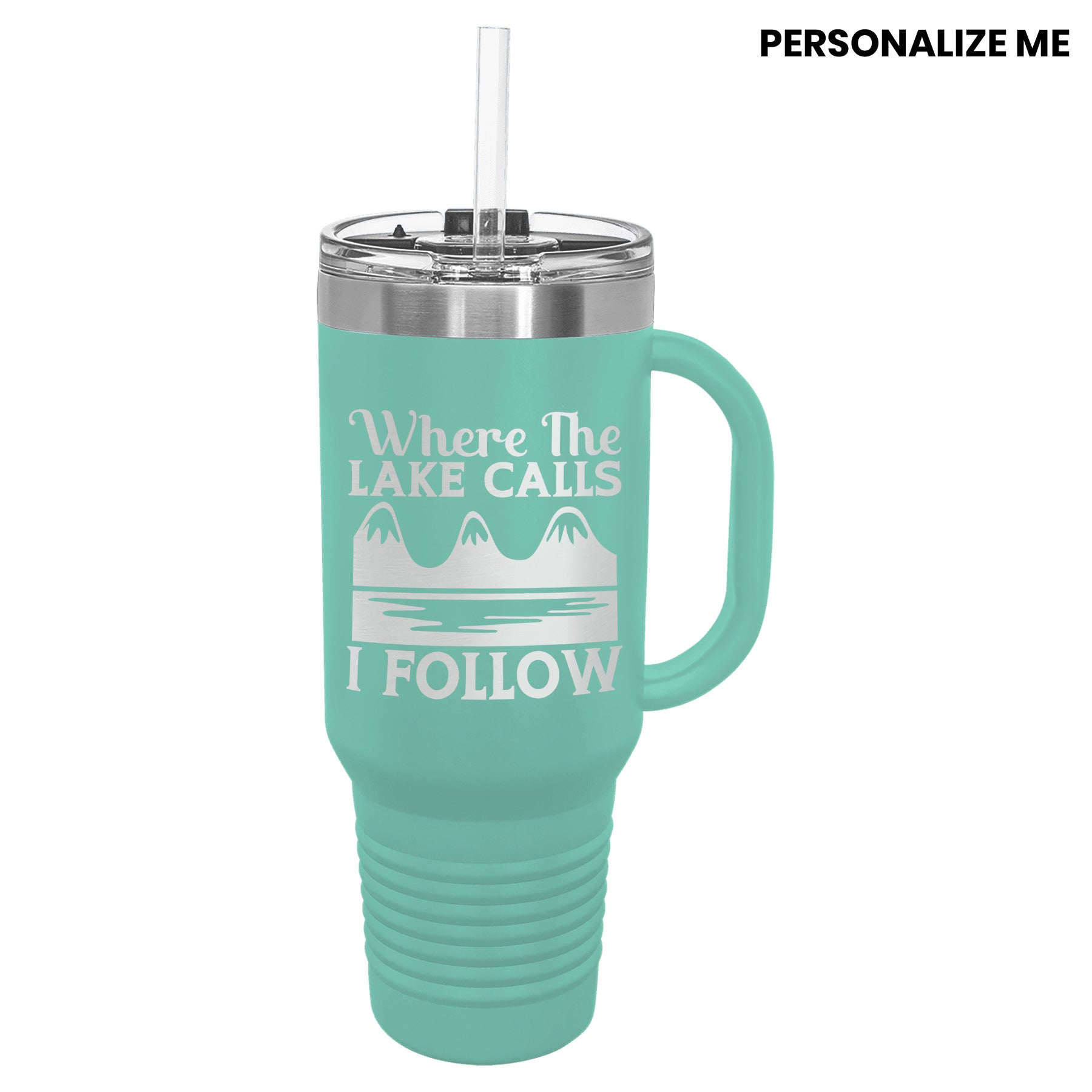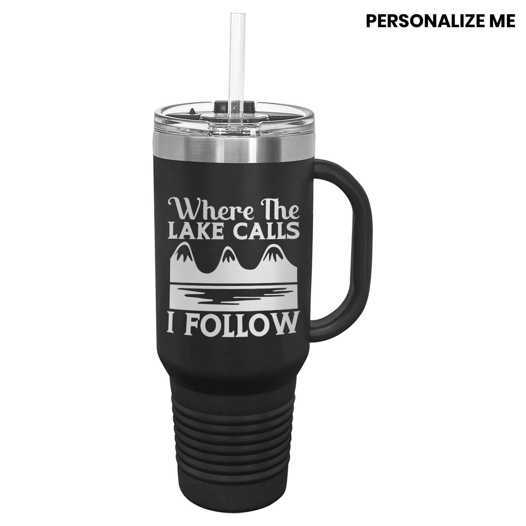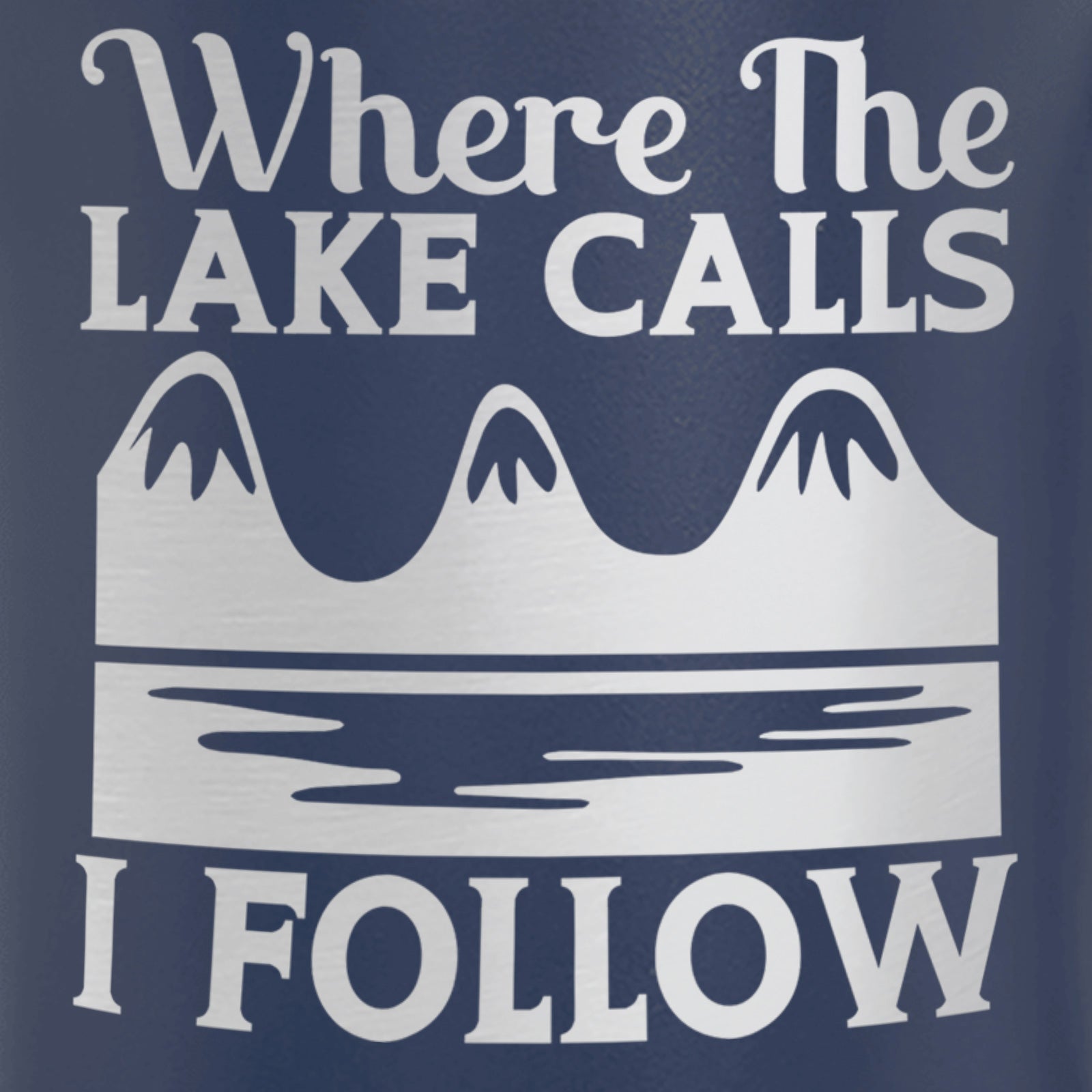 Where The Lake Calls I Follow Text Image Tumbler with Handle