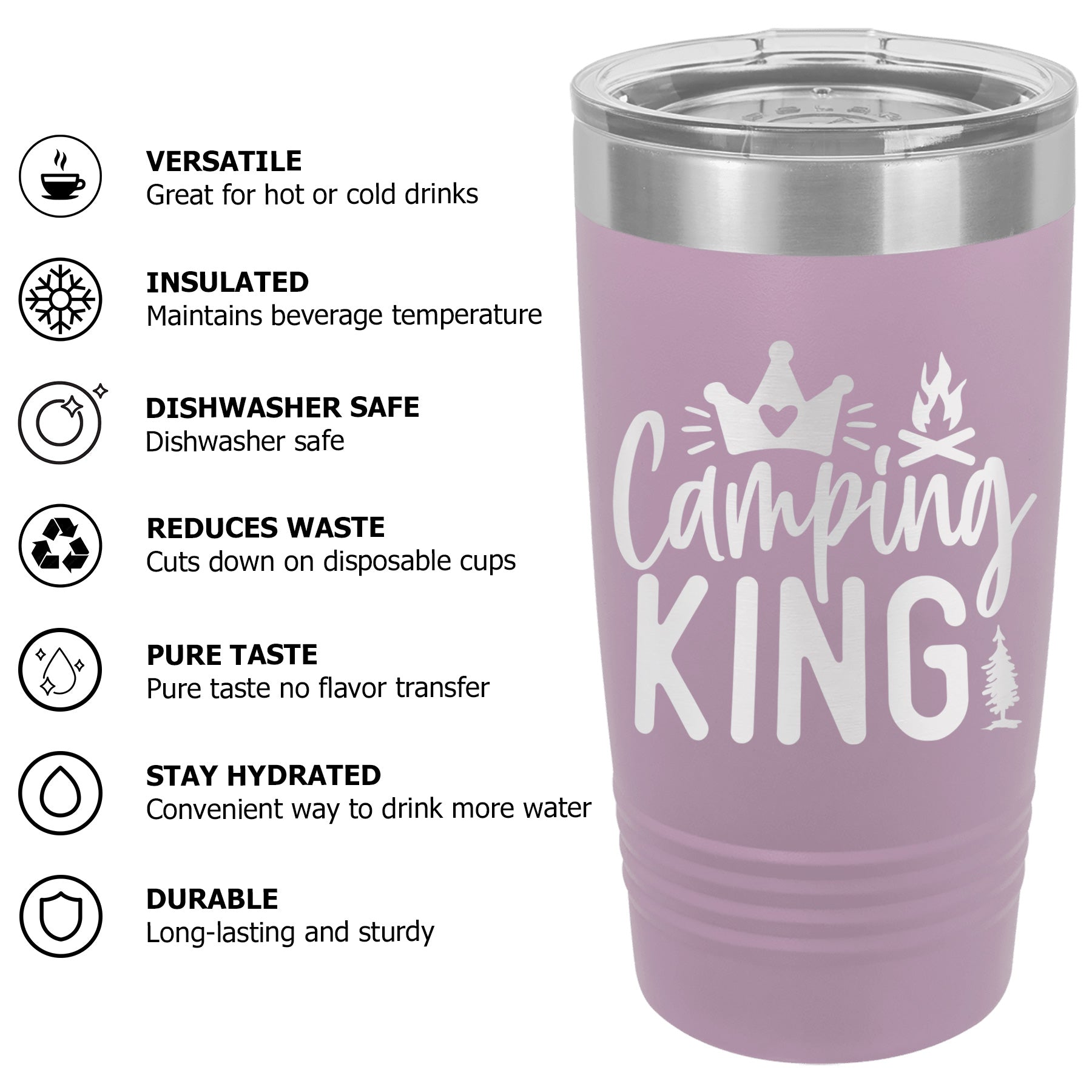 Available Sizes: 20 oz, 30 oz Designed to fit standard car cup holders for easy travel.