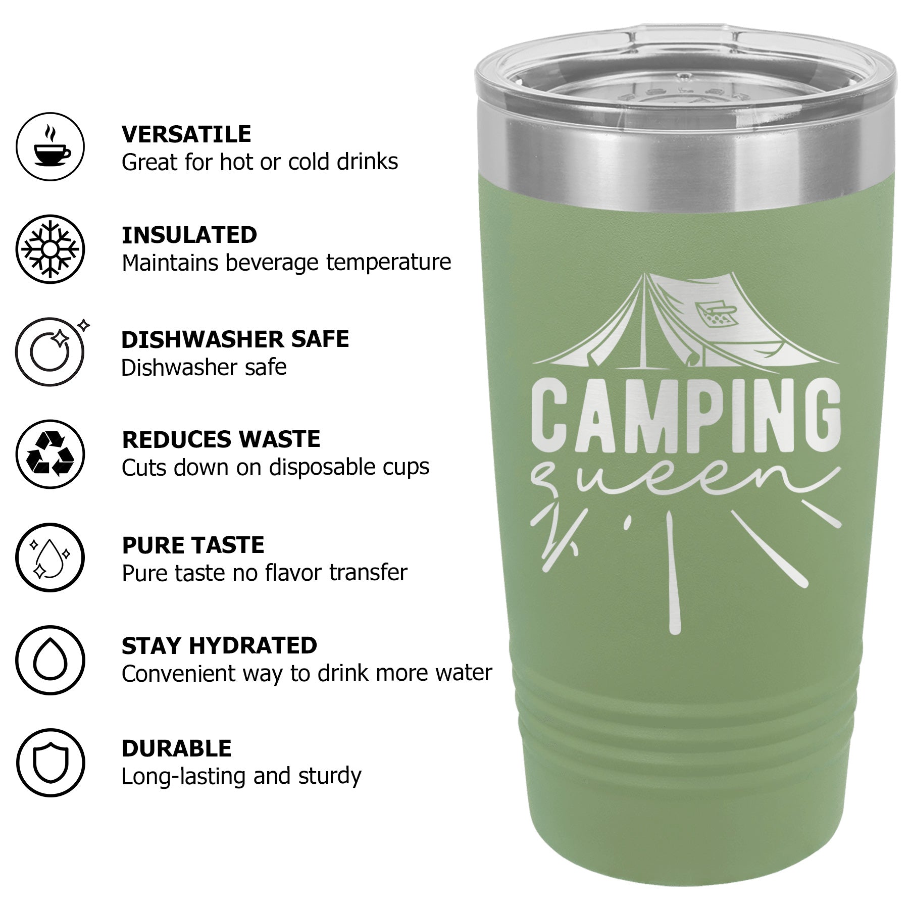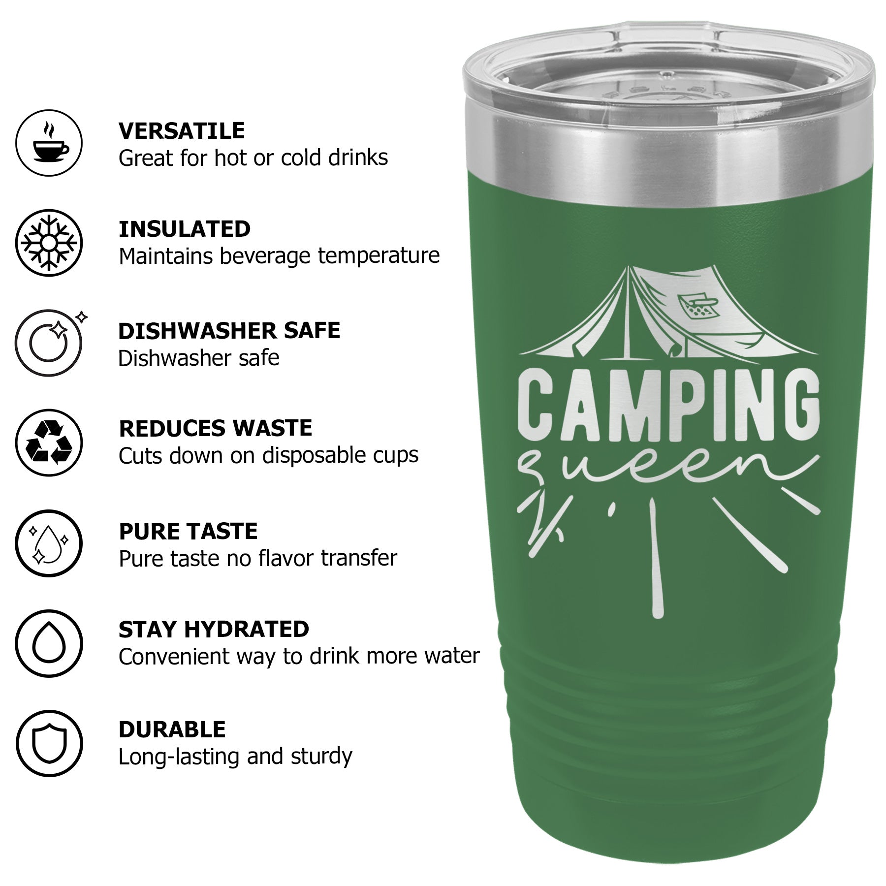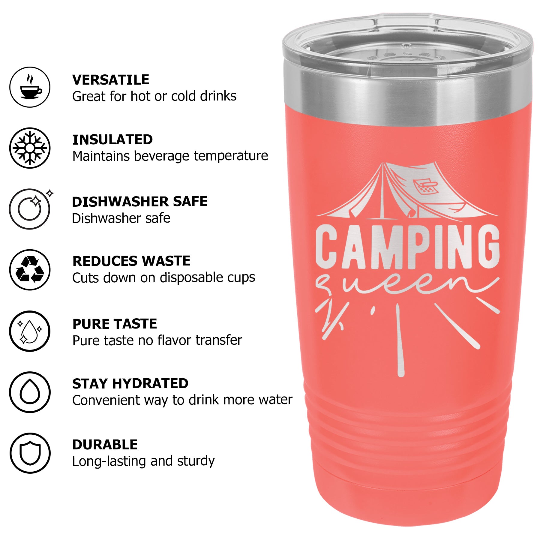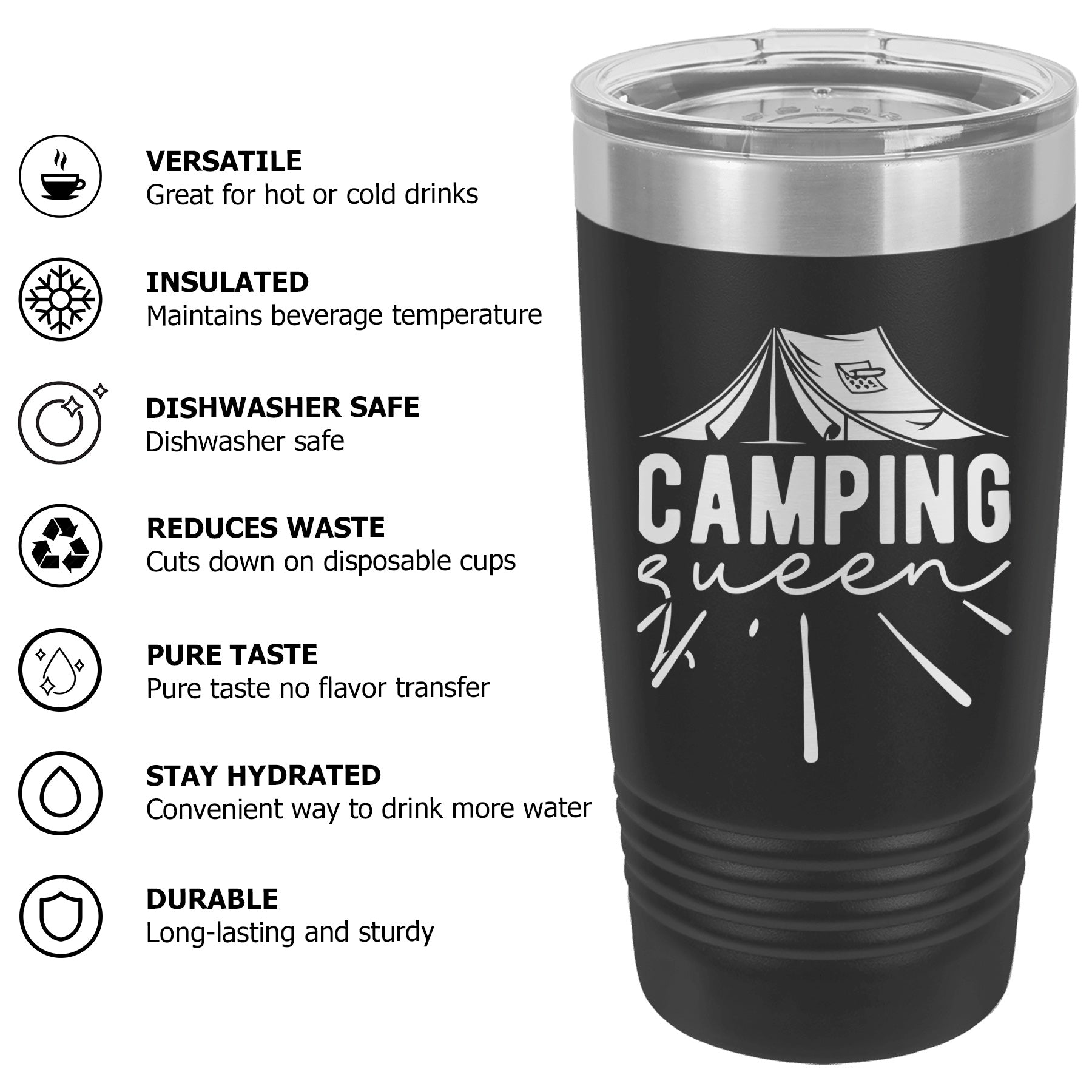 The Queen of all camping adventures Tumbler Cup Mug is perfect for those embracing campground queen vibes. Rule the camping world with this stylish mug, ideal for camping queen adventures. Embrace the queen of campsites with this must-have item.
