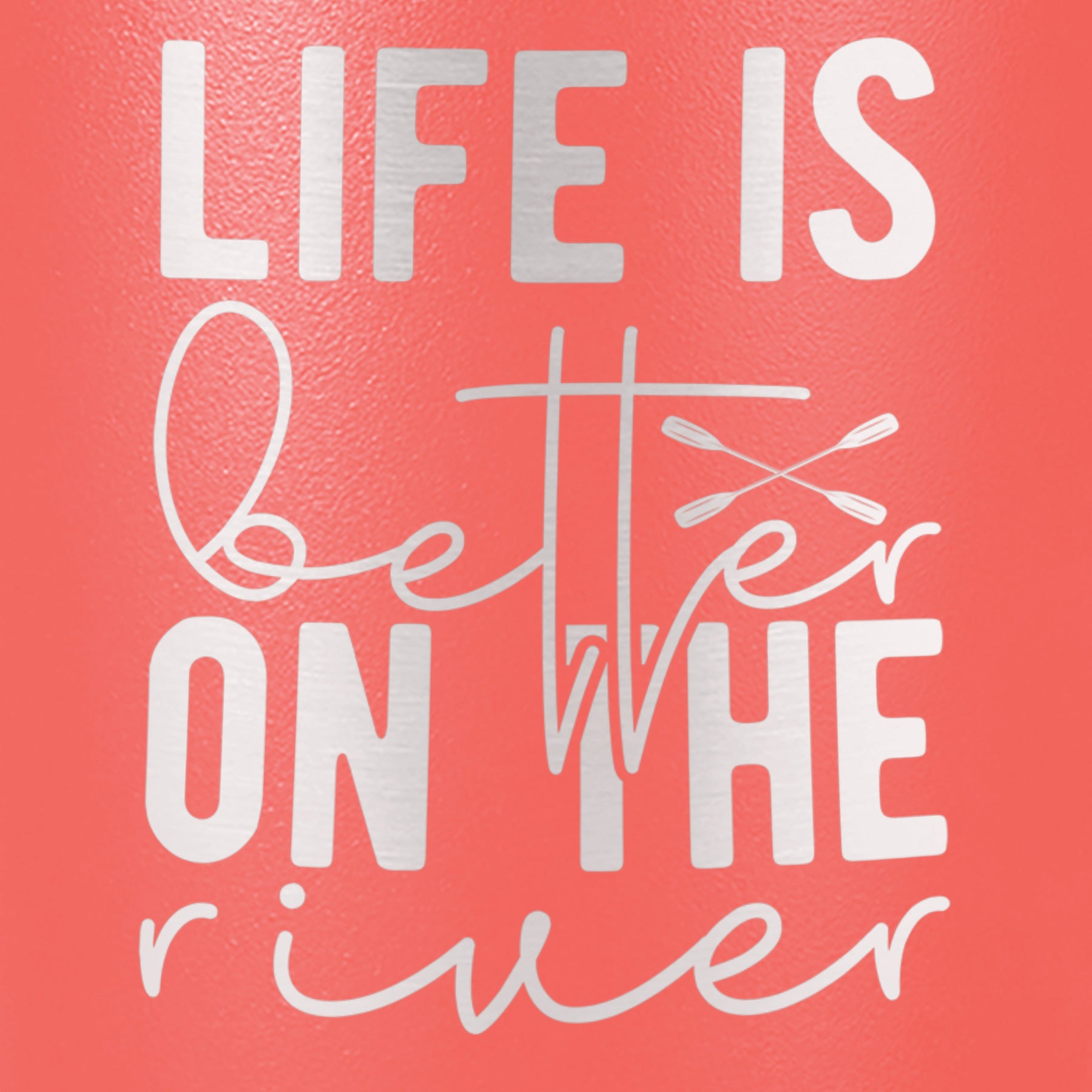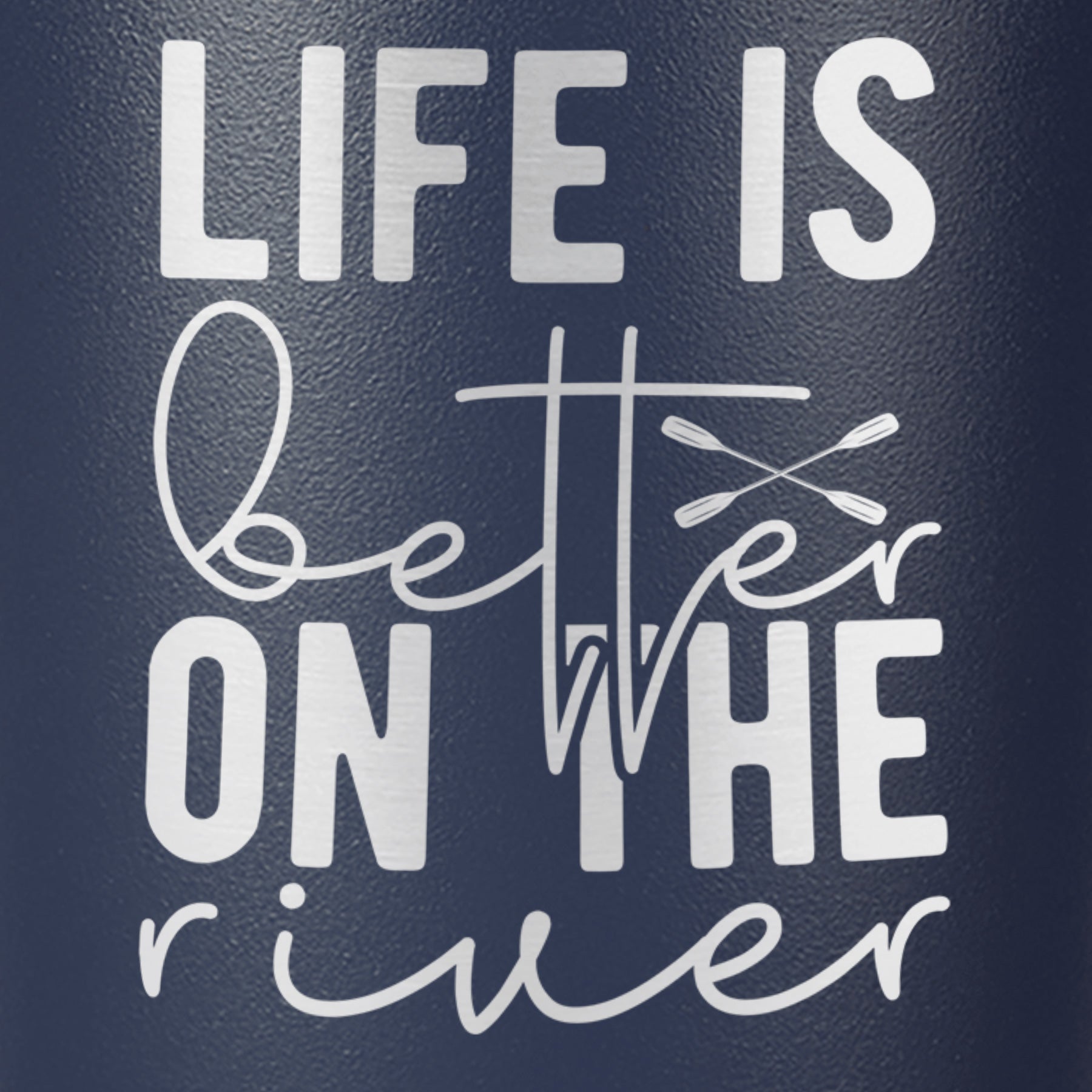 The Enjoy life on river adventures Tumbler Cup Mug is ideal for those who love river adventure. With a charming river life quote art design, this mug is perfect for riverside camping and spring nature retreats. Life is better wet with this unique mug.