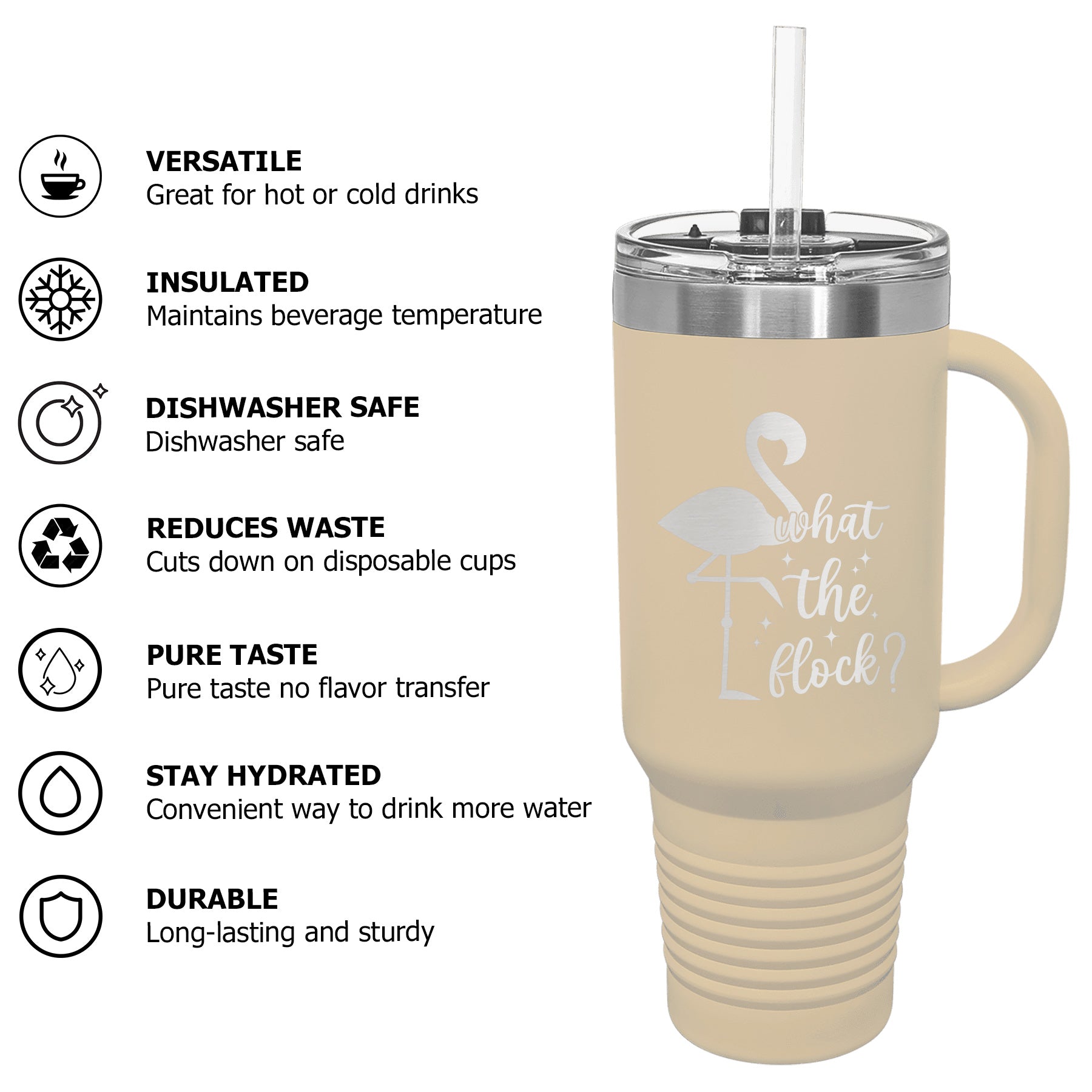 What The Flock Flamingo Beach Vibe Tumbler with Handle