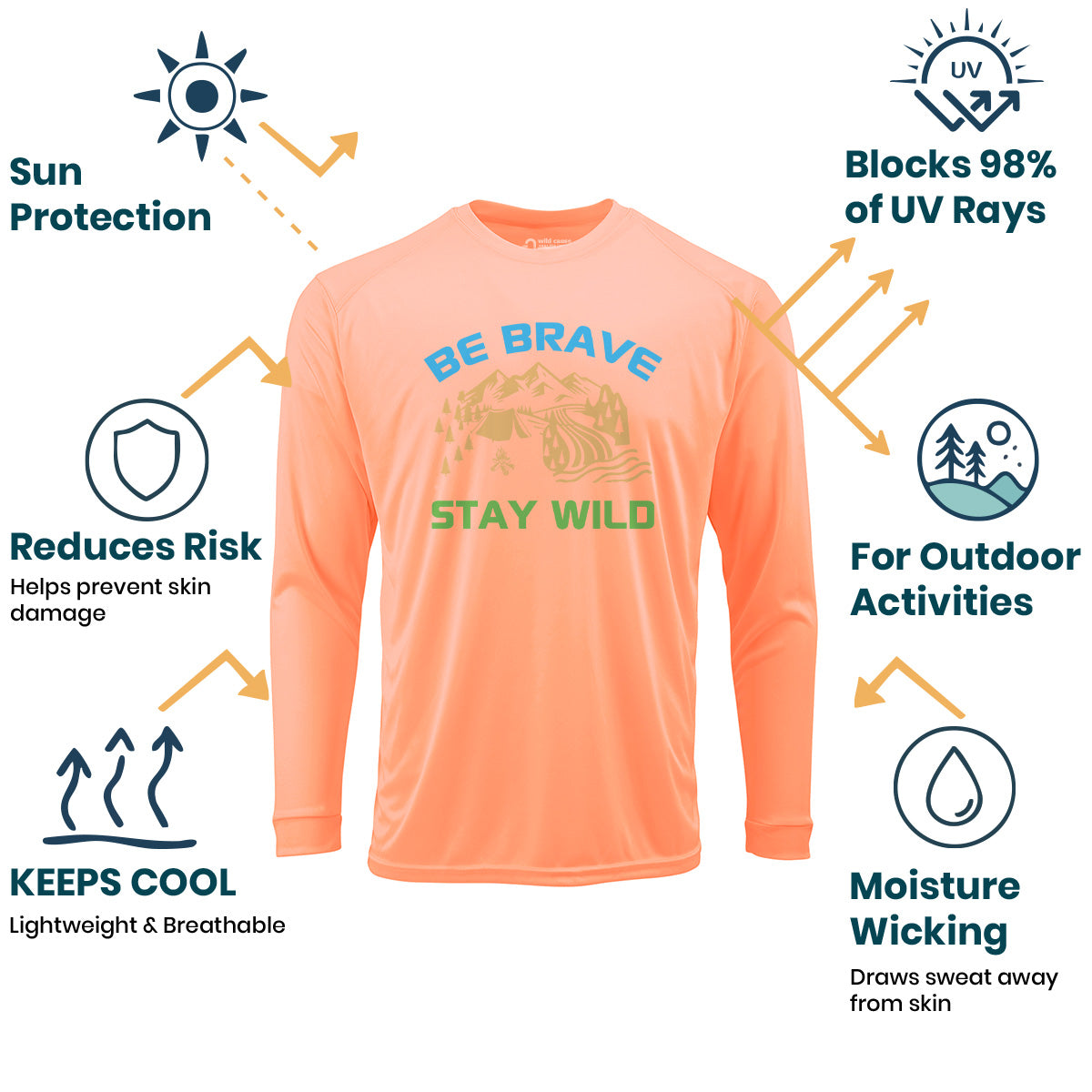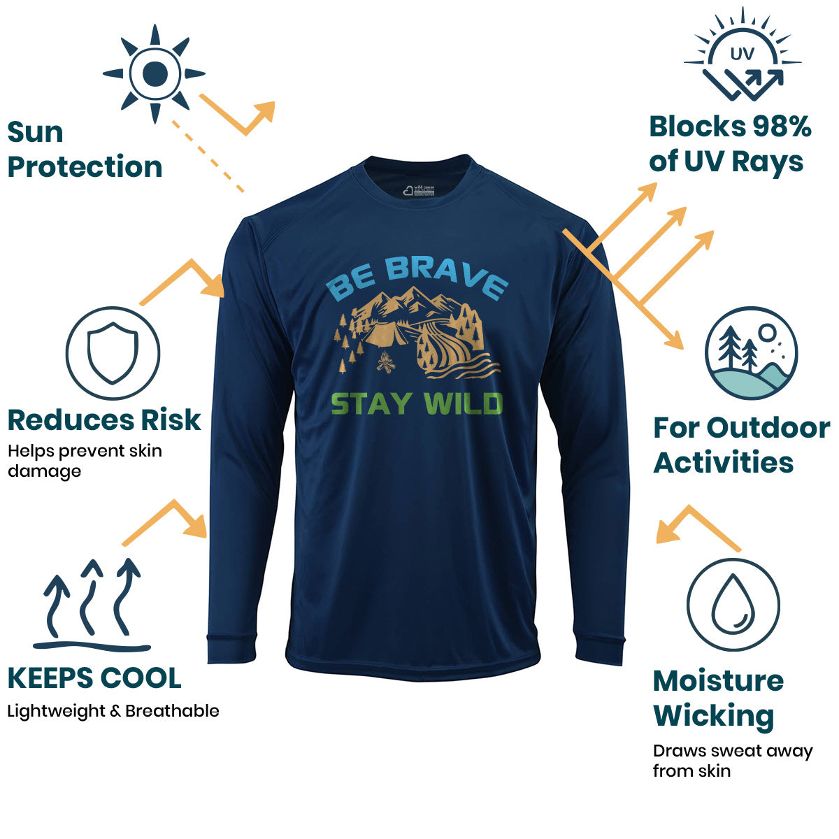 Be Brave Stay Wild Camping Life Sun Protection UV Performance Shirt UPF 50+