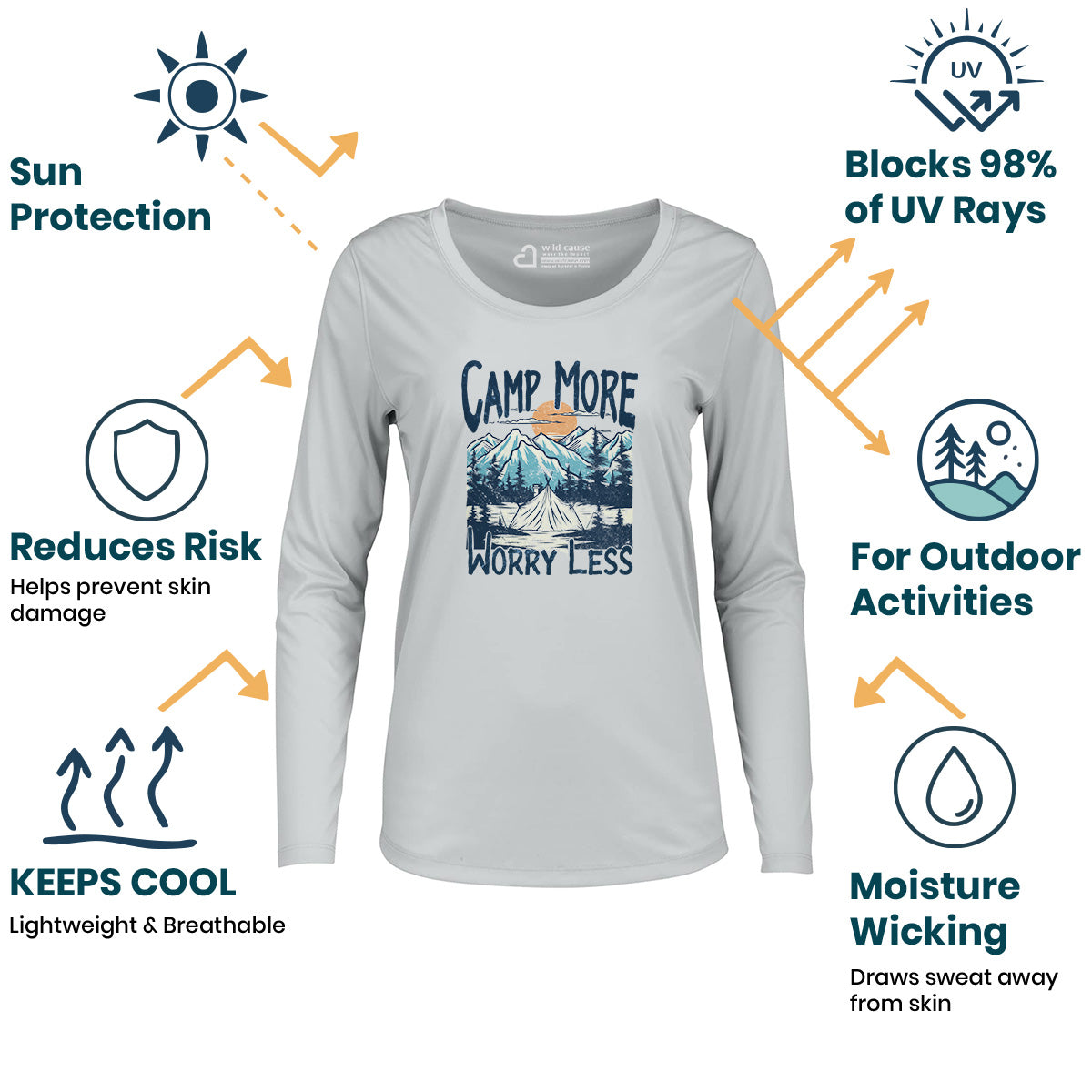 Camp More Worry Less Open-Sky Wilderness Women Sun Protection UV Performance Shirt UPF 50+