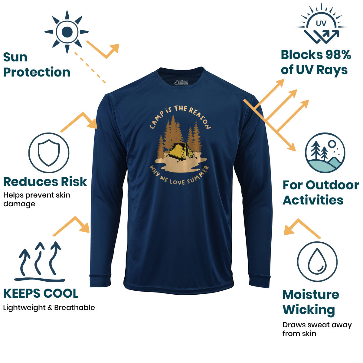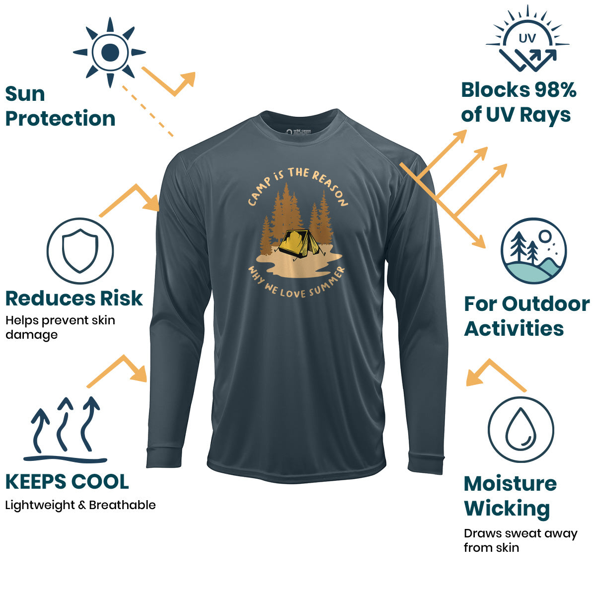 The Camping is why we love summer Sun Protection UV Performance Shirt UPF 50+ is perfect for special summer camp days. Enjoy the best summer camping vibes only with this shirt, designed for warm nights and bright skies. Stay protected and stylish on your summer camping adventures!
