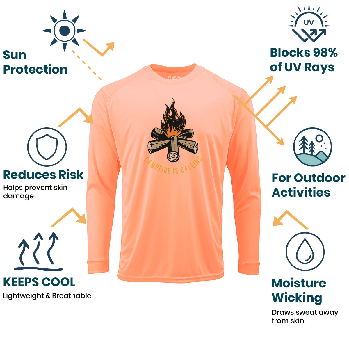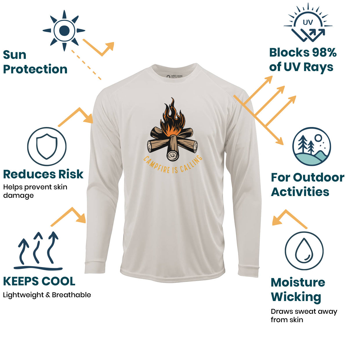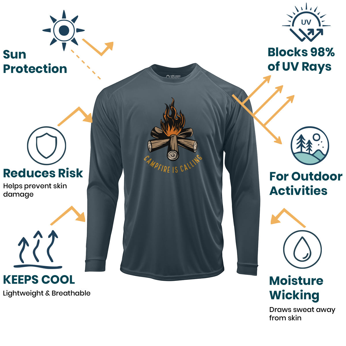 Embrace the campfire's call with this Sun Protection UV Performance Shirt UPF 50+. Answer nature's campfire call in style and comfort. Let the campfire call you to outdoor fun with this high-performance shirt.
