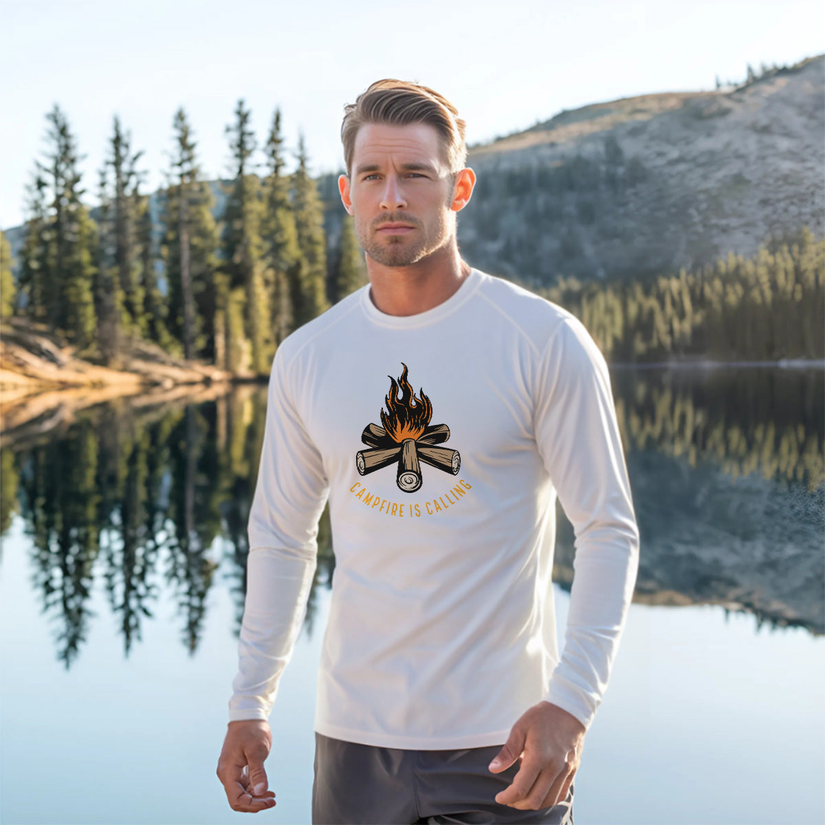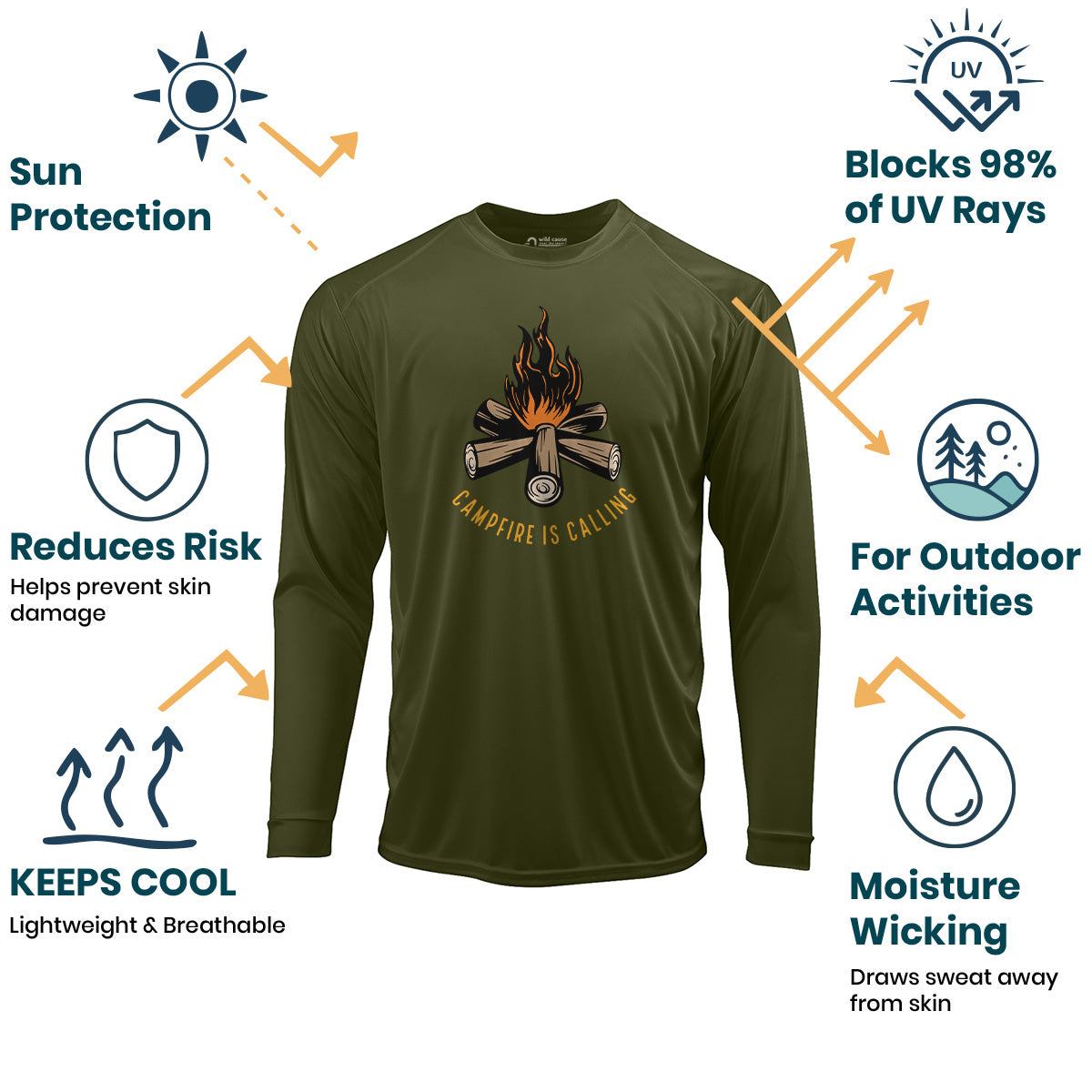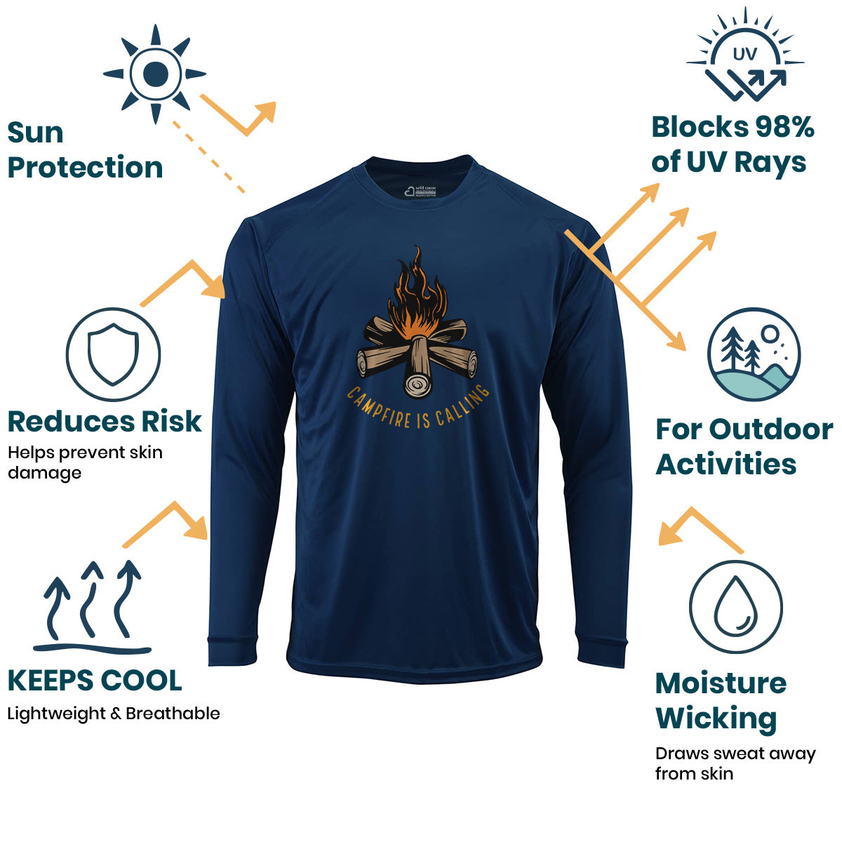 Embrace the campfire's call with this Sun Protection UV Performance Shirt UPF 50+. Answer nature's campfire call in style and comfort. Let the campfire call you to outdoor fun with this high-performance shirt.