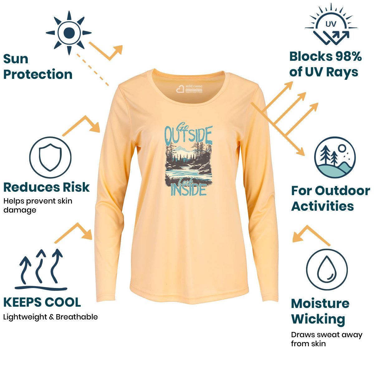 Go Outside Look Inside Peaceful Nature Forest Women Sun Protection UV Performance Shirt UPF 50+