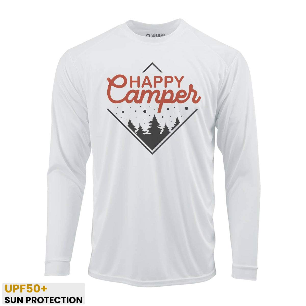 Stay protected under the stars with our Happy Camper Sun Protection UV Performance Shirt UPF 50+. Perfect for outdoor enthusiasts, this shirt is designed for camping life with tenting fun and nature escape in mind.