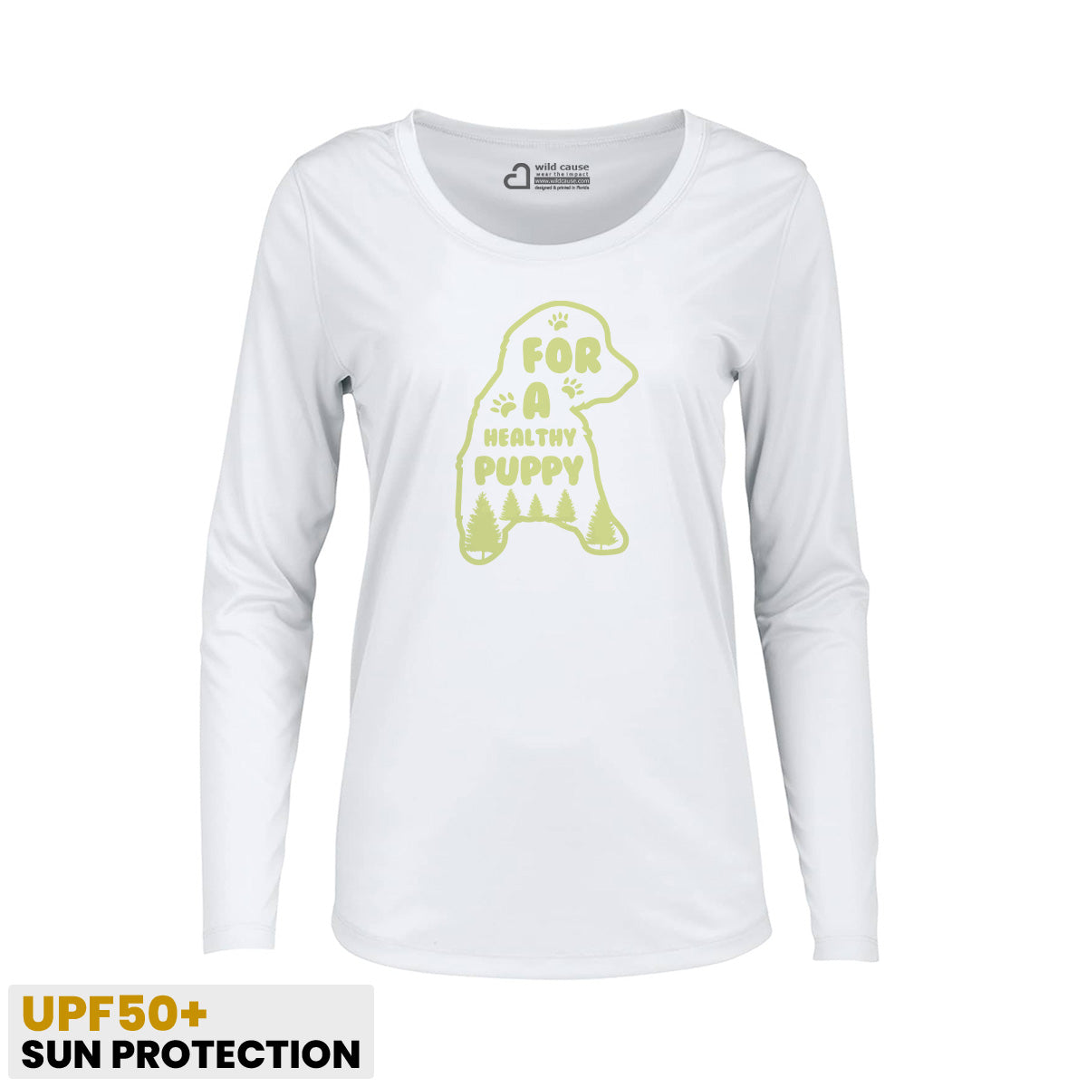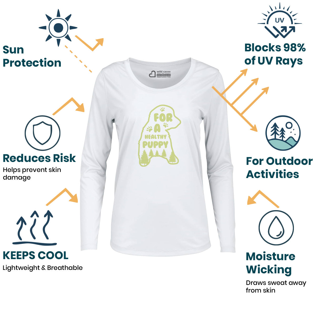 The Healthy Puppy Loves Outdoor Fun Women Sun Protection UV Performance Shirt UPF 50+ is perfect for a puppy exercise enthusiast. Stay protected while enjoying wellness walks in spring outdoors. Embrace a healthy lifestyle and paws for health with this stylish and functional shirt.