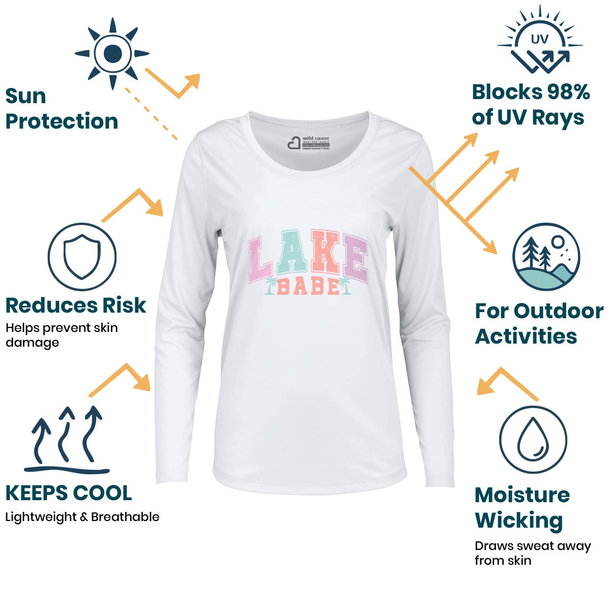 Embrace the carefree lakeside living with our Women Sun Protection UV Performance Shirt UPF 50+. Perfect for soaking up the waterfront and enjoying girls' weekend by the water. Stay cool with warm breezes & cool waves in this shirt that screams messy hair, don't care.