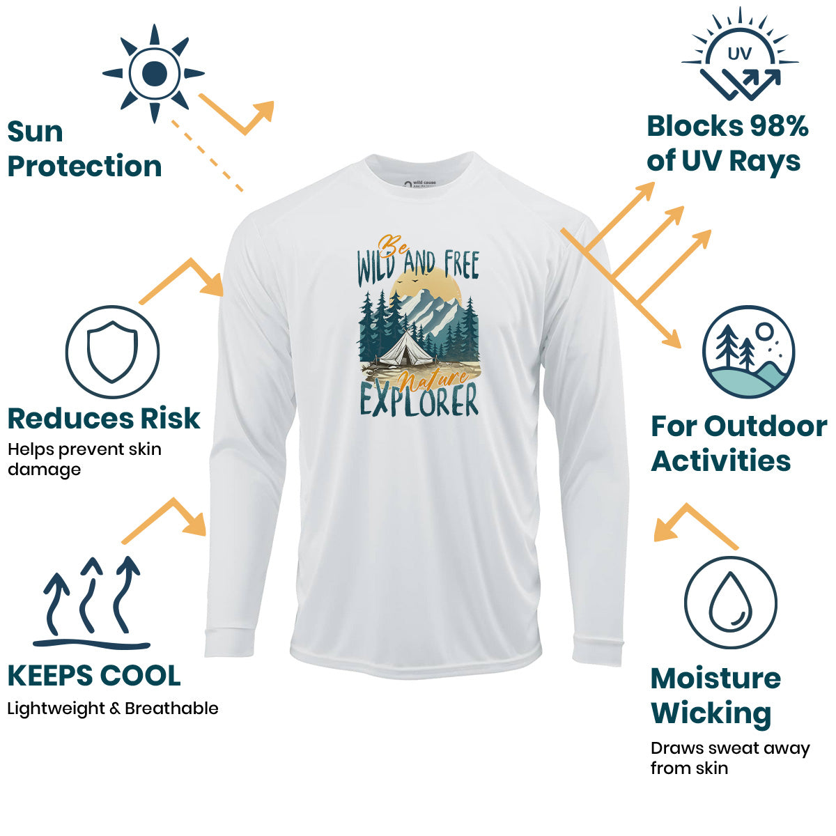 Minimalist Be Wild Free Nature Explorer Camping Sun Protection UV Performance Shirt UPF 50+