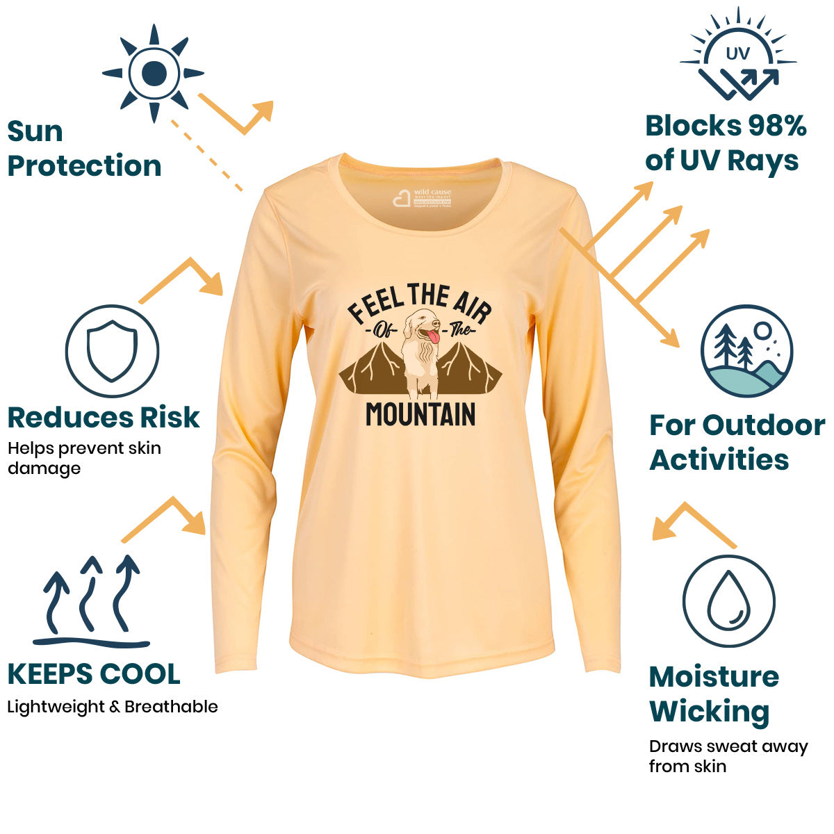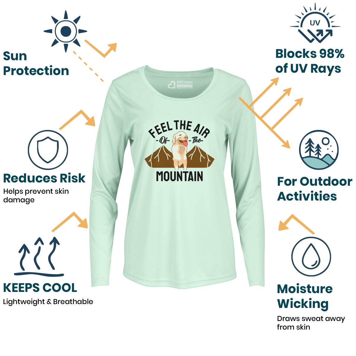 Feel The Air Of The Mountain Dog Fun Women Sun Protection UV Performance Shirt UPF 50+