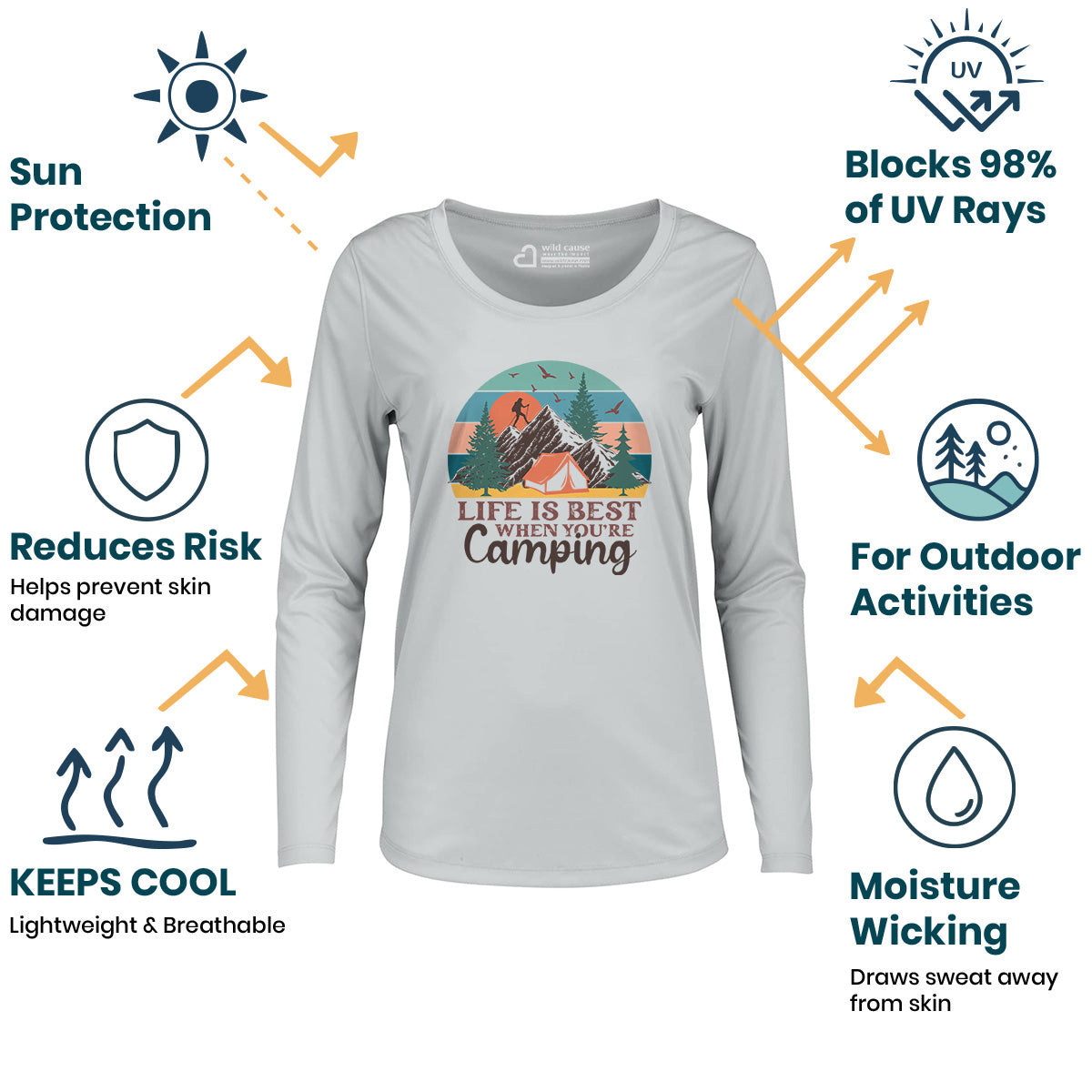 Outdoor Adventure Life Is Best When You're Camping Women Sun Protection UV Performance Shirt UPF 50+