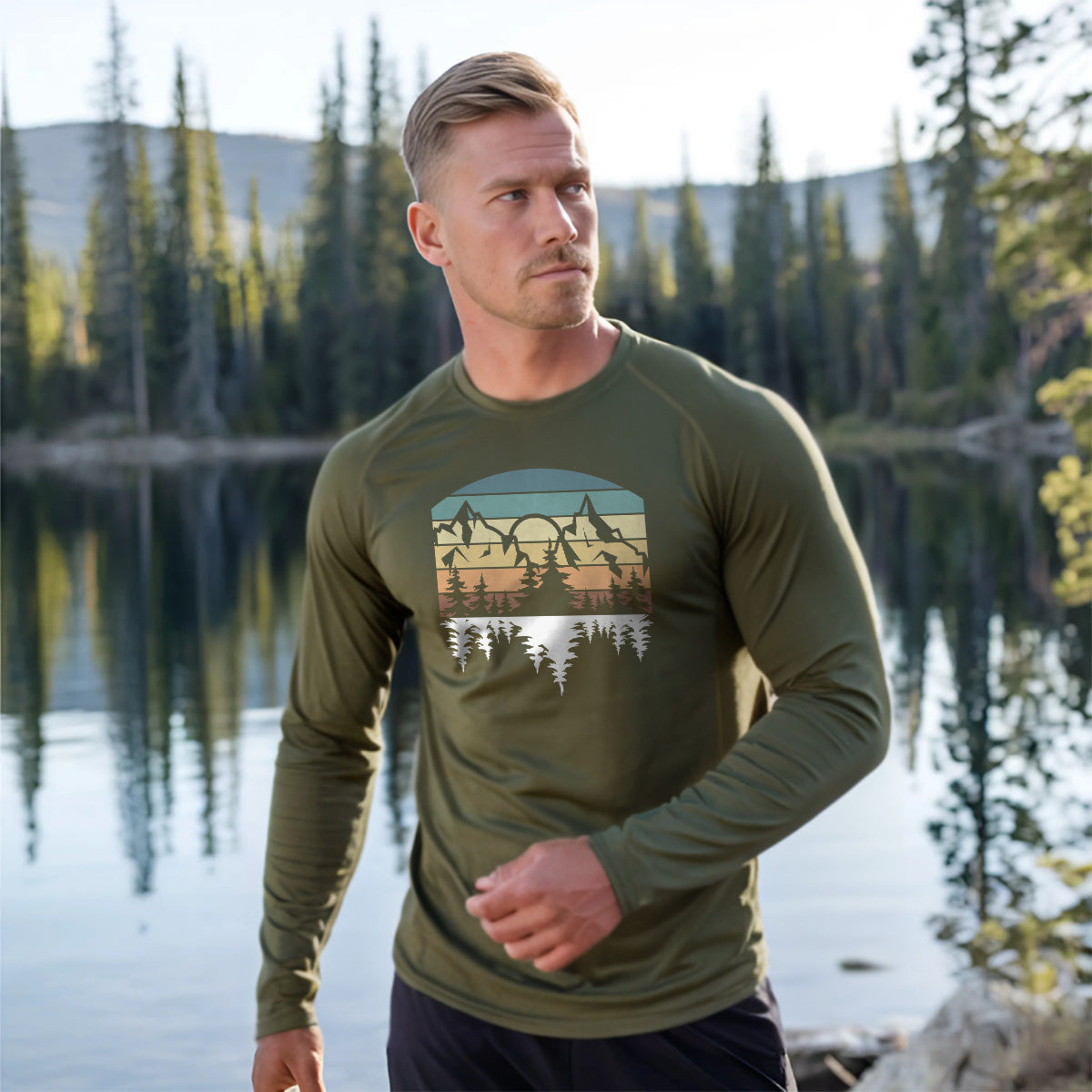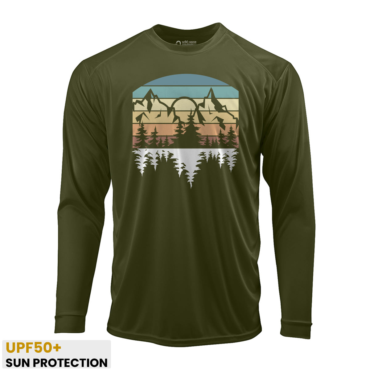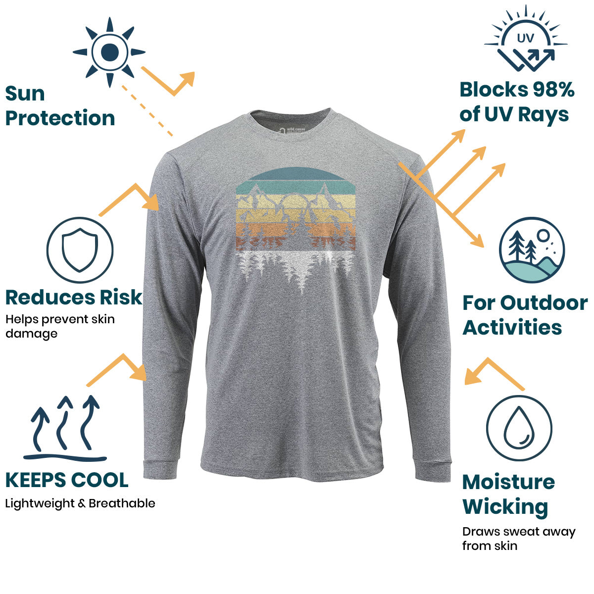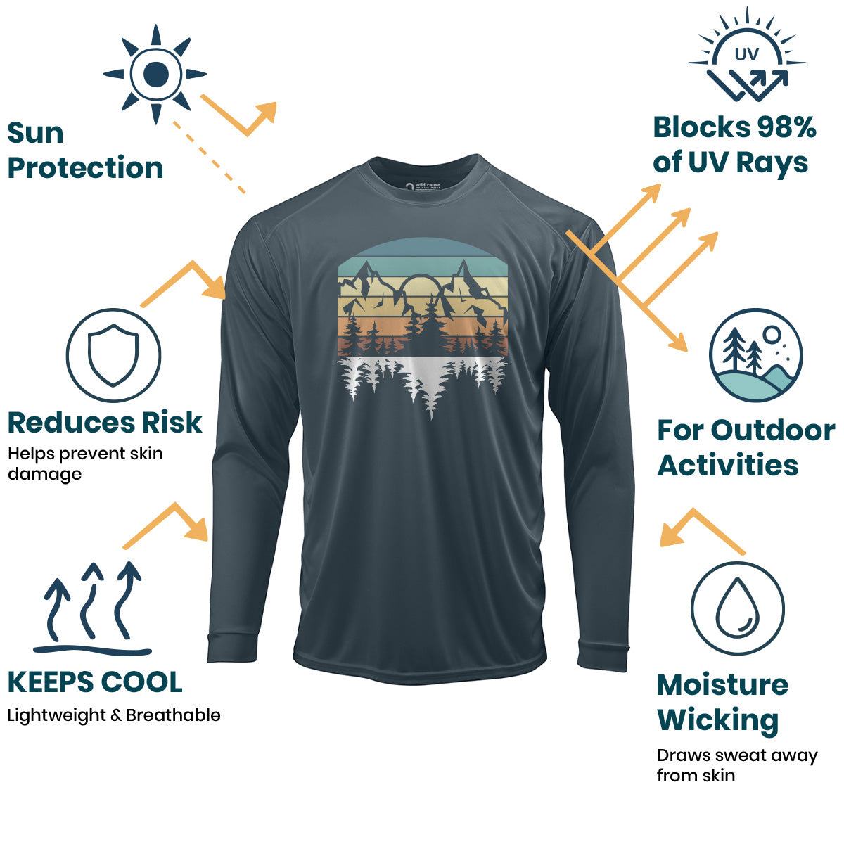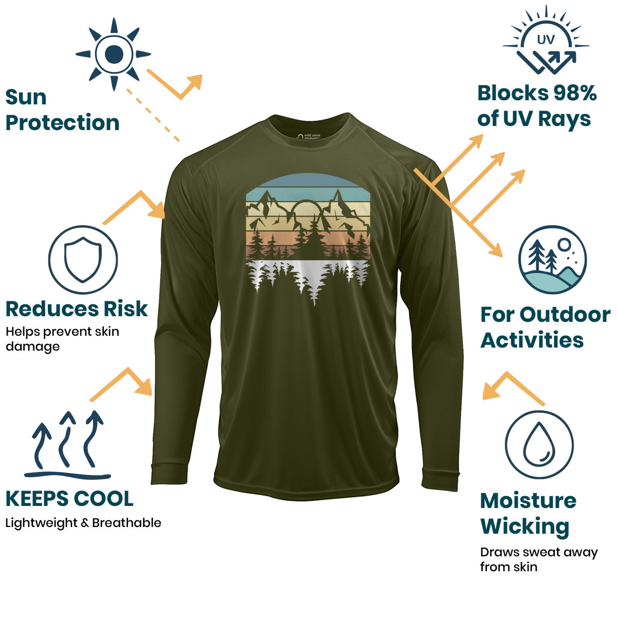 Vintage vibes in the peaks! Sun Protection UV Performance Shirt UPF 50+ features a retro sunset design inspired by vintage mountains. Stay stylish and protected with this scenic sunset shirt, perfect for outdoor adventures in retro landscapes and vintage nature.