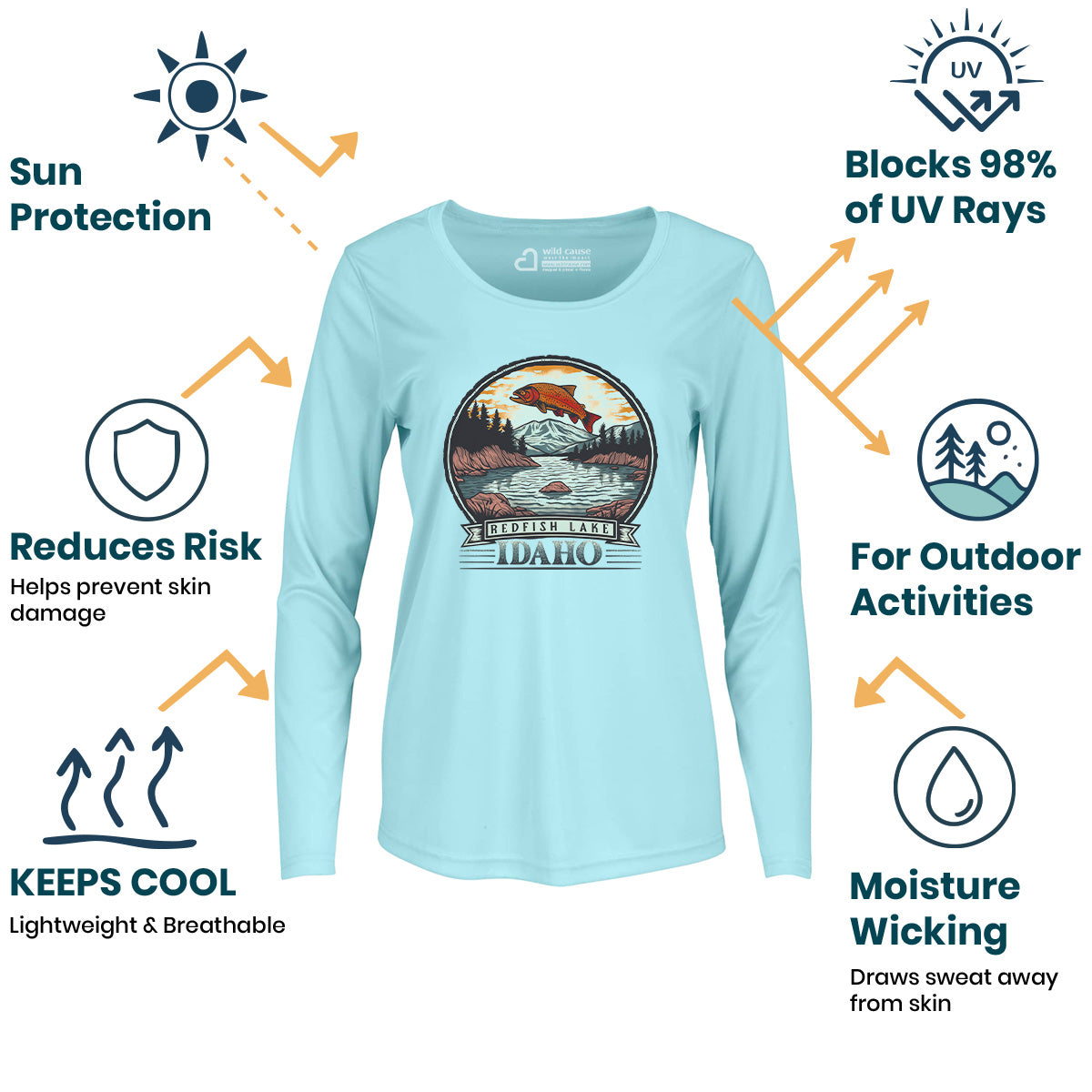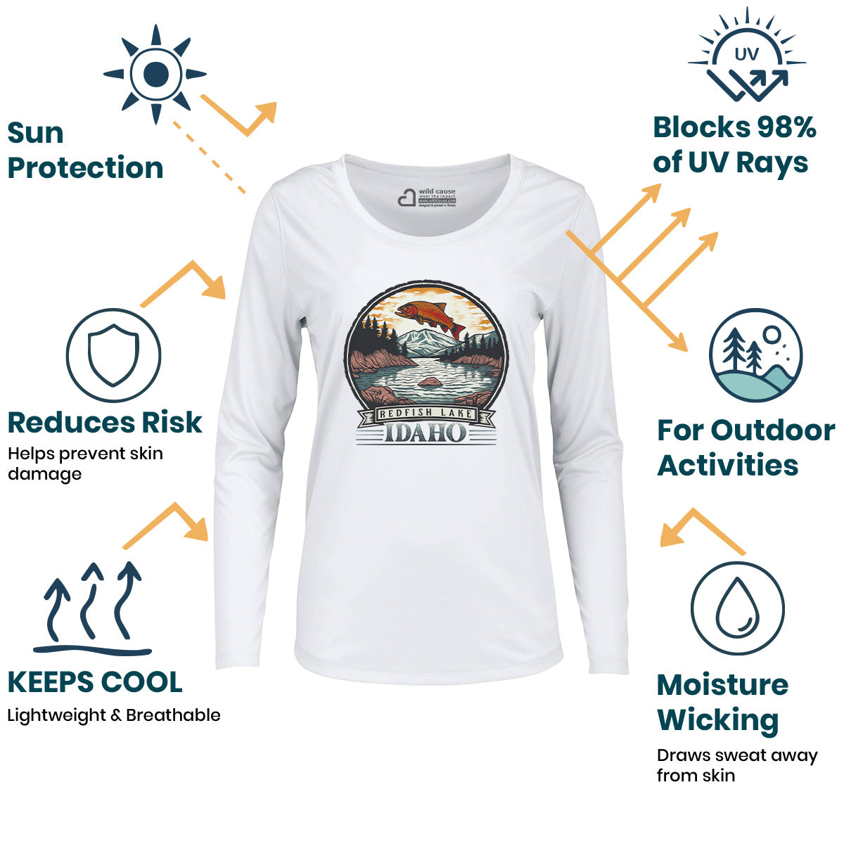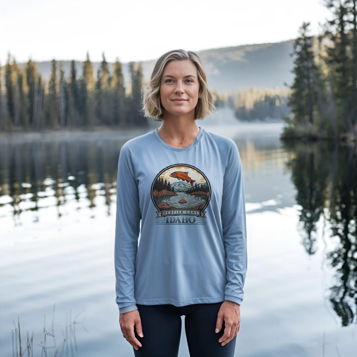 Explore the beauty of Redfish Lake with our Women Sun Protection UV Performance Shirt UPF 50+. Ideal for a weekend escape to Idaho, enjoy serene mountain lake views while canoeing on Redfish Waters. Stay cool in cool mornings, warm afternoons. This shirt is simply too pretty to be real.