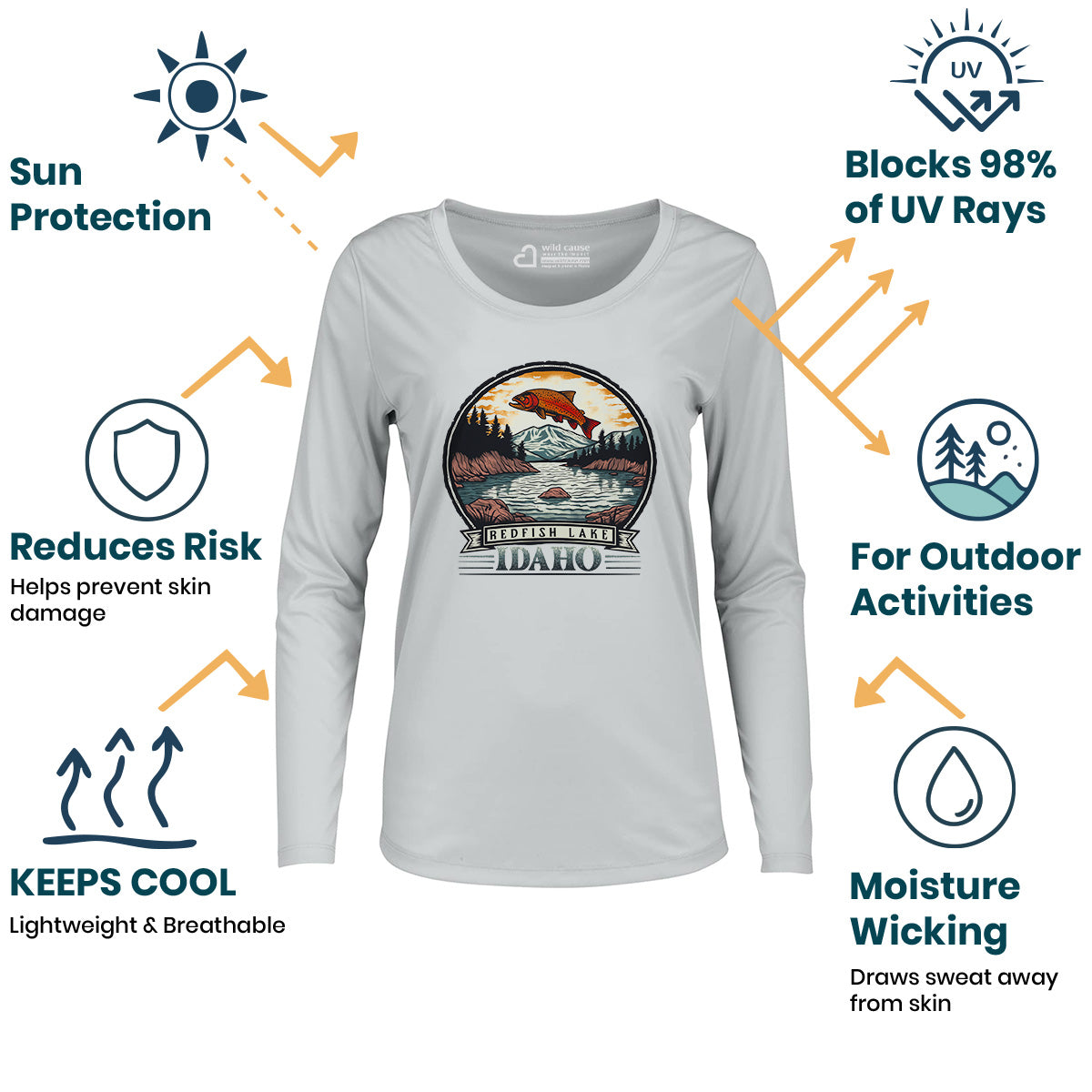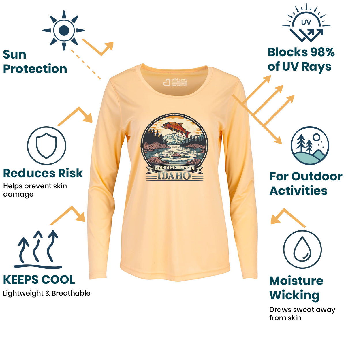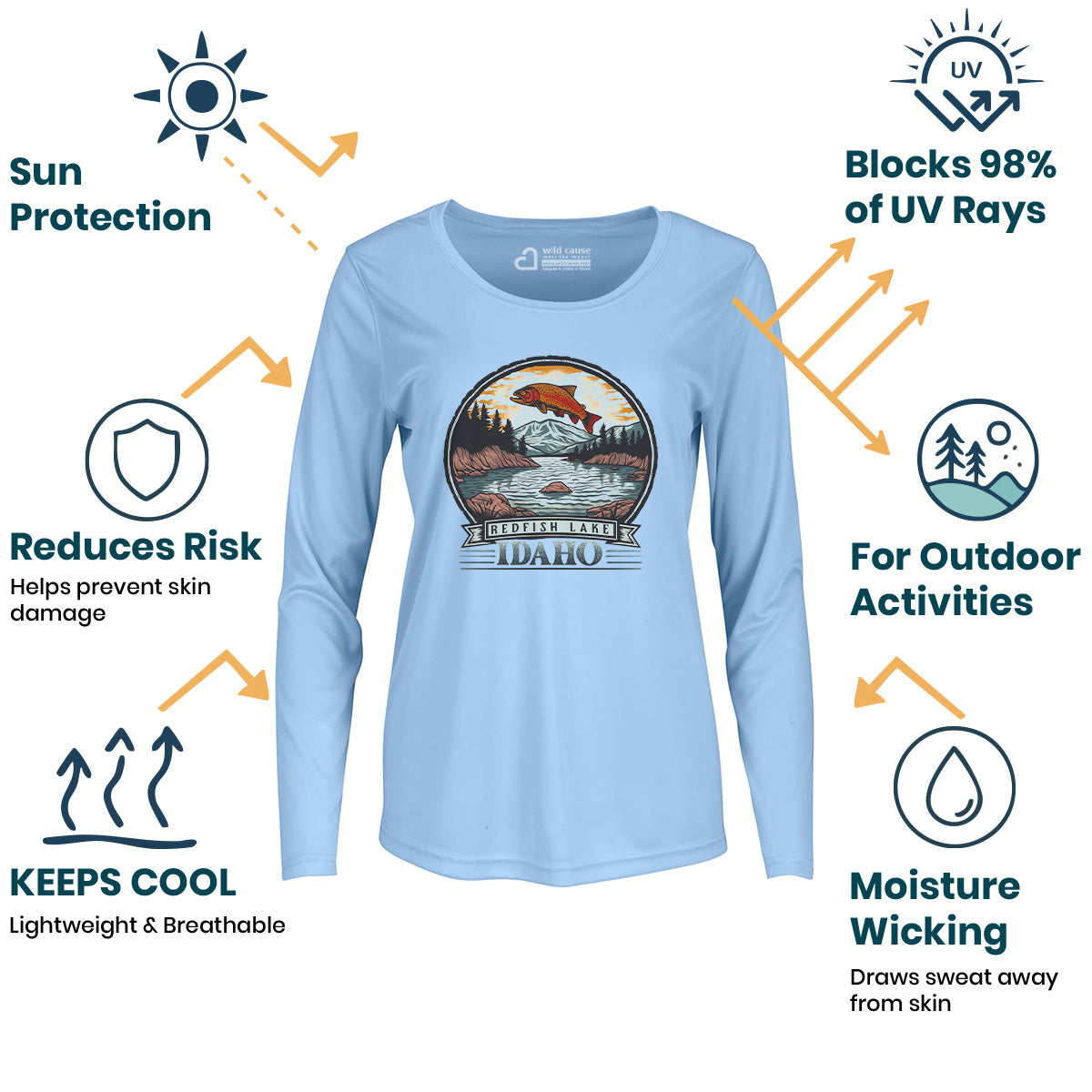 Explore the beauty of Redfish Lake with our Women Sun Protection UV Performance Shirt UPF 50+. Ideal for a weekend escape to Idaho, enjoy serene mountain lake views while canoeing on Redfish Waters. Stay cool in cool mornings, warm afternoons. This shirt is simply too pretty to be real.