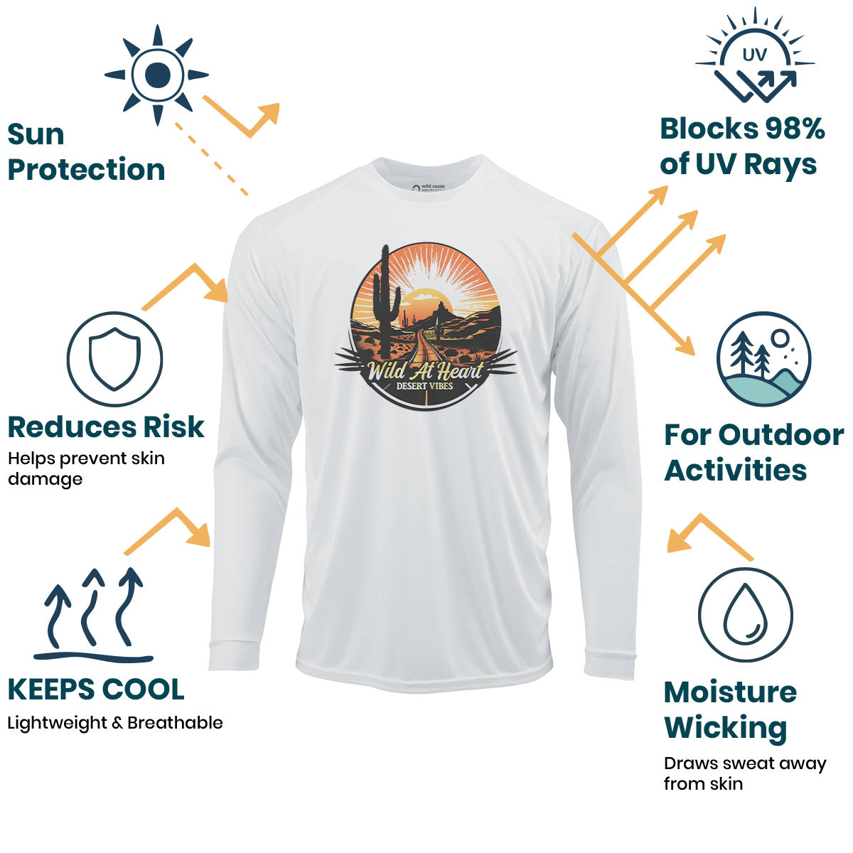 Embrace your Desert Soul with this Sun Protection UV Performance Shirt UPF 50+. Designed for the Wild at Heart, this shirt is perfect for the Outdoor Soul who roams free. Let your Desert Spirit shine in this comfortable and stylish shirt that embodies the essence of a Wild Spirit.