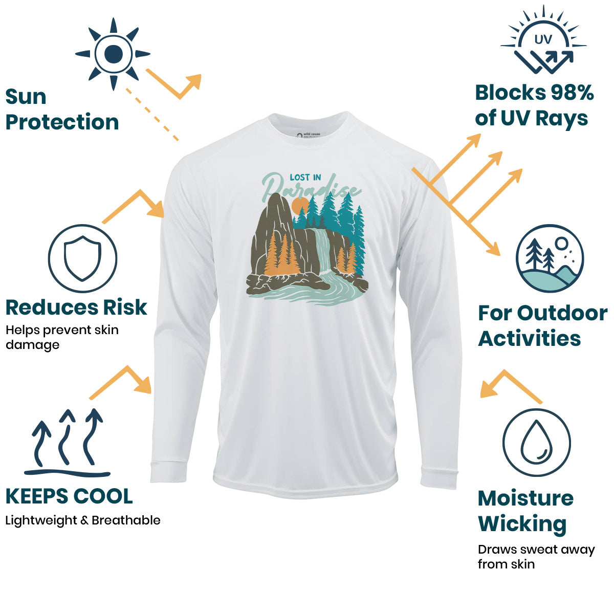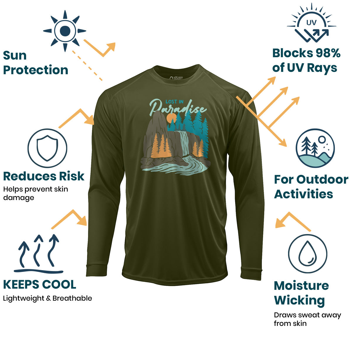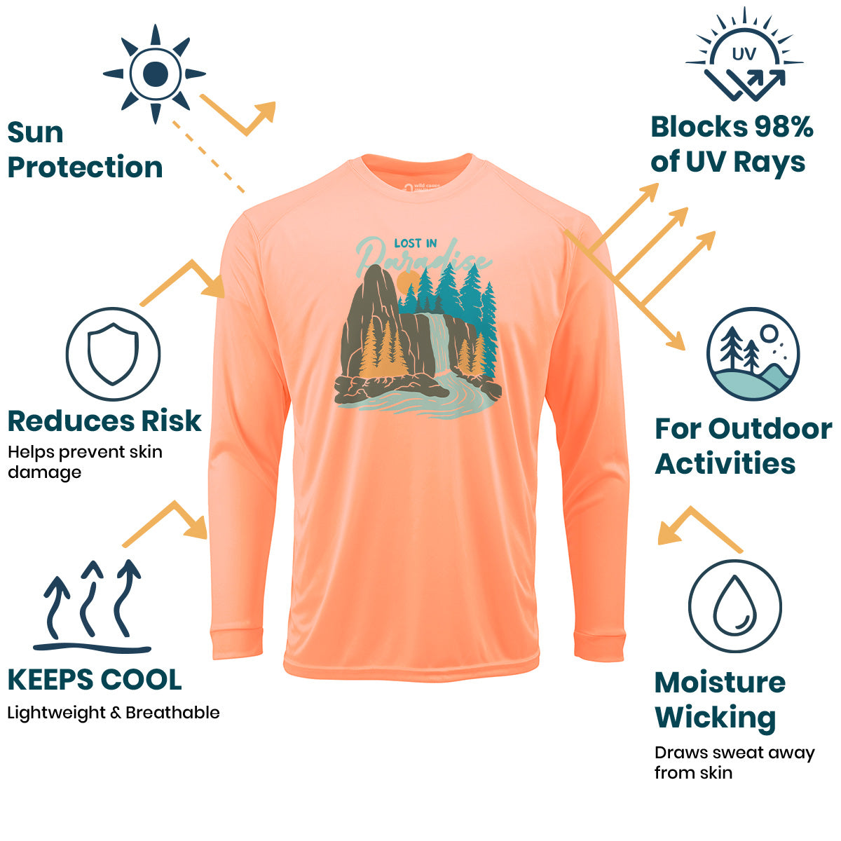 Peace found in the wild with our Sun Protection UV Performance Shirt UPF 50+. Get lost in nature's paradise and escape to the forest with this deep in the wild design. Stay protected and happy under the sun!