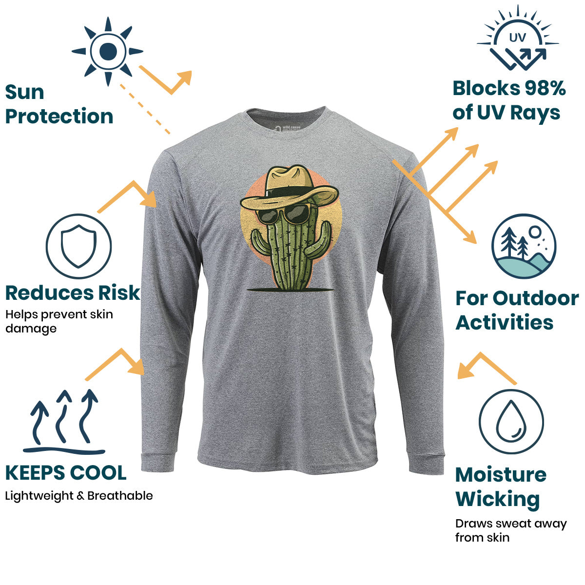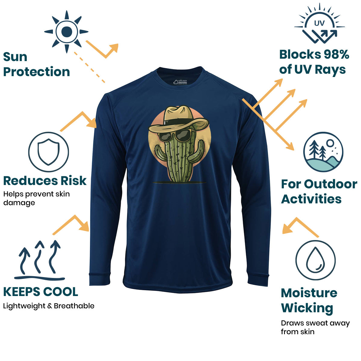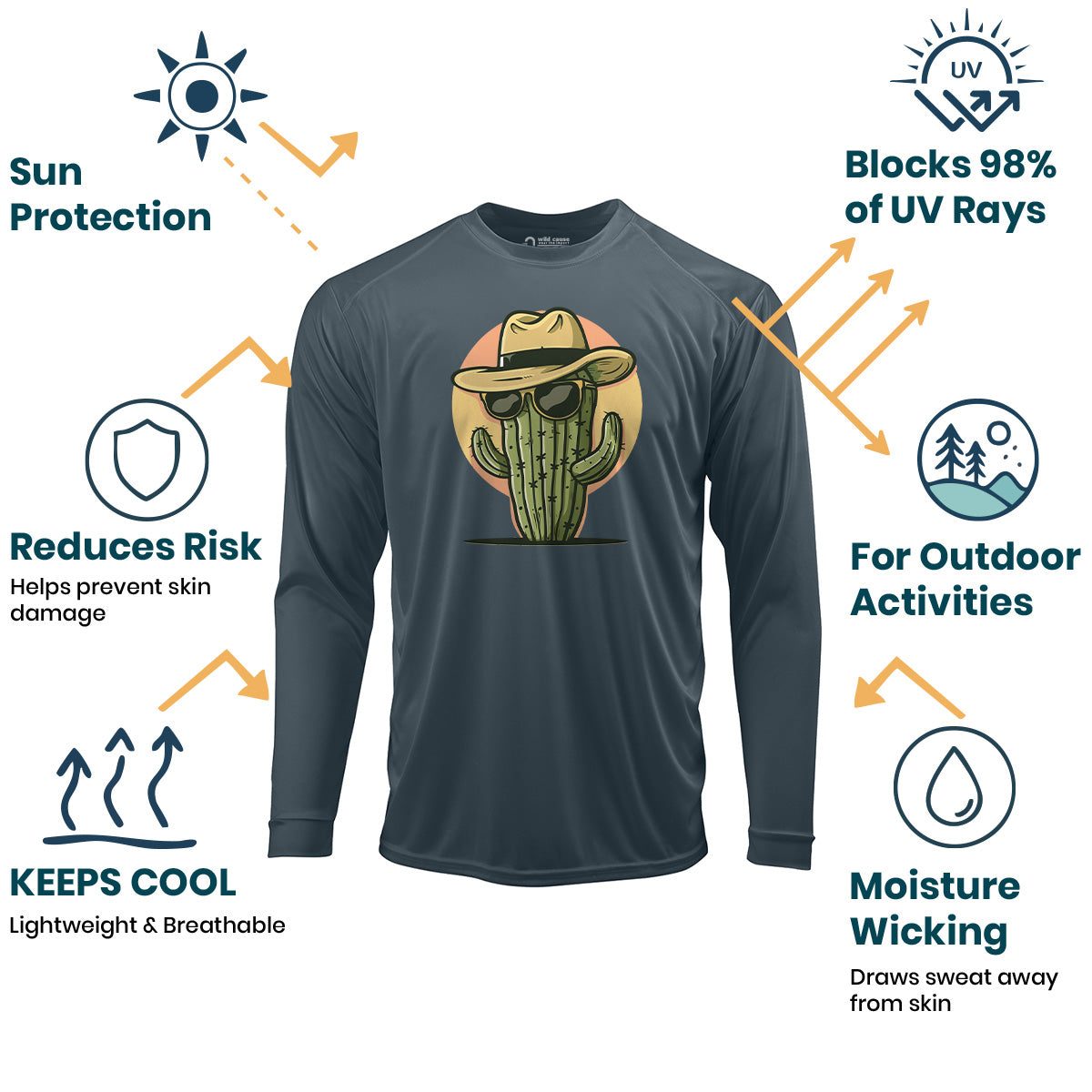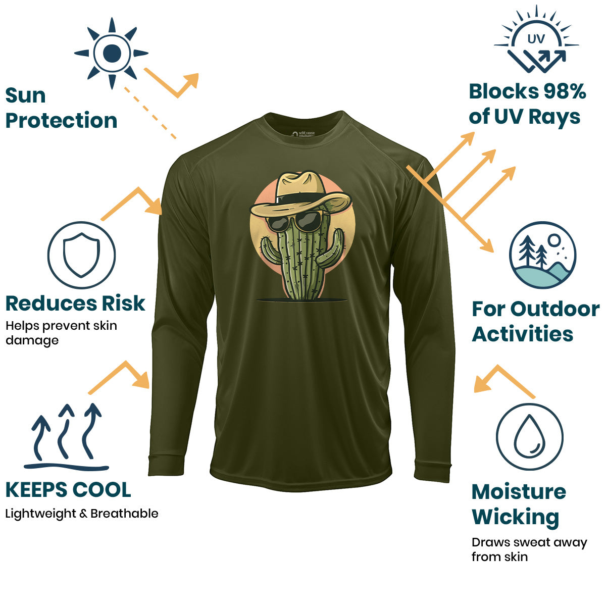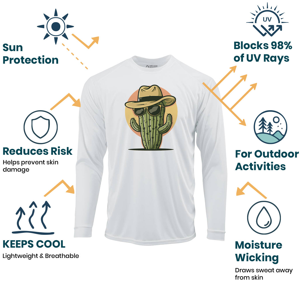 The chillest plant around! Sun Protection UV Performance Shirt UPF 50+ is perfect for outdoor cactus lovers. This desert cactus design embodies cool cactus style with desert vibes. Stay protected and stylish in this desert style shirt.