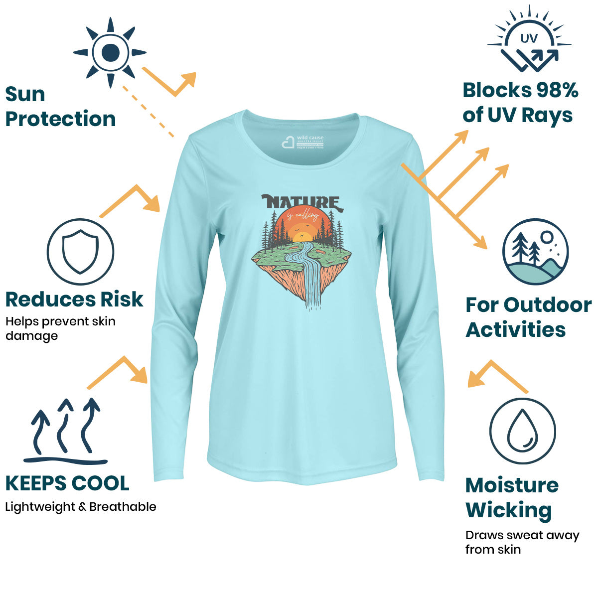 Sunset Nature Is Calling Wilderness Adventure Awaits Women Sun Protection UV Performance Shirt UPF 50+