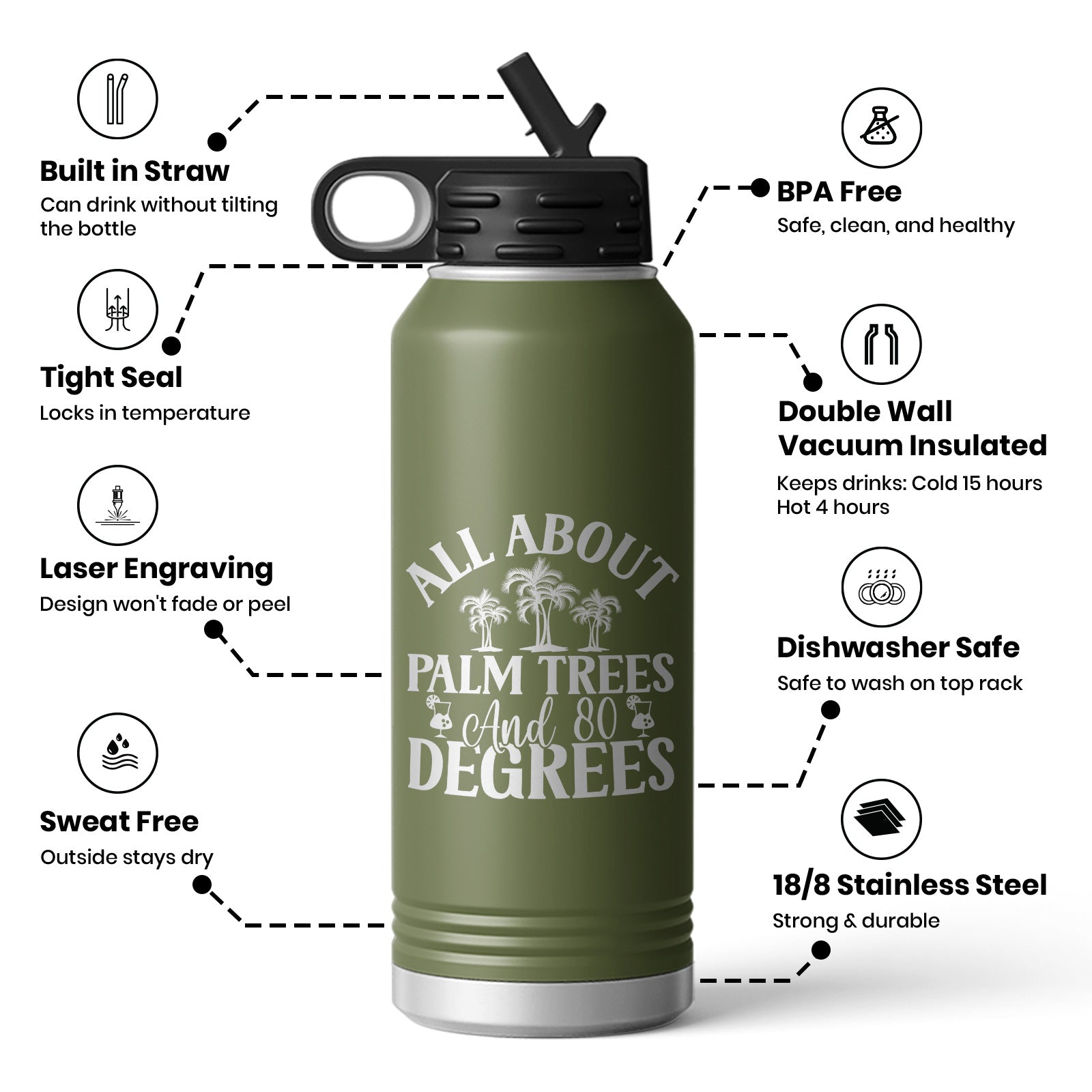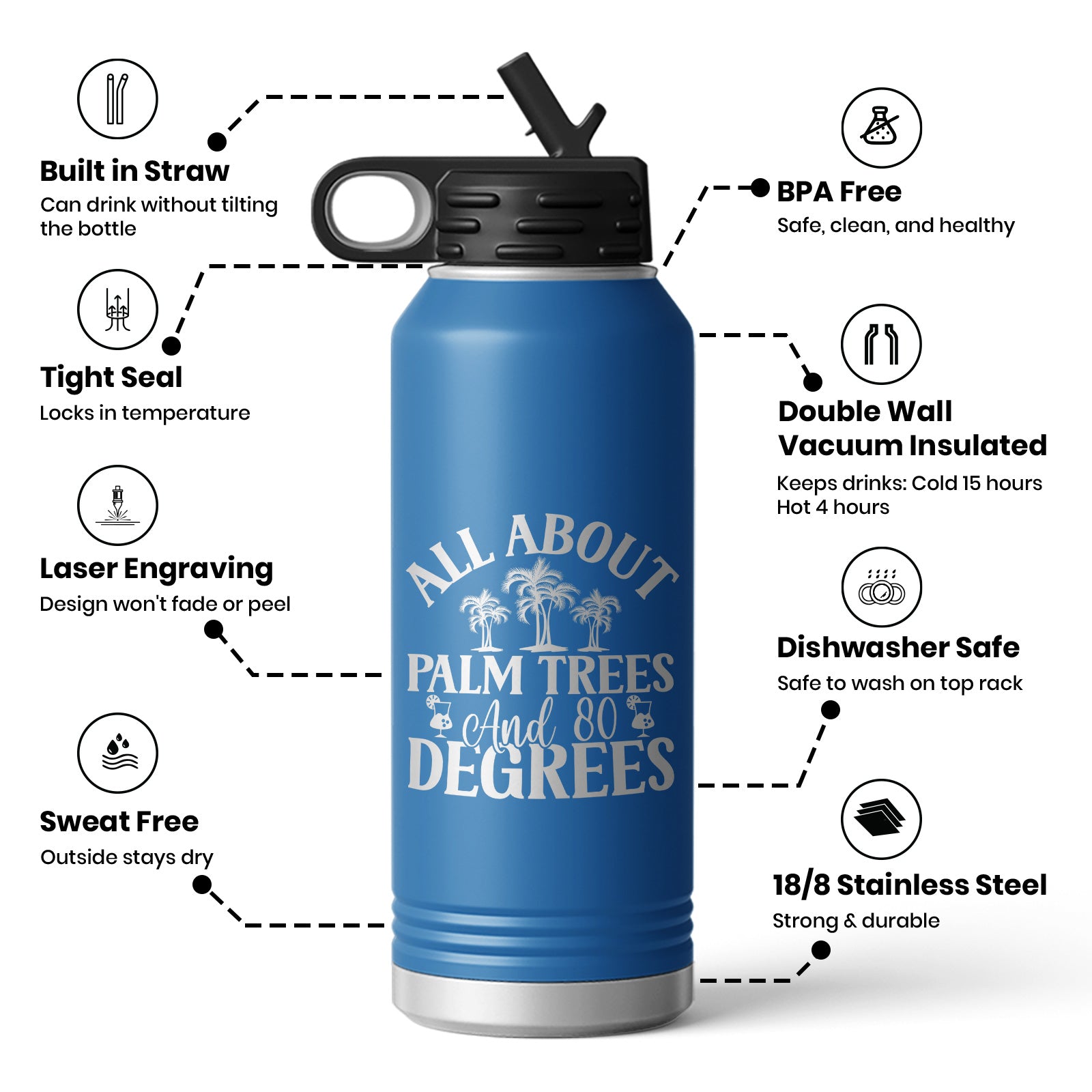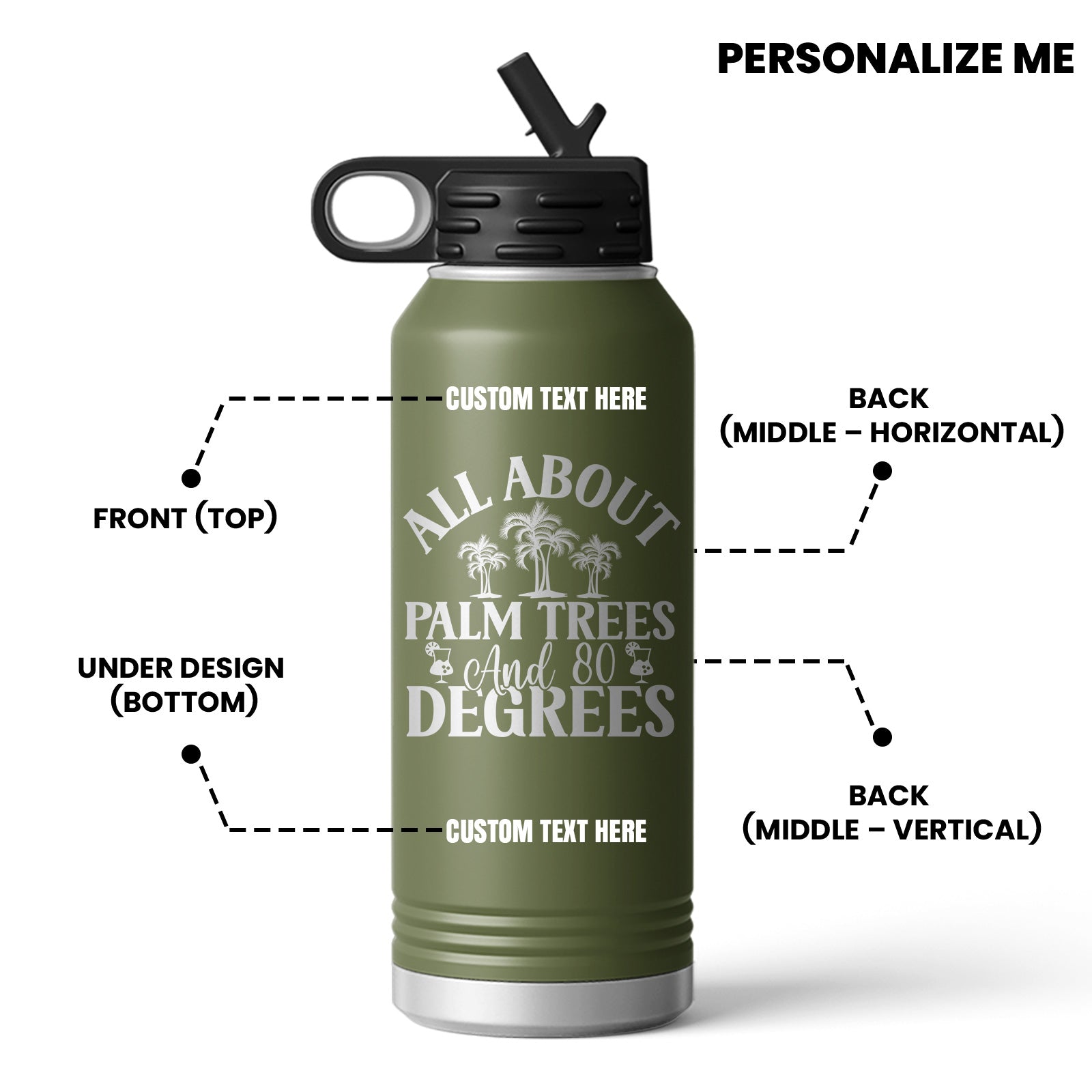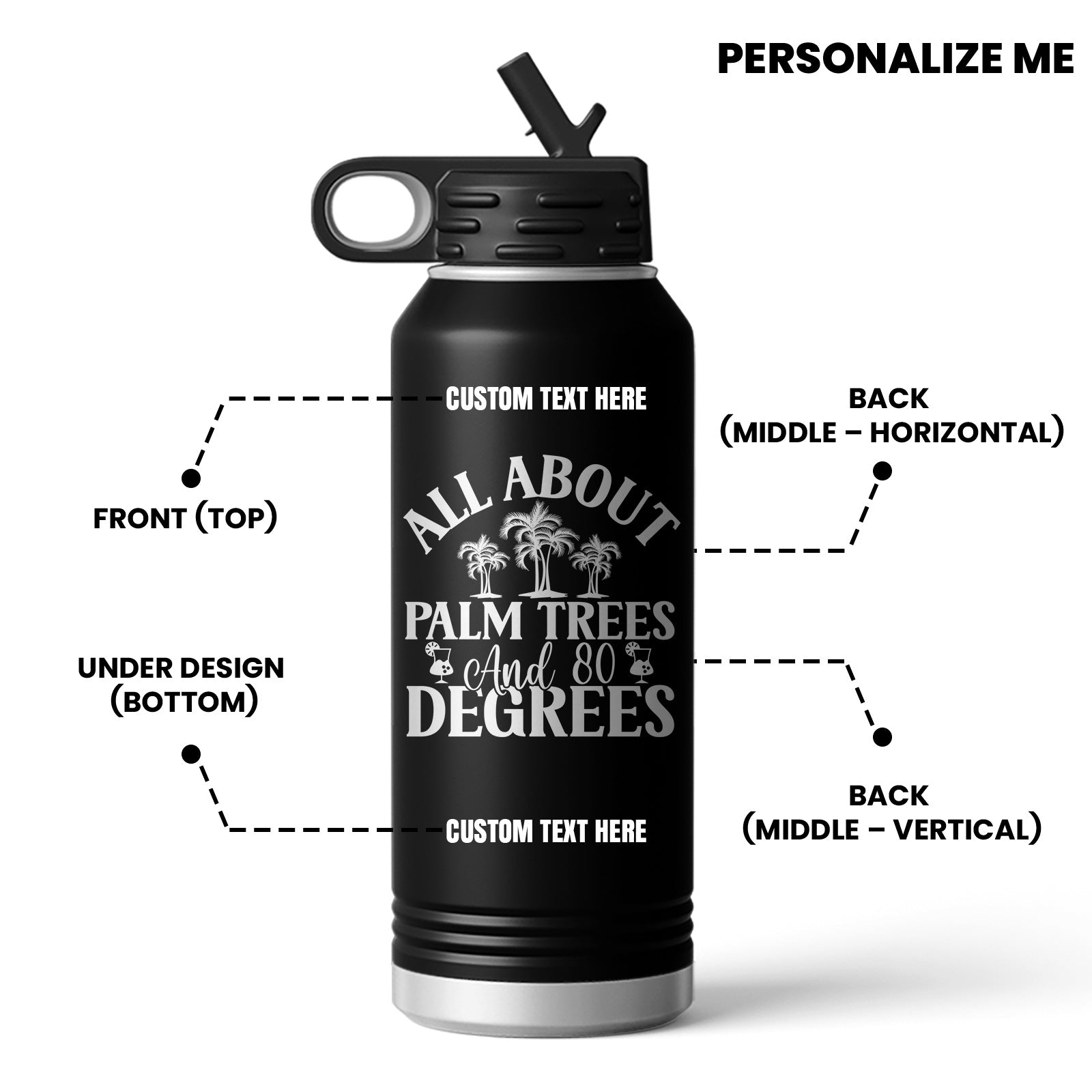 All About Palm Trees 80 Degrees Beach Vibe Water Bottle Mug