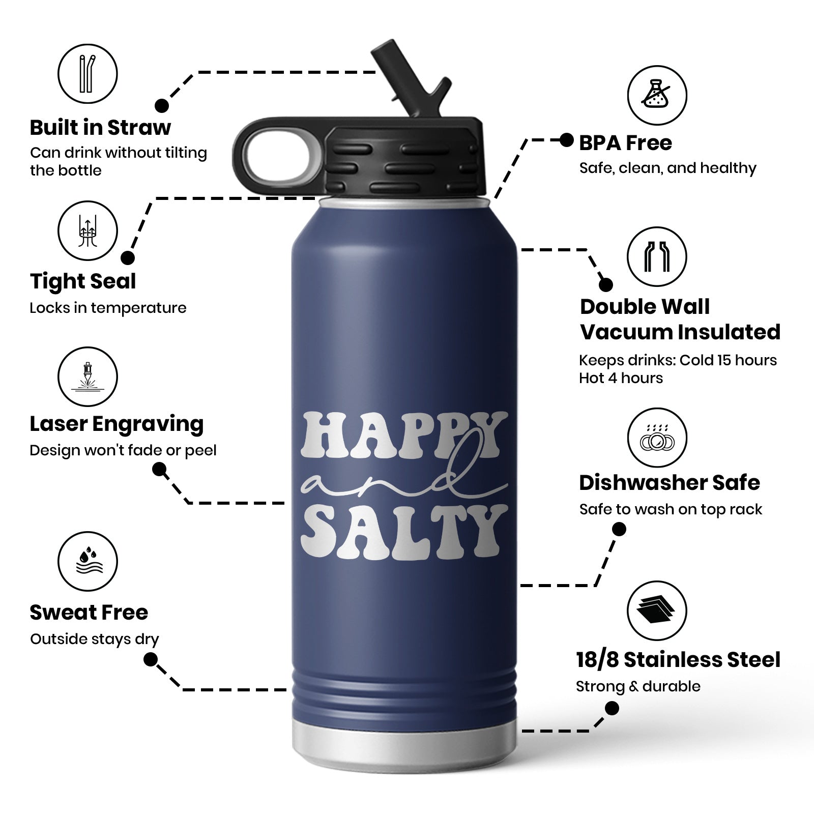 happy And Salty Beach Walking Life Fun Water Bottle Mug