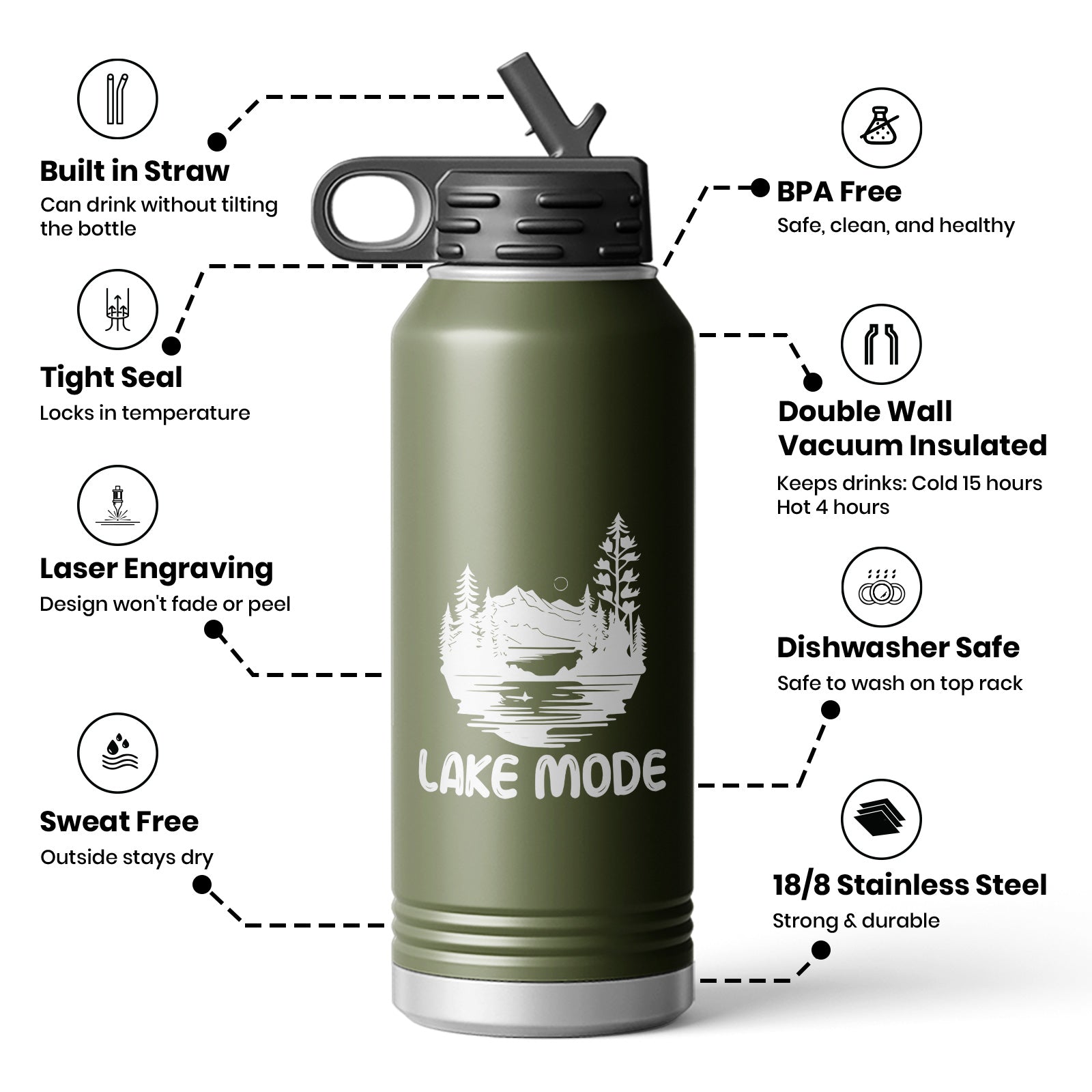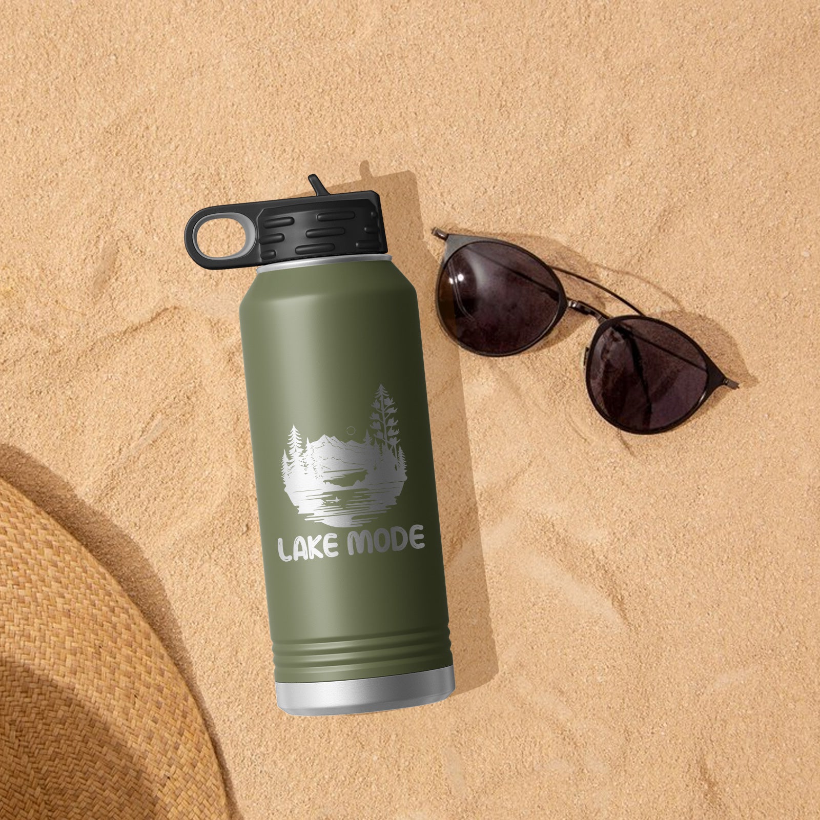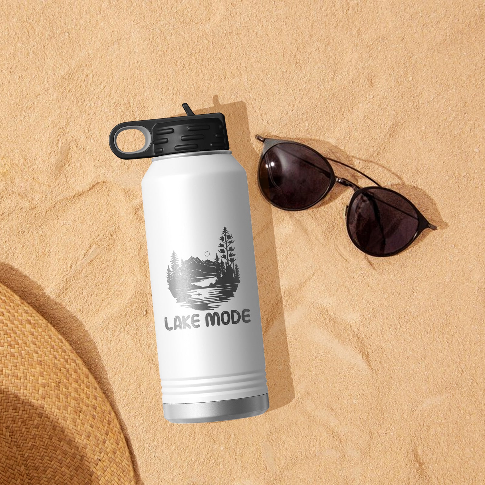Stay calm and relaxed with the Live life in lake mode! water bottle. Enjoy lakeside relaxation with this stylish accessory, perfect for living life in lake mode. No rush, just waves of tranquility await you.