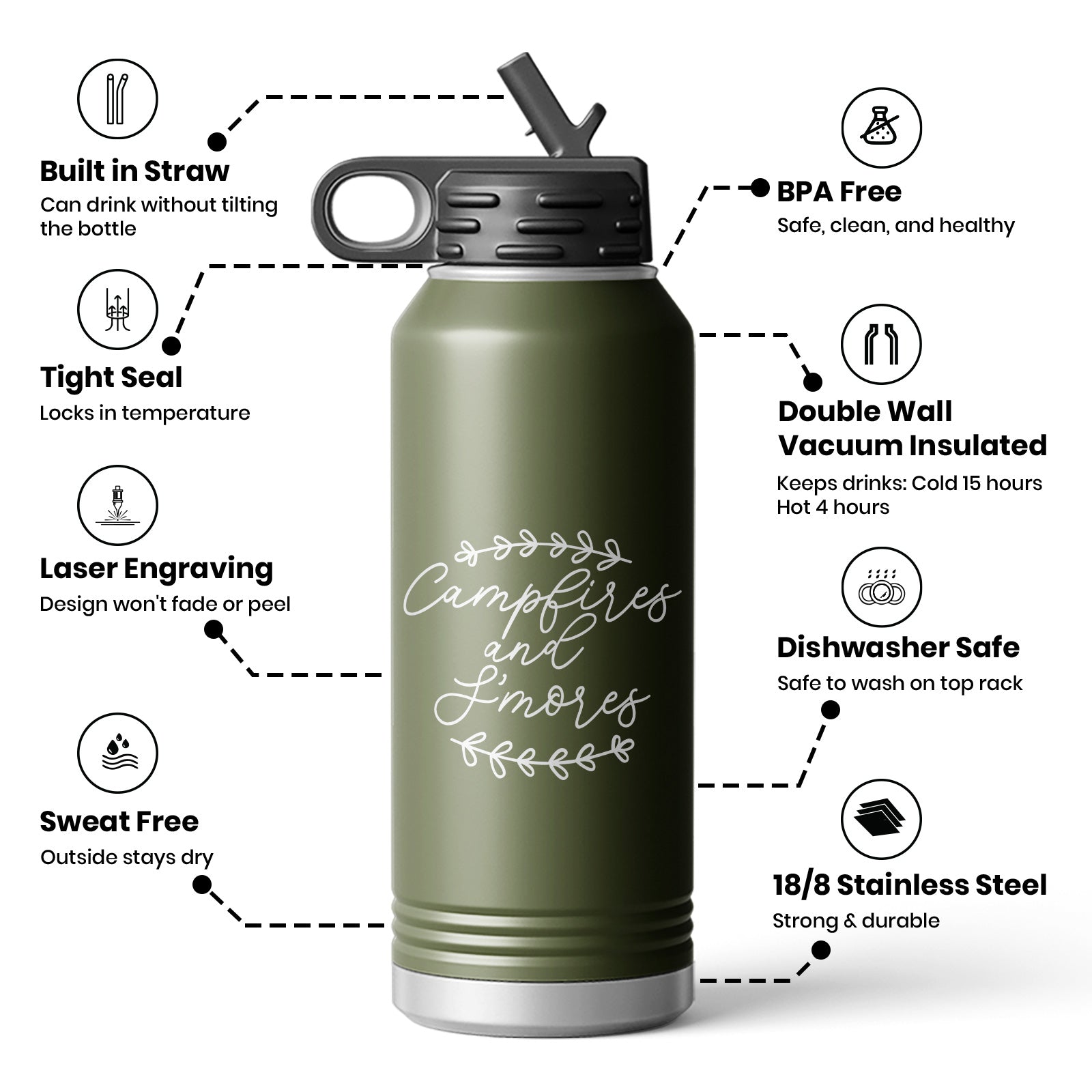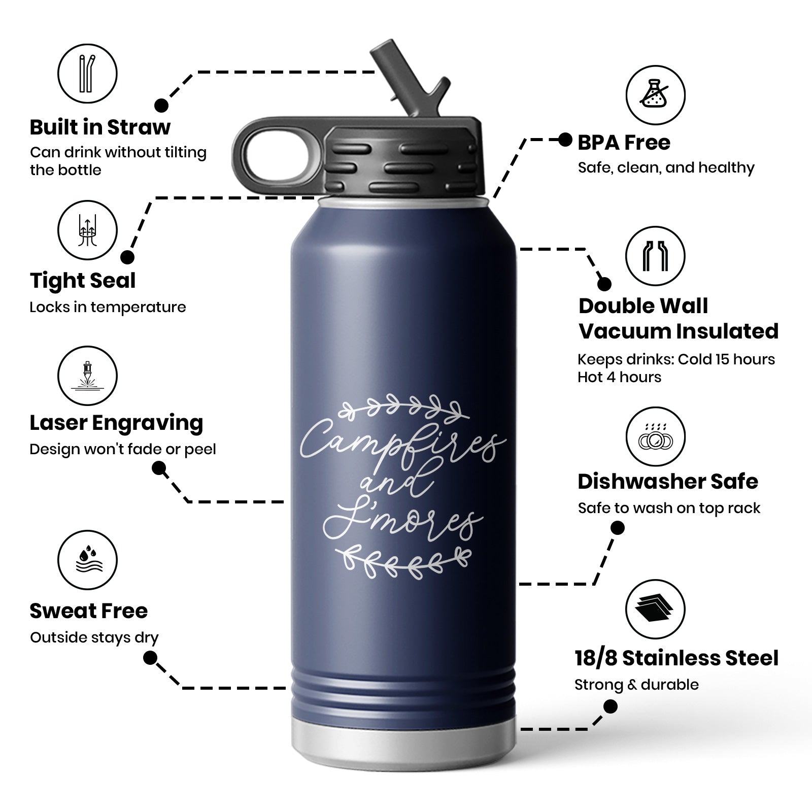 Outdoor Campfire And S'mores Vibe Water Bottle Mug