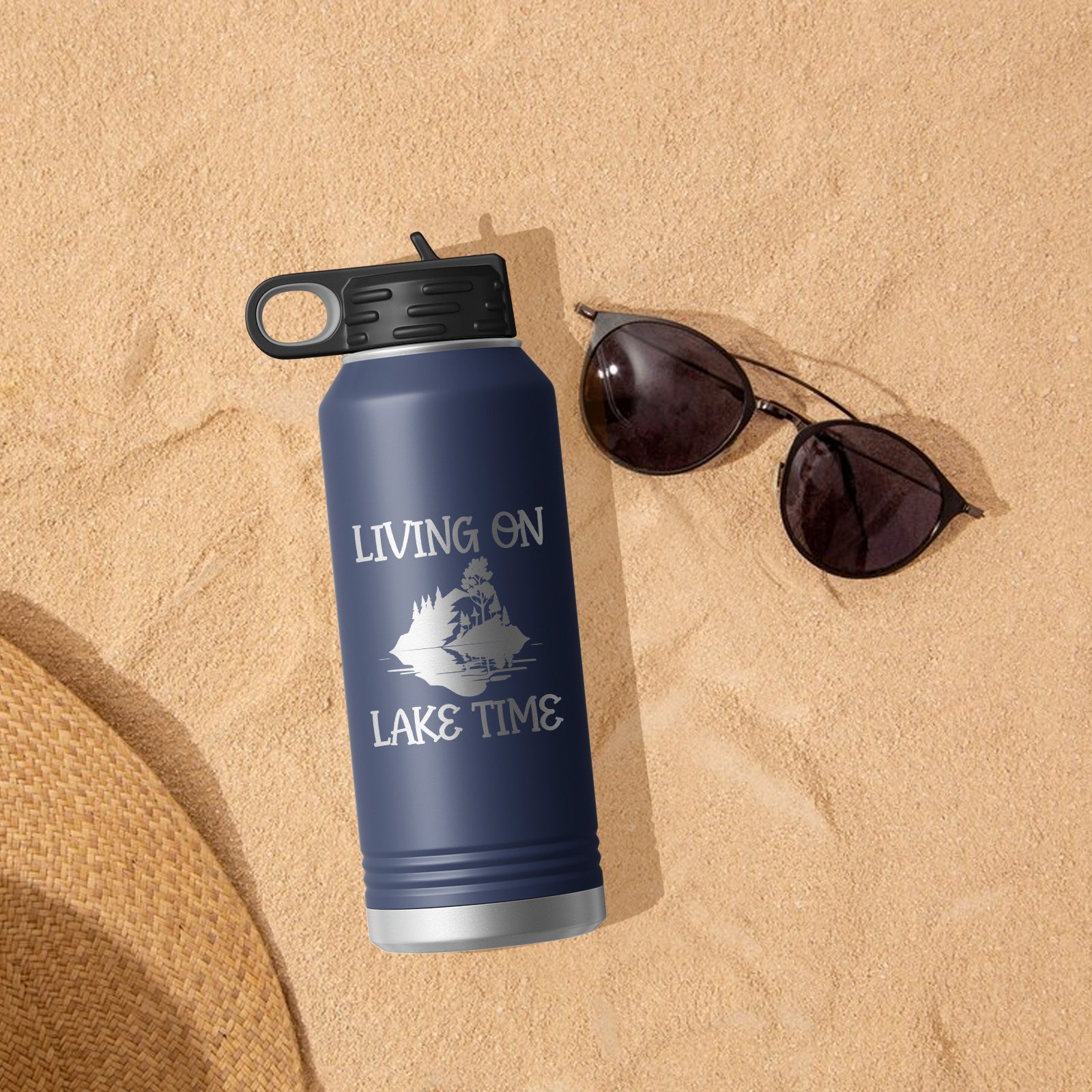 Slow Living On The Lake Symbolic Art Water Bottle Mug