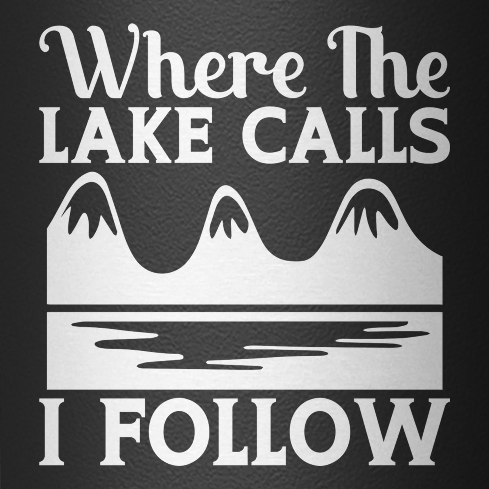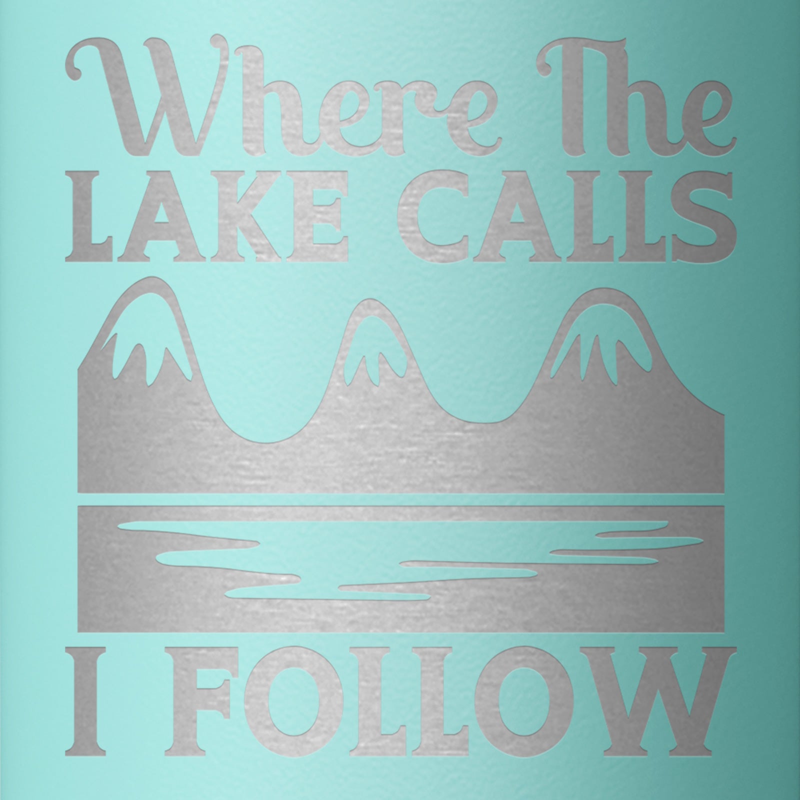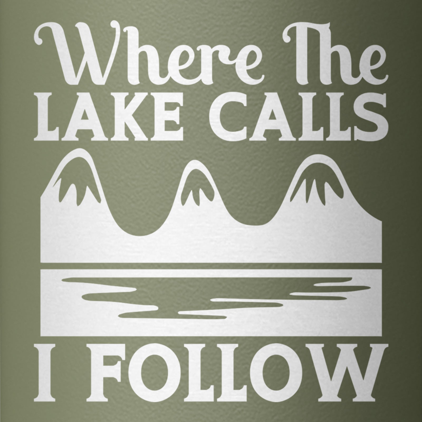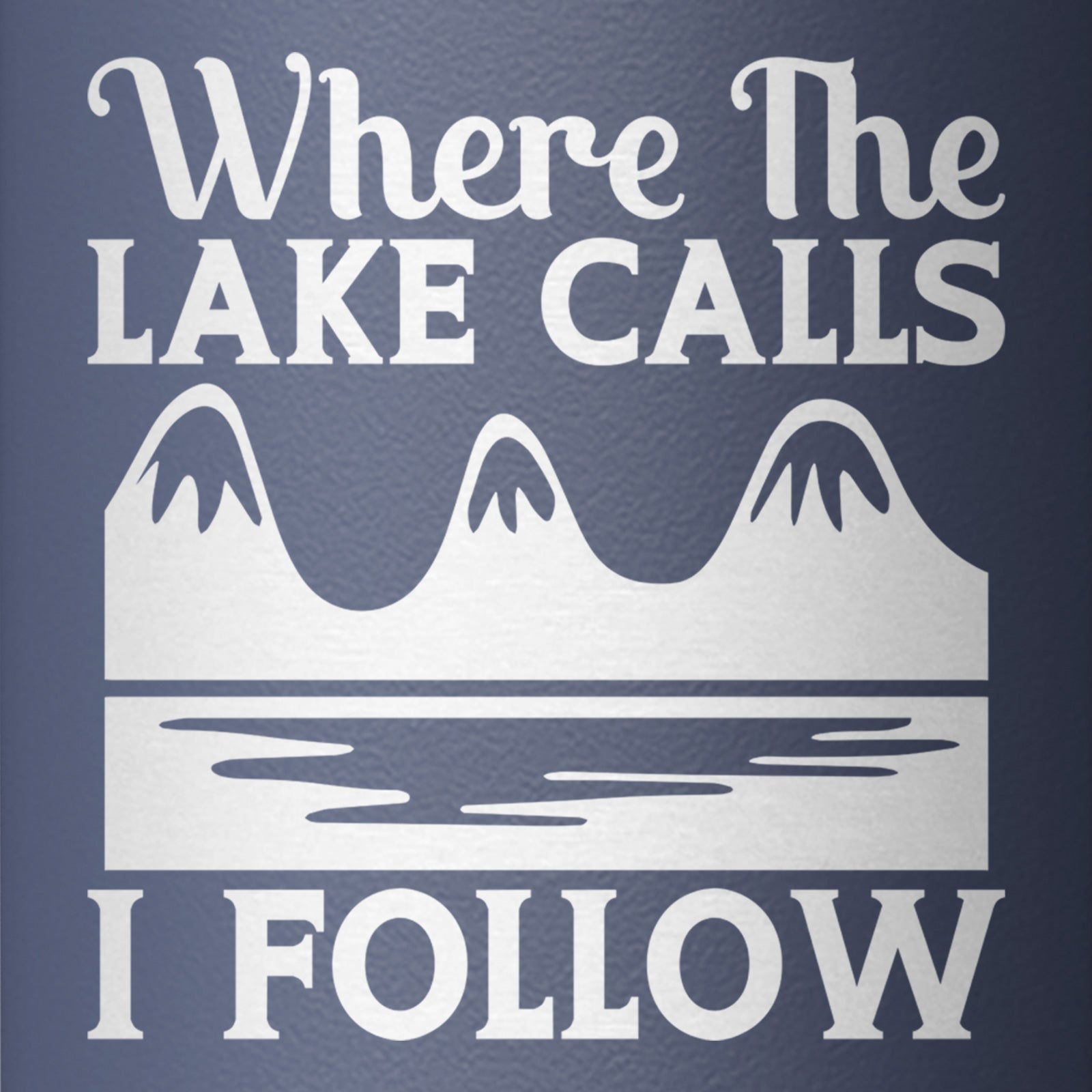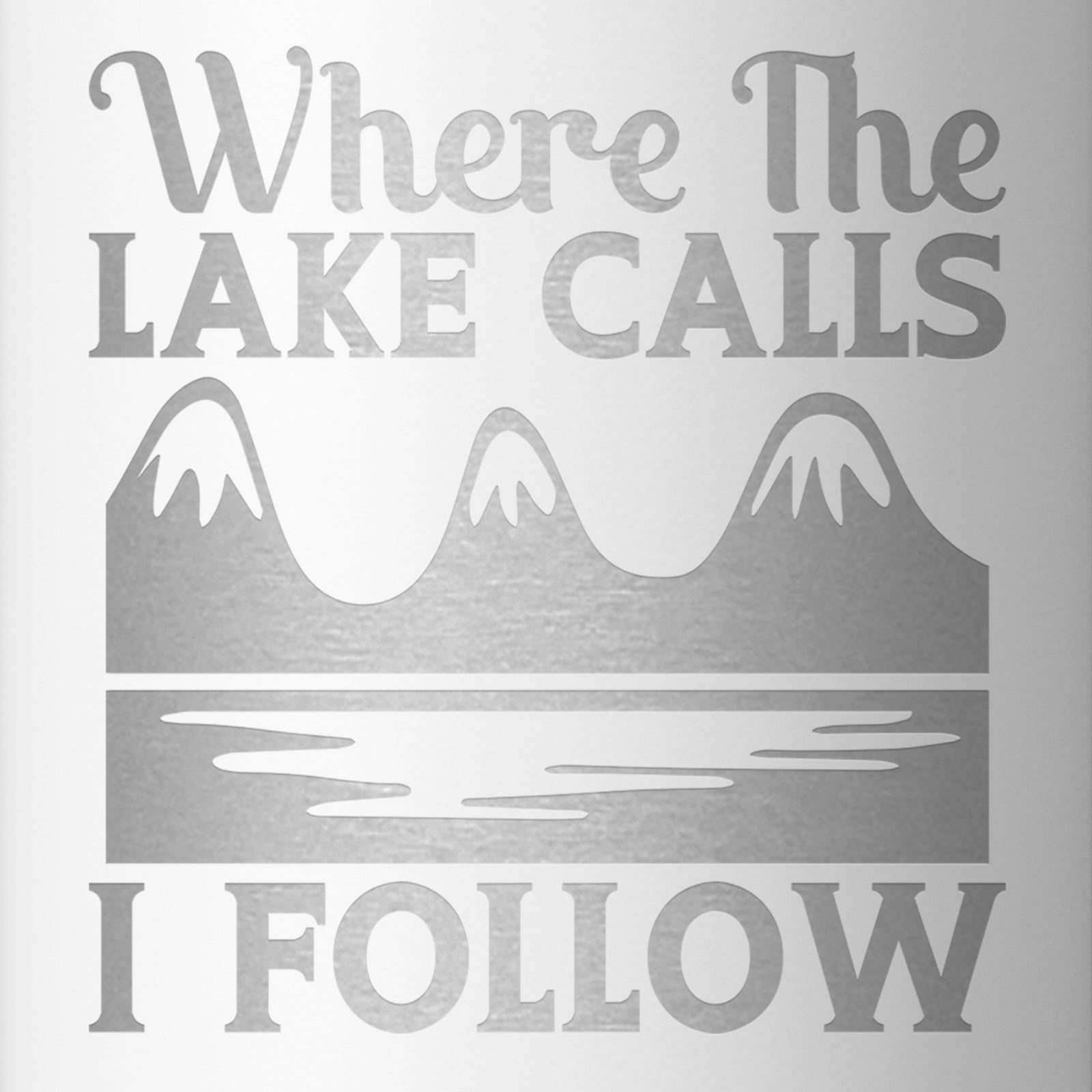 Where The Lake Calls I Follow Text Image Water Bottle Mug