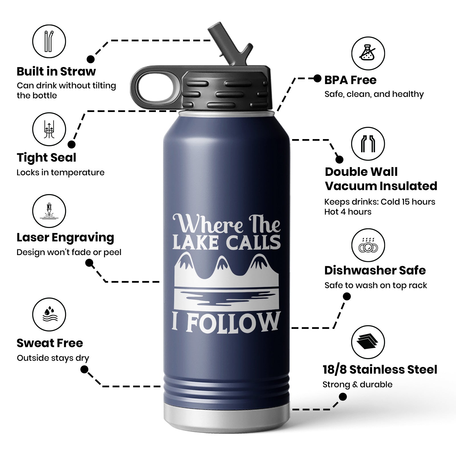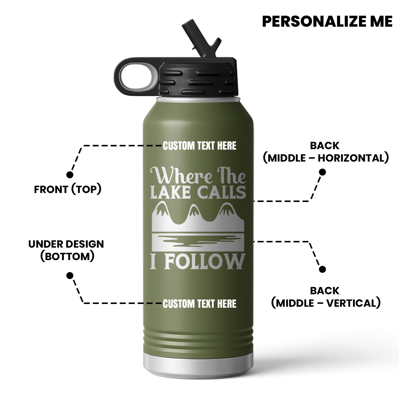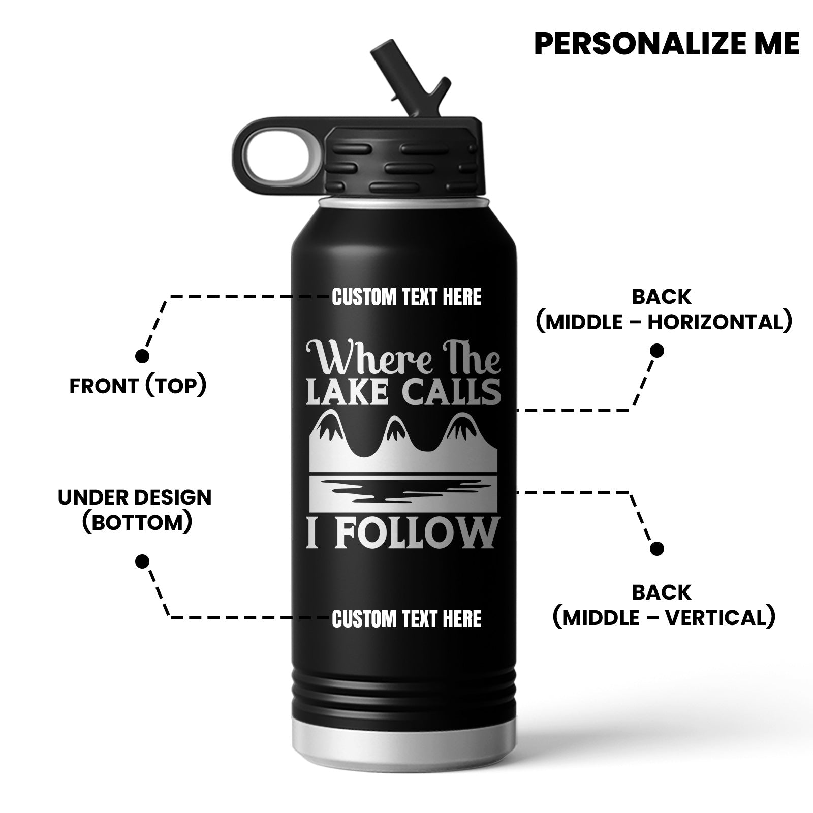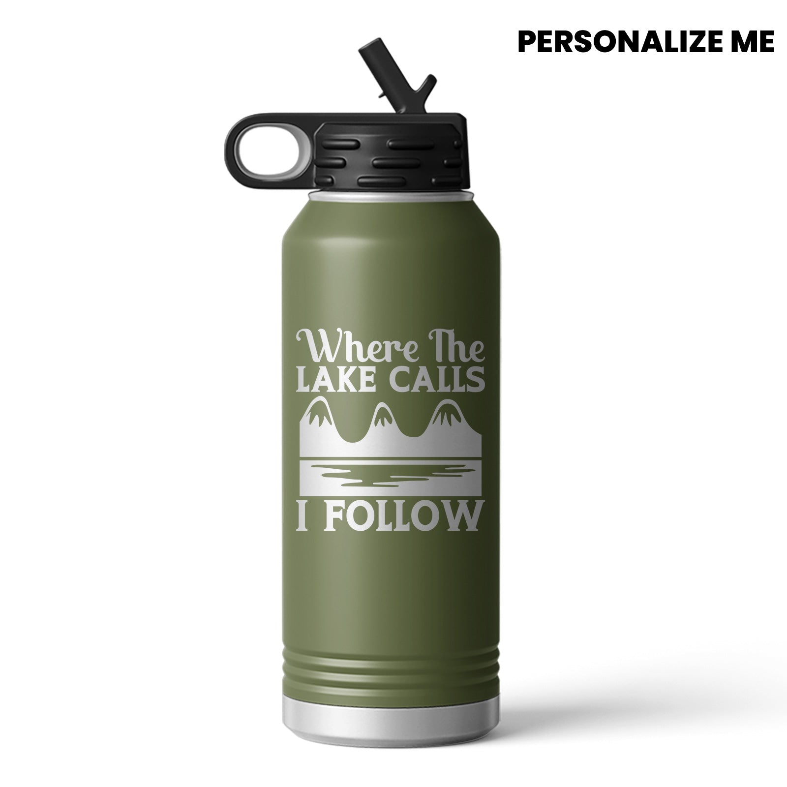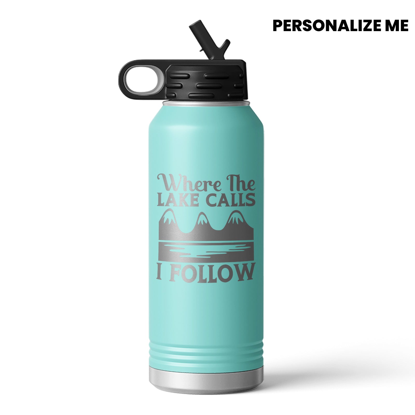Where The Lake Calls I Follow Text Image Water Bottle Mug