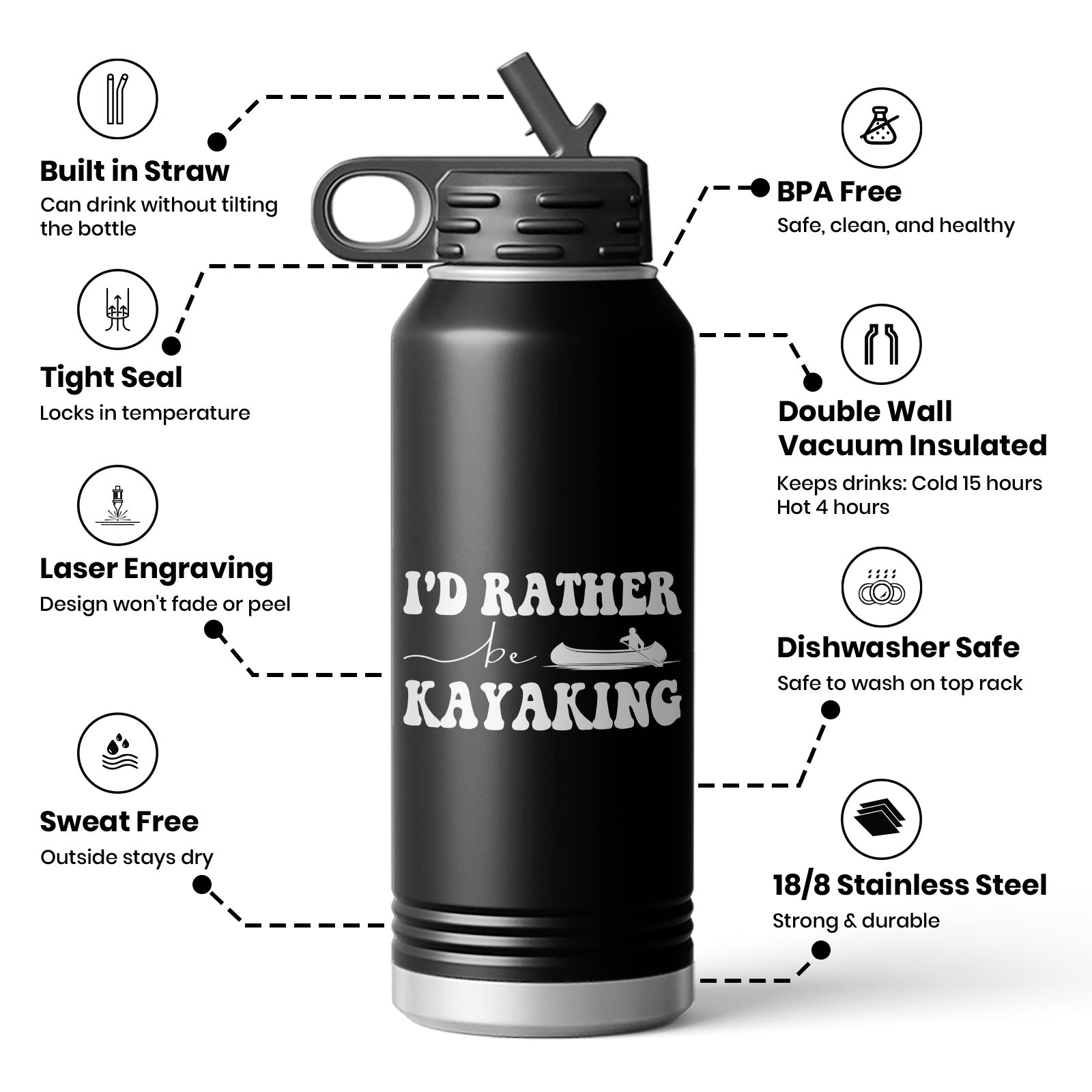 I'D Rather Be Kayaking Adventure Water Bottle Mug
