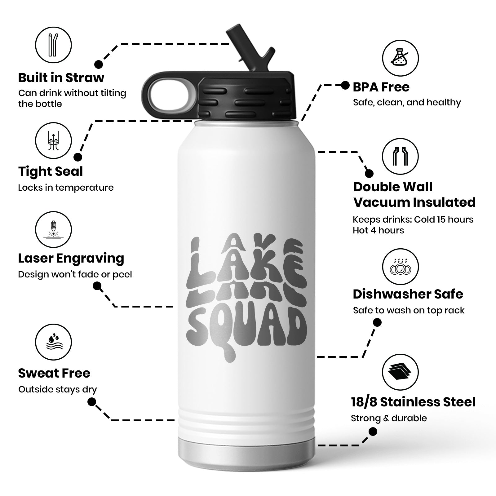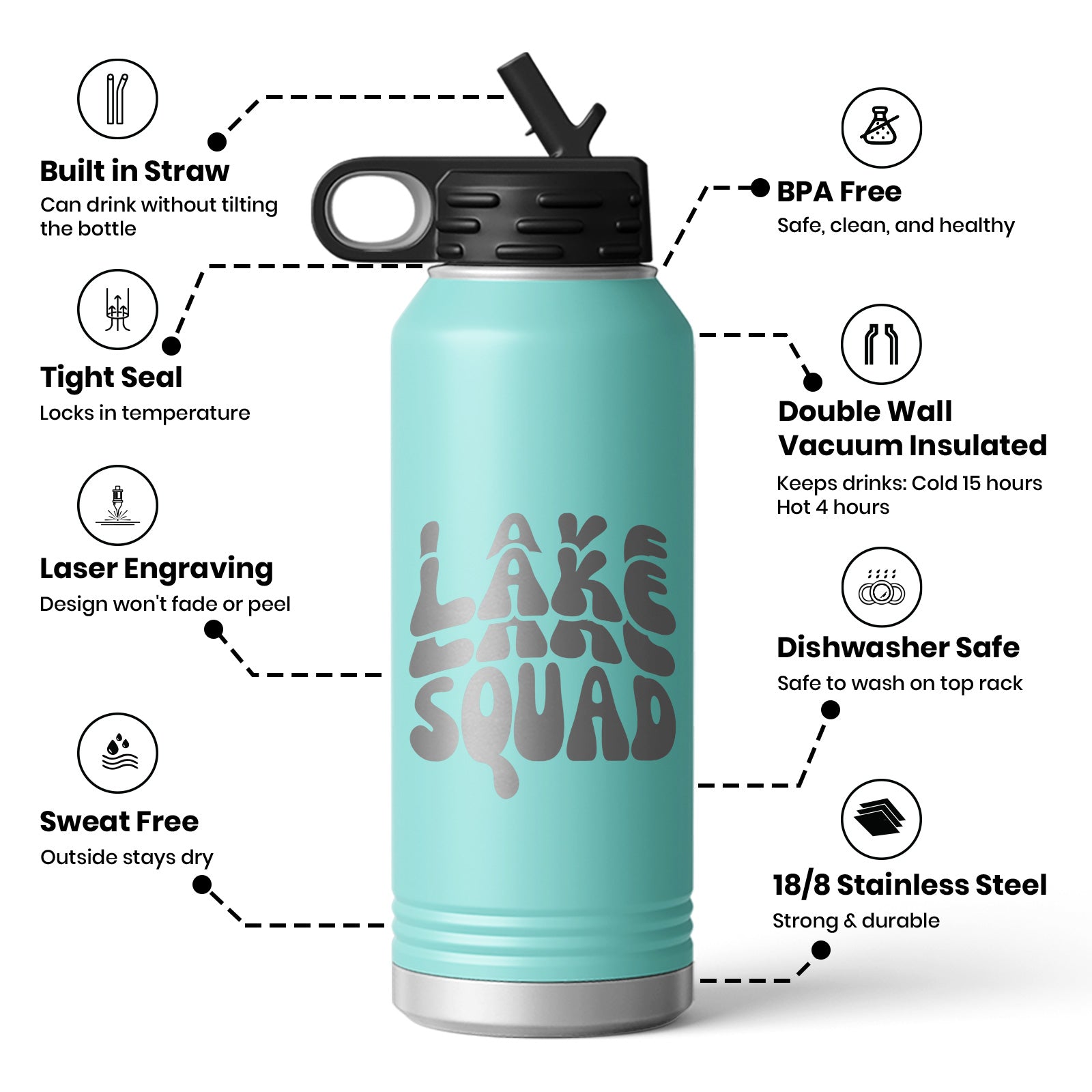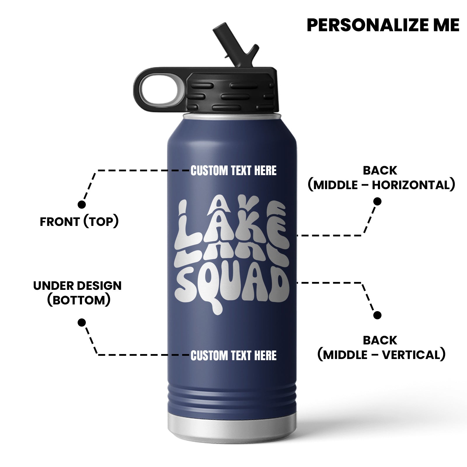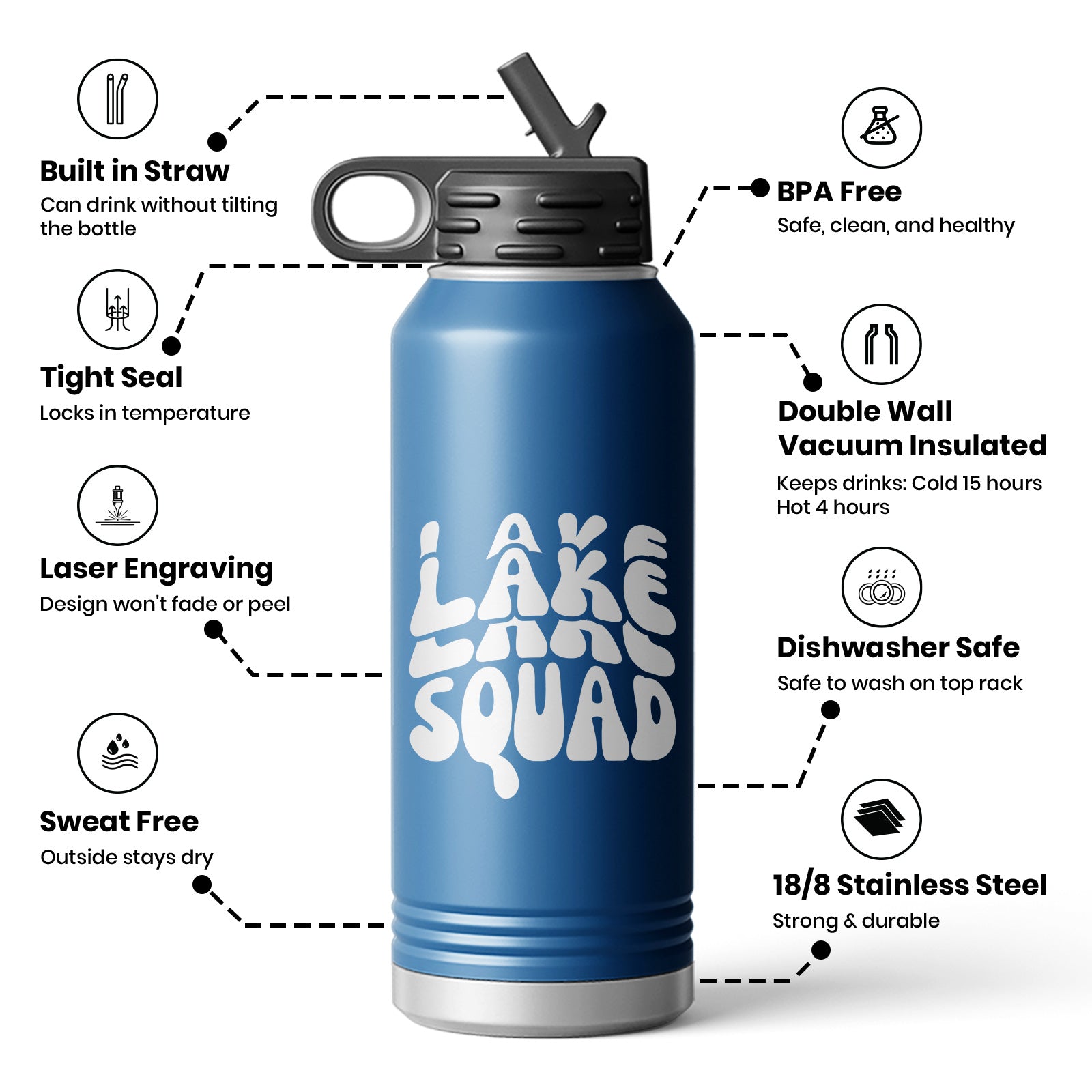Stay hydrated with the A squad made for the lake! water bottle, perfect for summer weekend gatherings with your tight-knit outdoor crew. Enjoy warm breezy lake days with this fun design that captures all aboard the fun boat vibes.