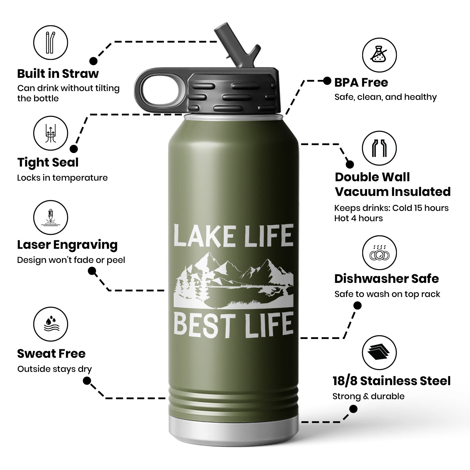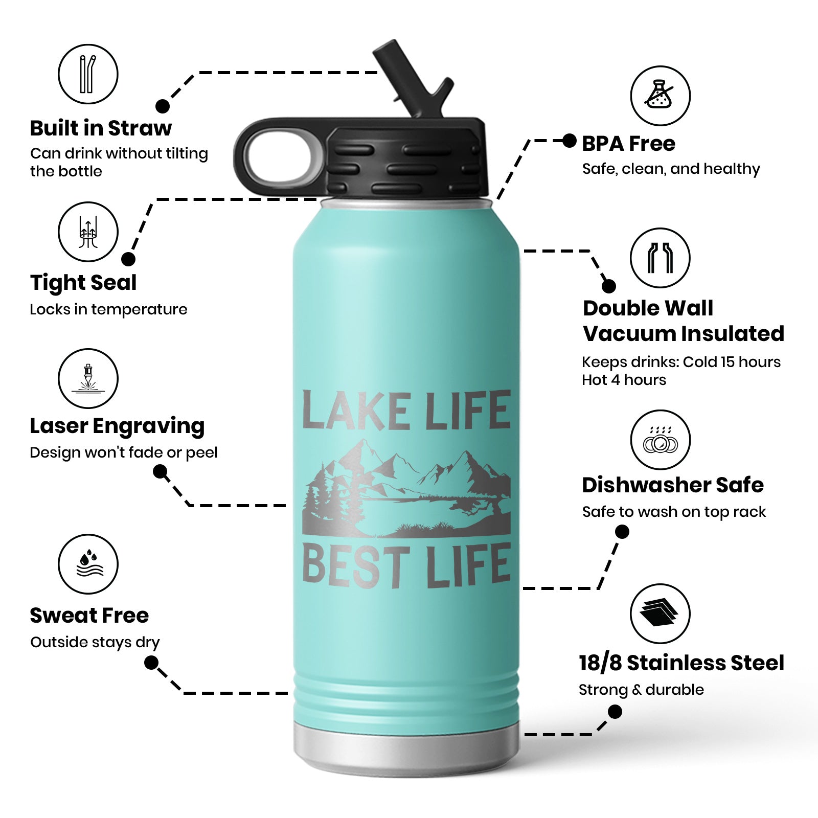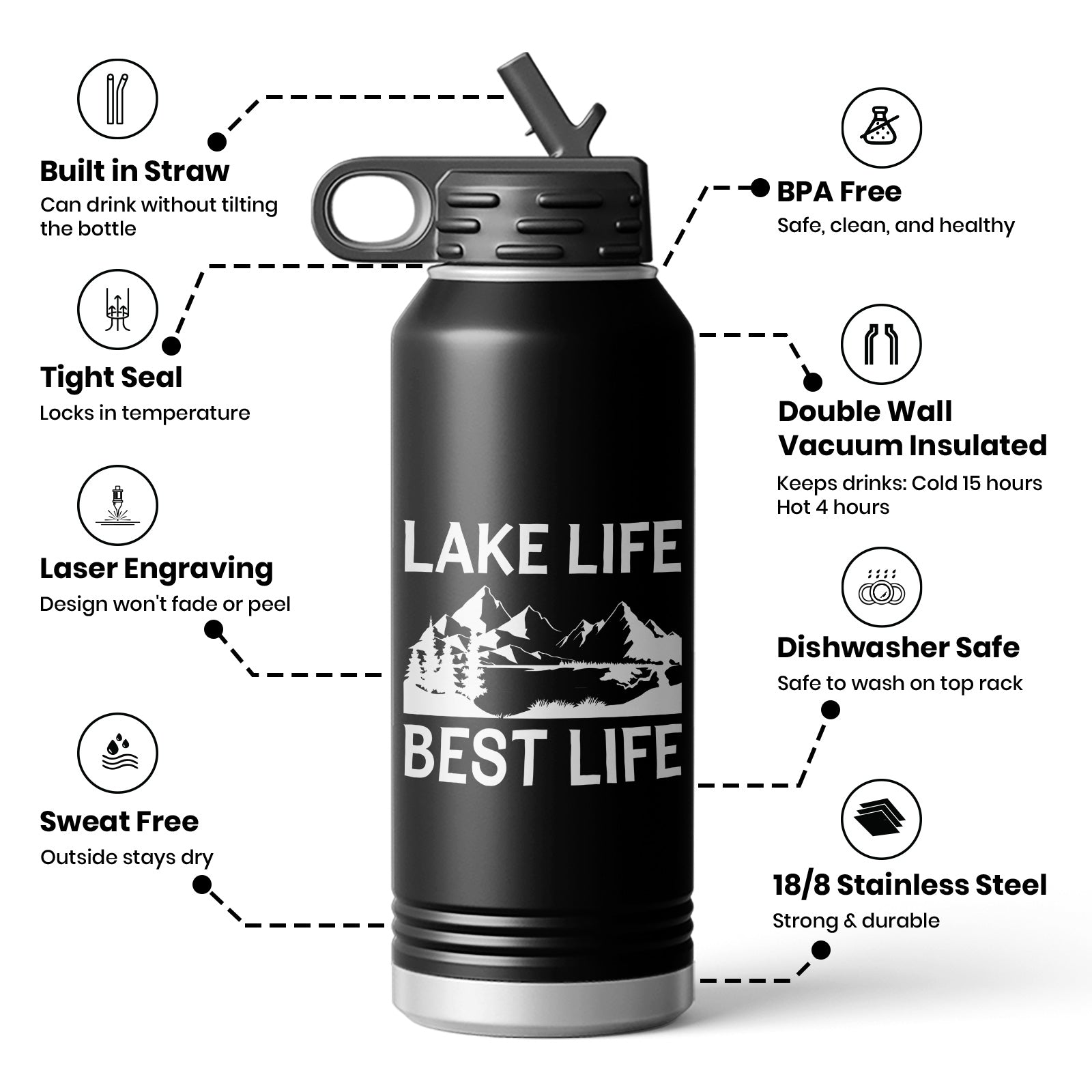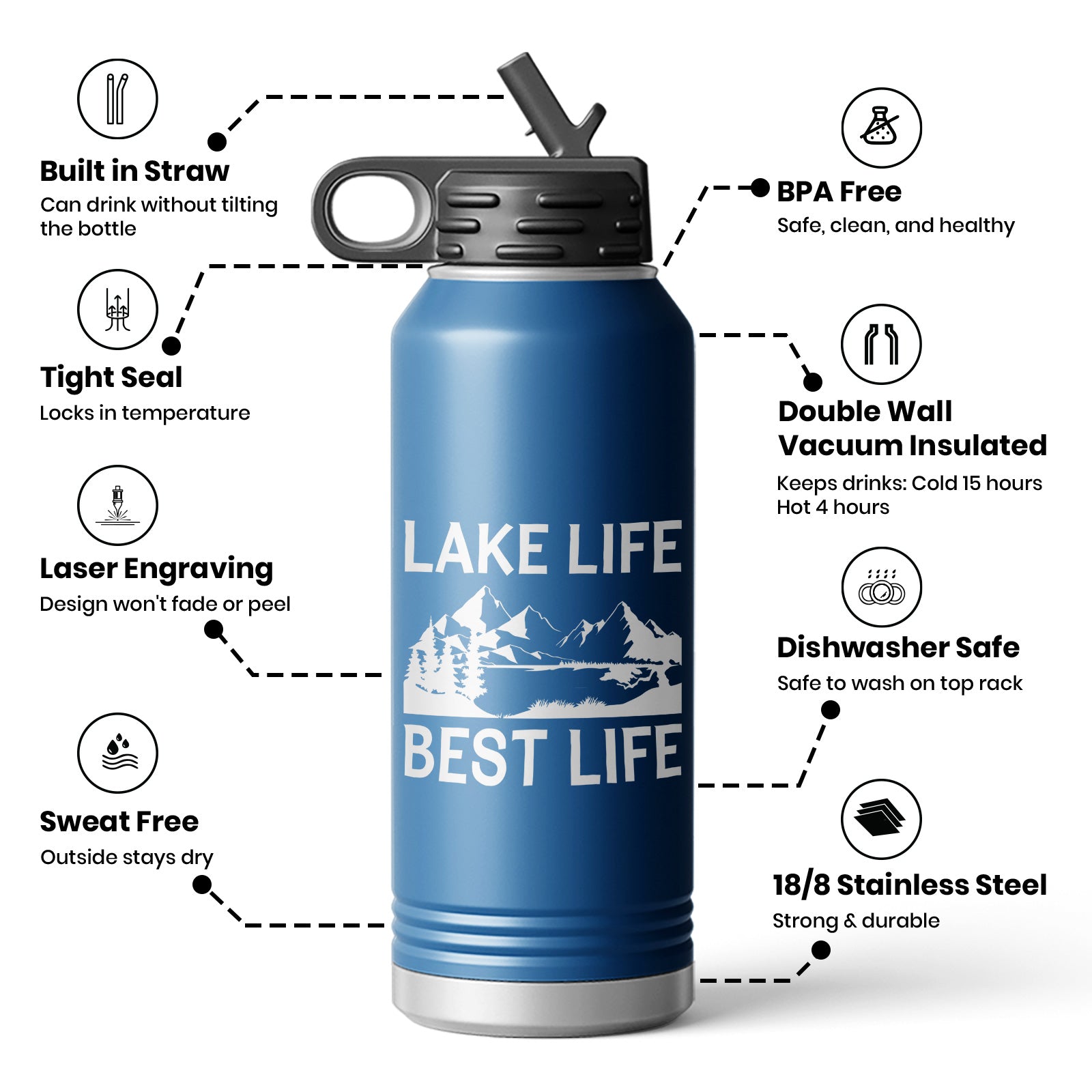 Life’s best by the lake! water bottle is the ultimate lake living accessory for adventure seekers. Featuring a stunning mountain lake landscape, it's perfect for exploring outdoors and embracing the best lake life. Stay hydrated in style!