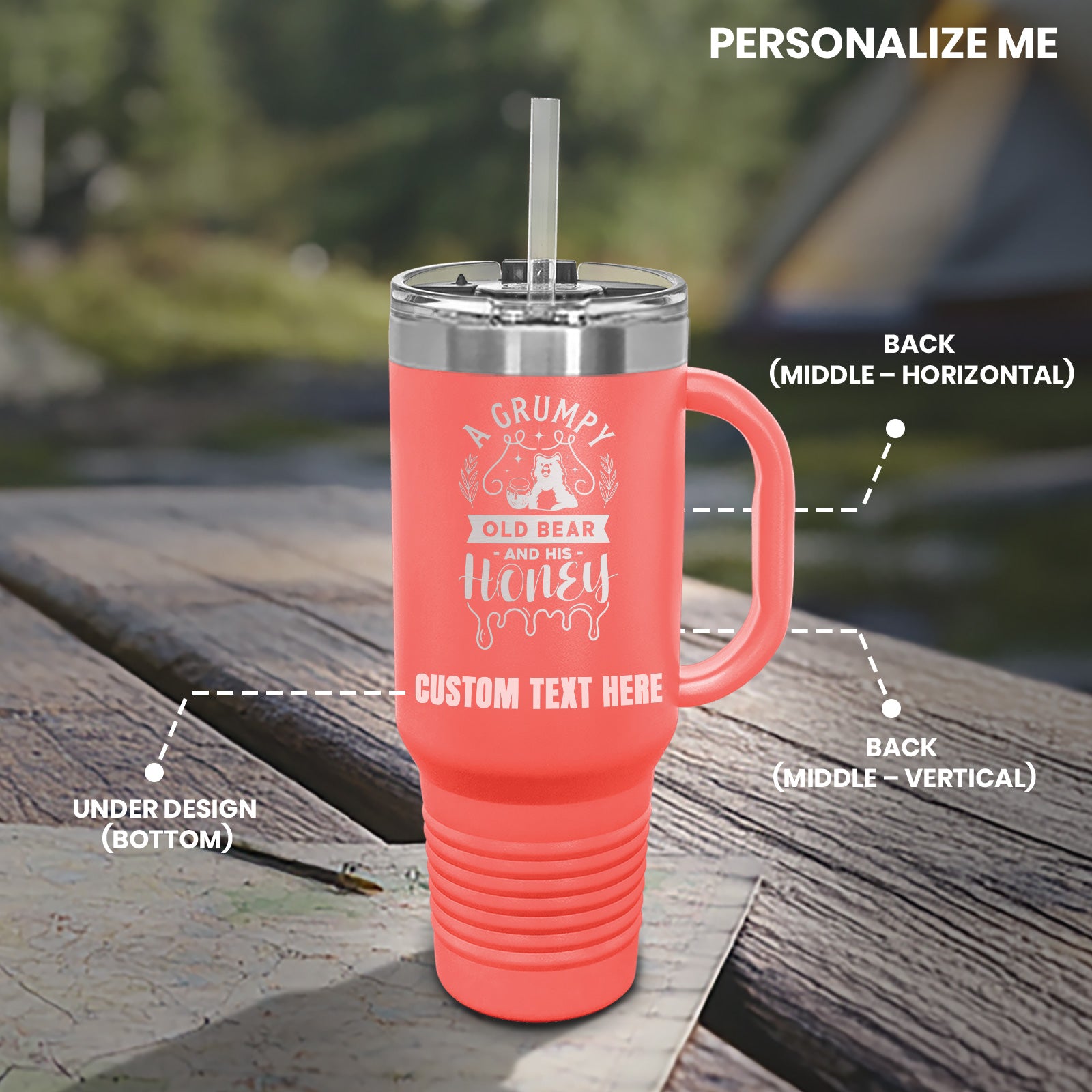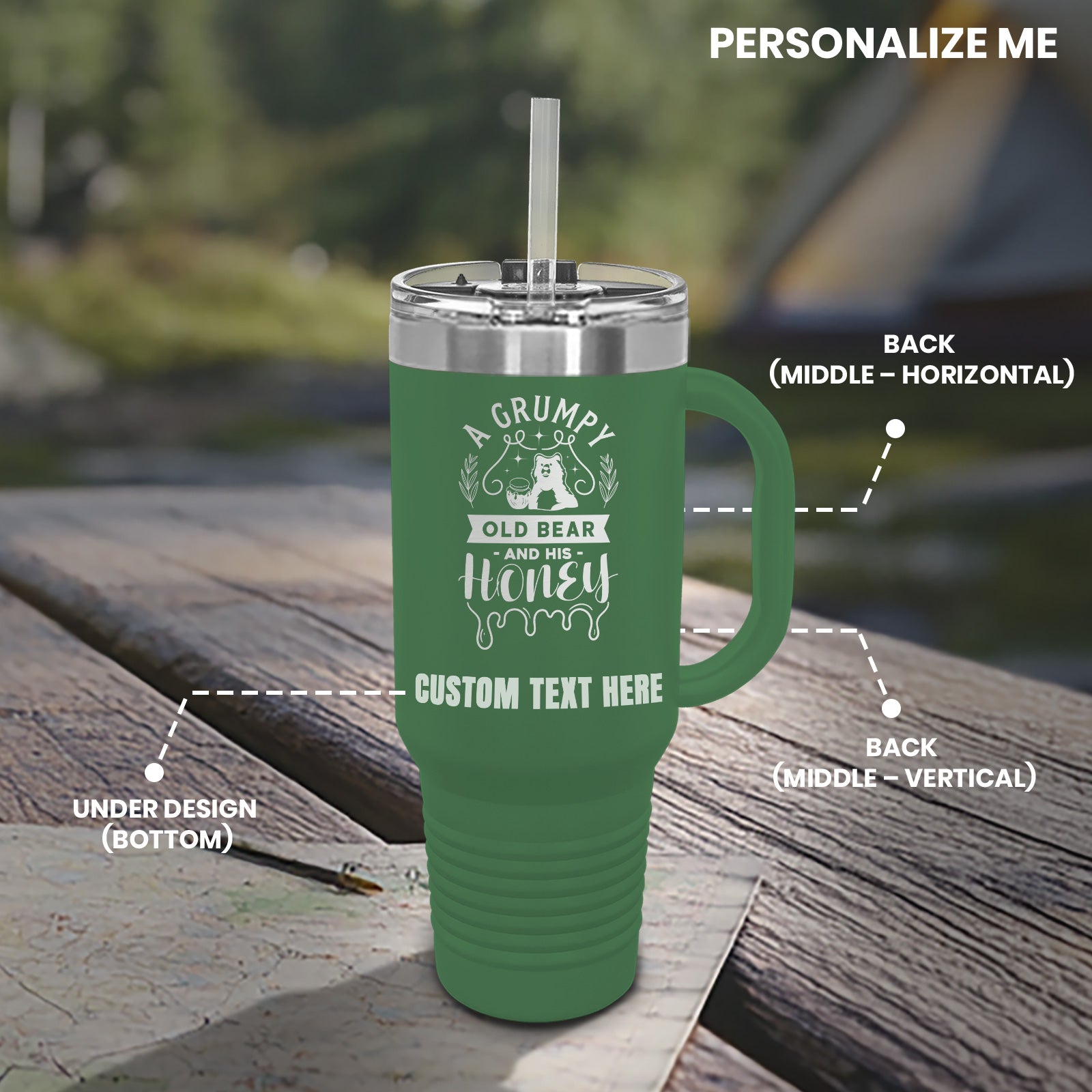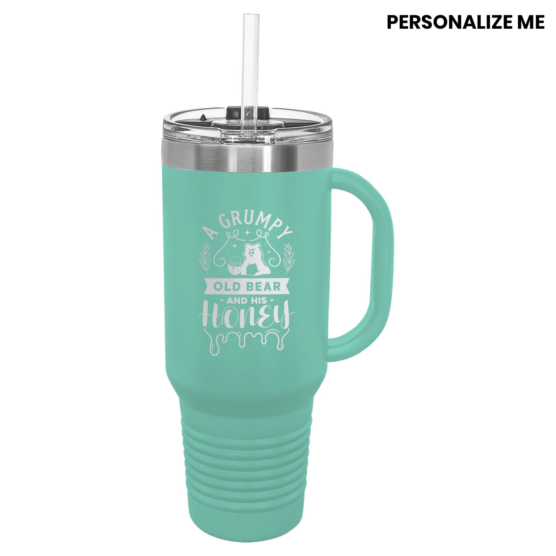 Cute Grumpy Old Bear With Honey Bee Tumbler with Handle