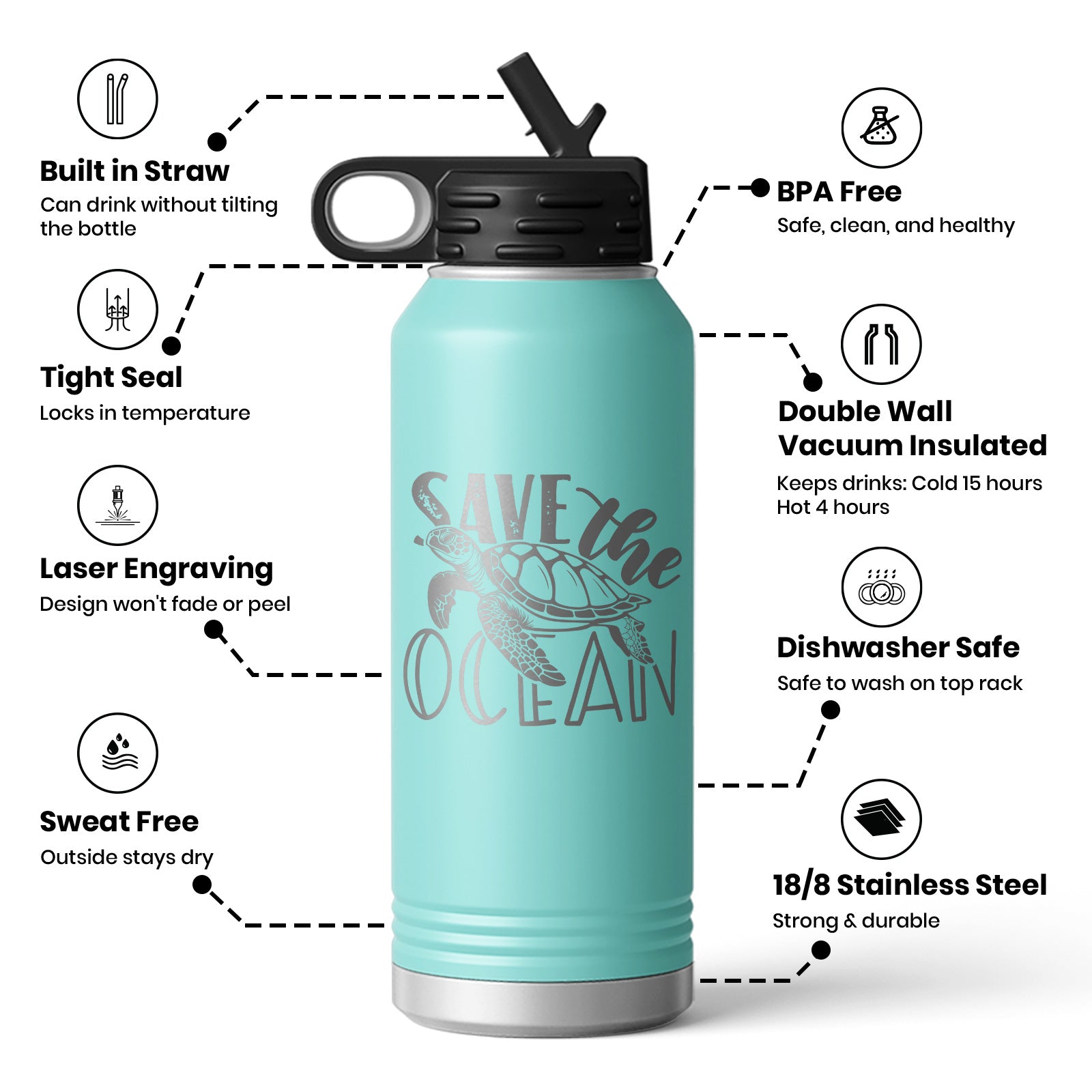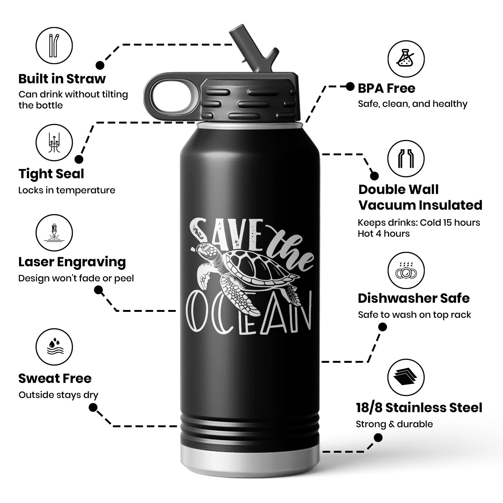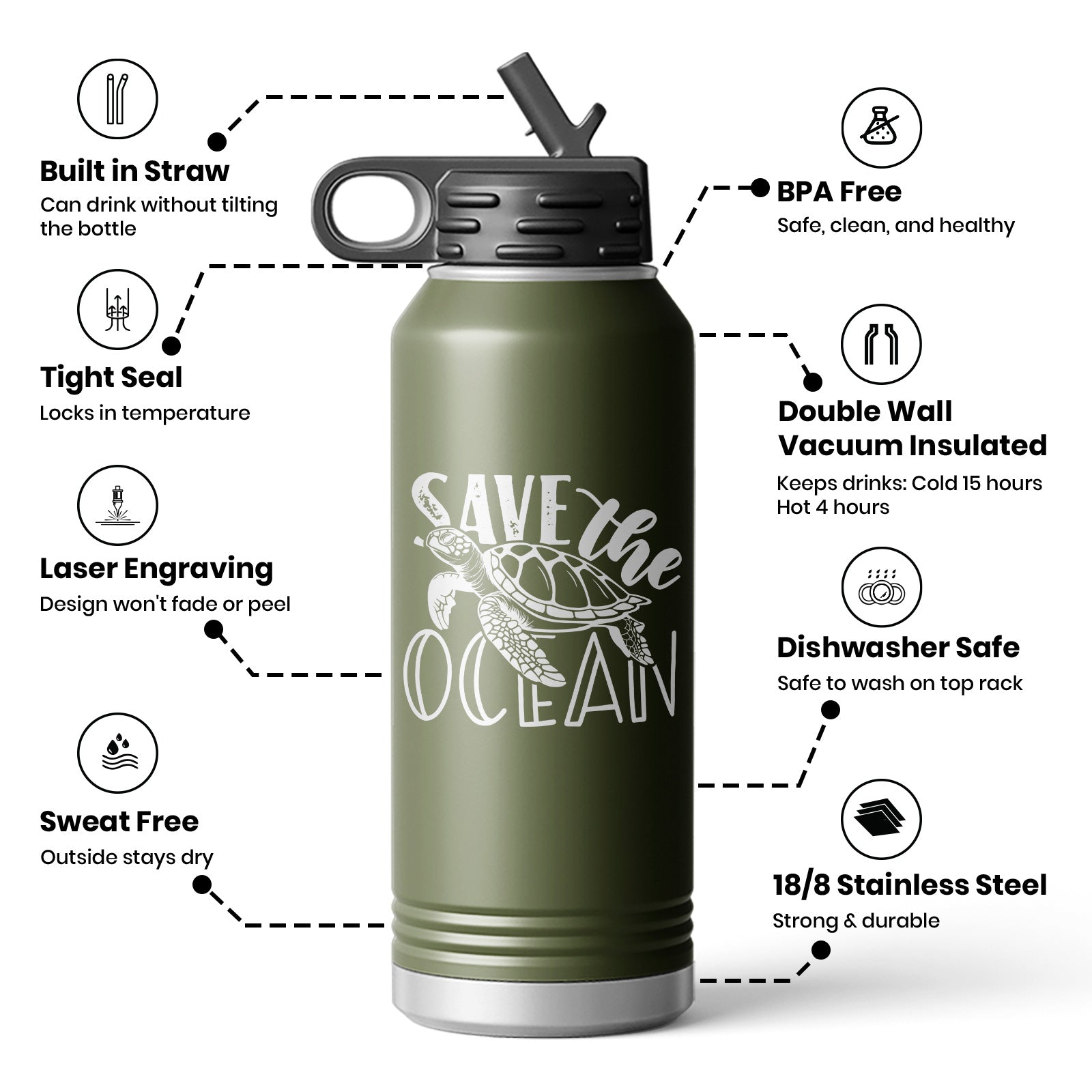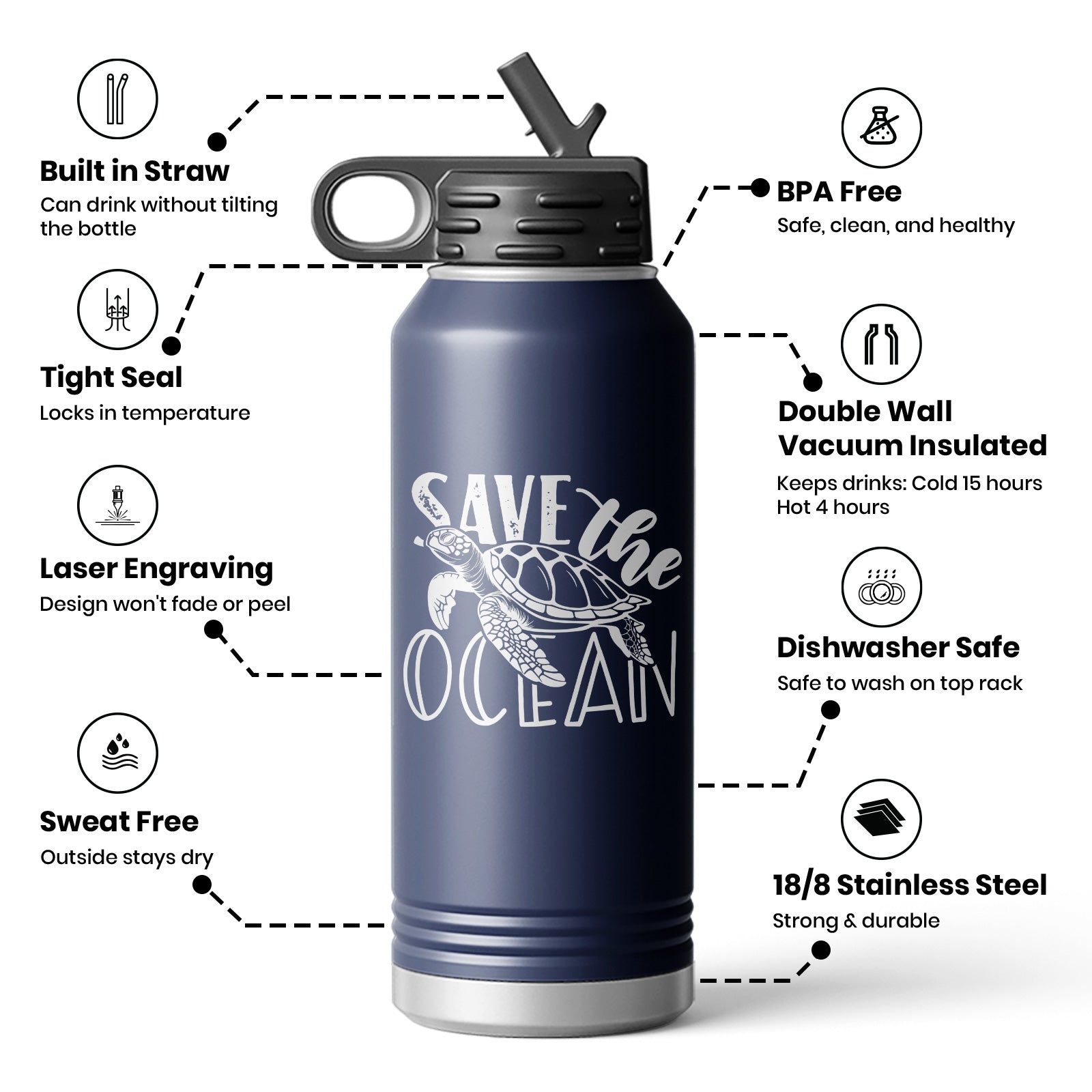 Save The Ocean Turtle Sea Dive Water Bottle Mug
