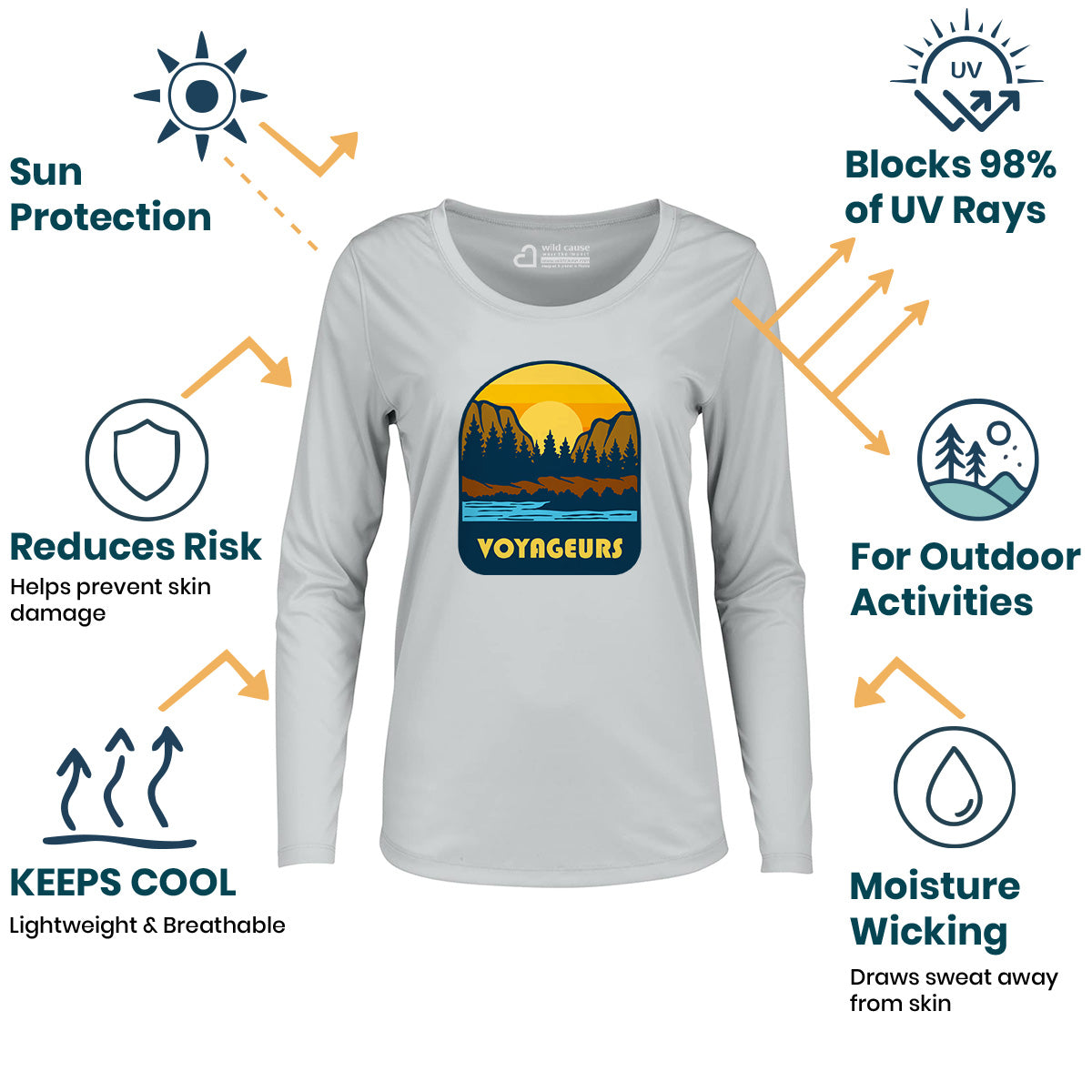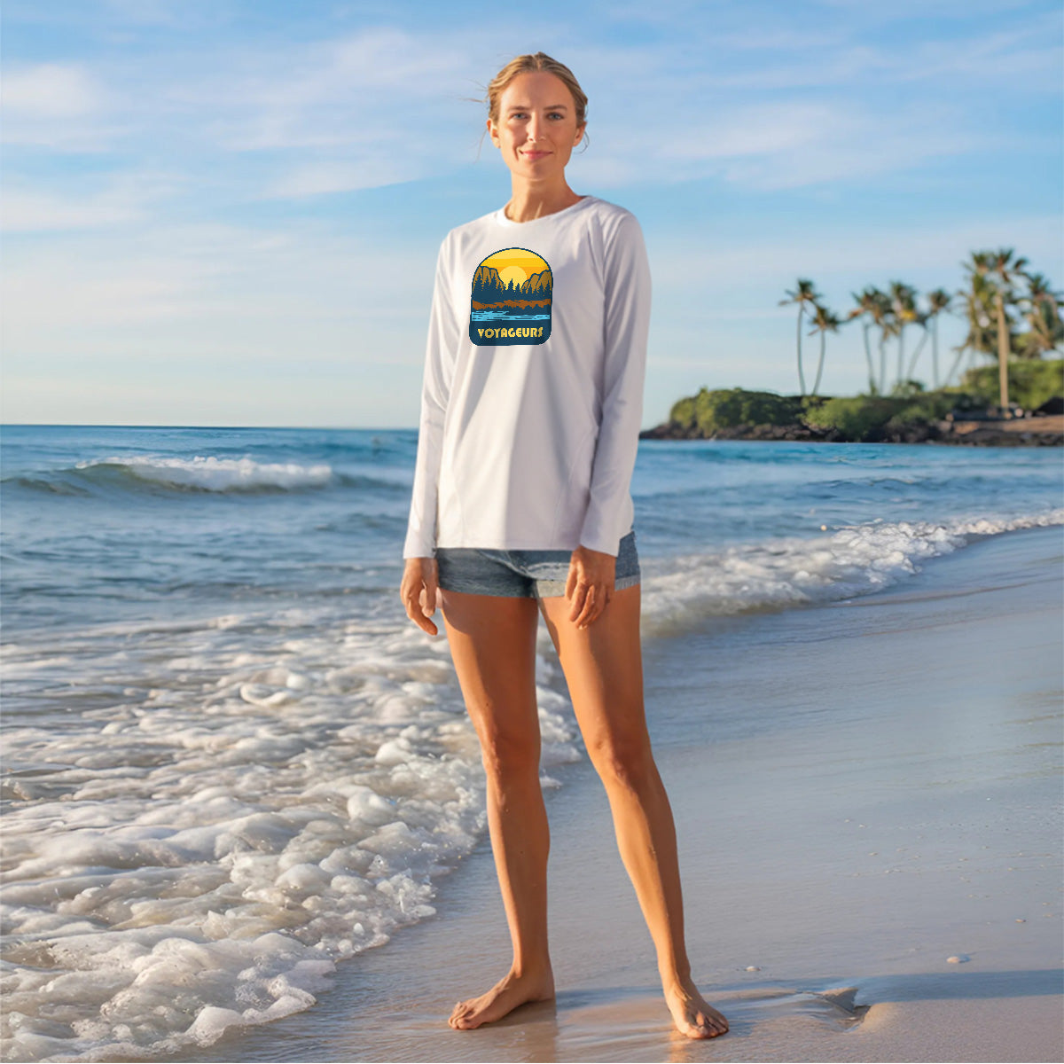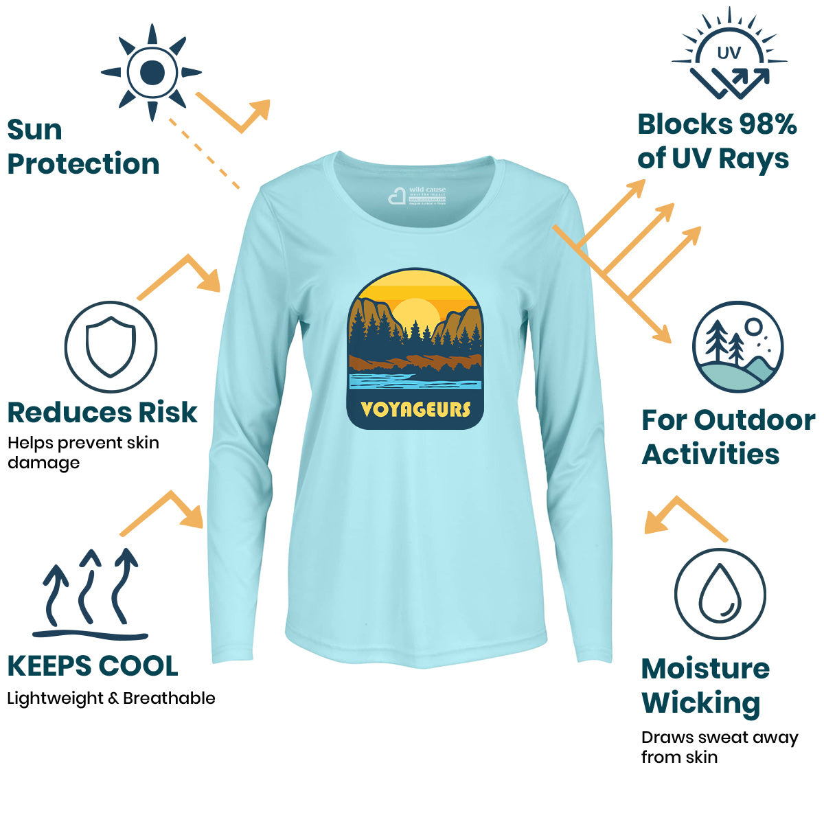The Voyageurs National Park Expedition Women Sun Protection UV Performance Shirt UPF 50+ is perfect for paddling in Voyageurs Park. Explore Voyageurs waters in style with this outdoor water trek shirt, designed for kayaking through Voyageurs. Stay protected on your Voyageurs canoe adventure.