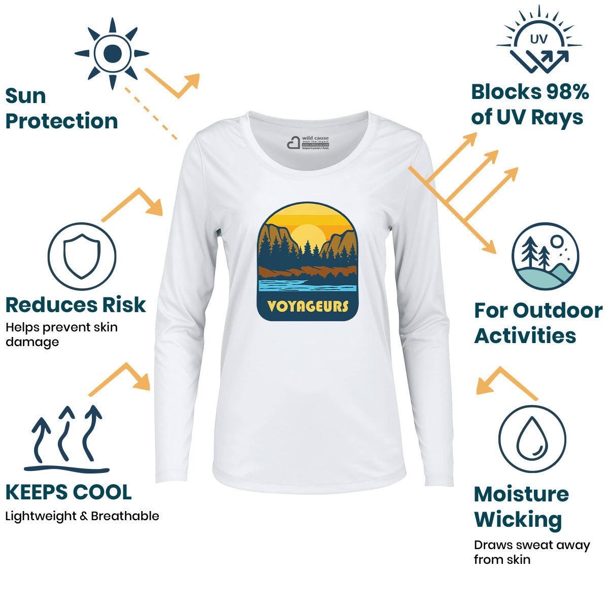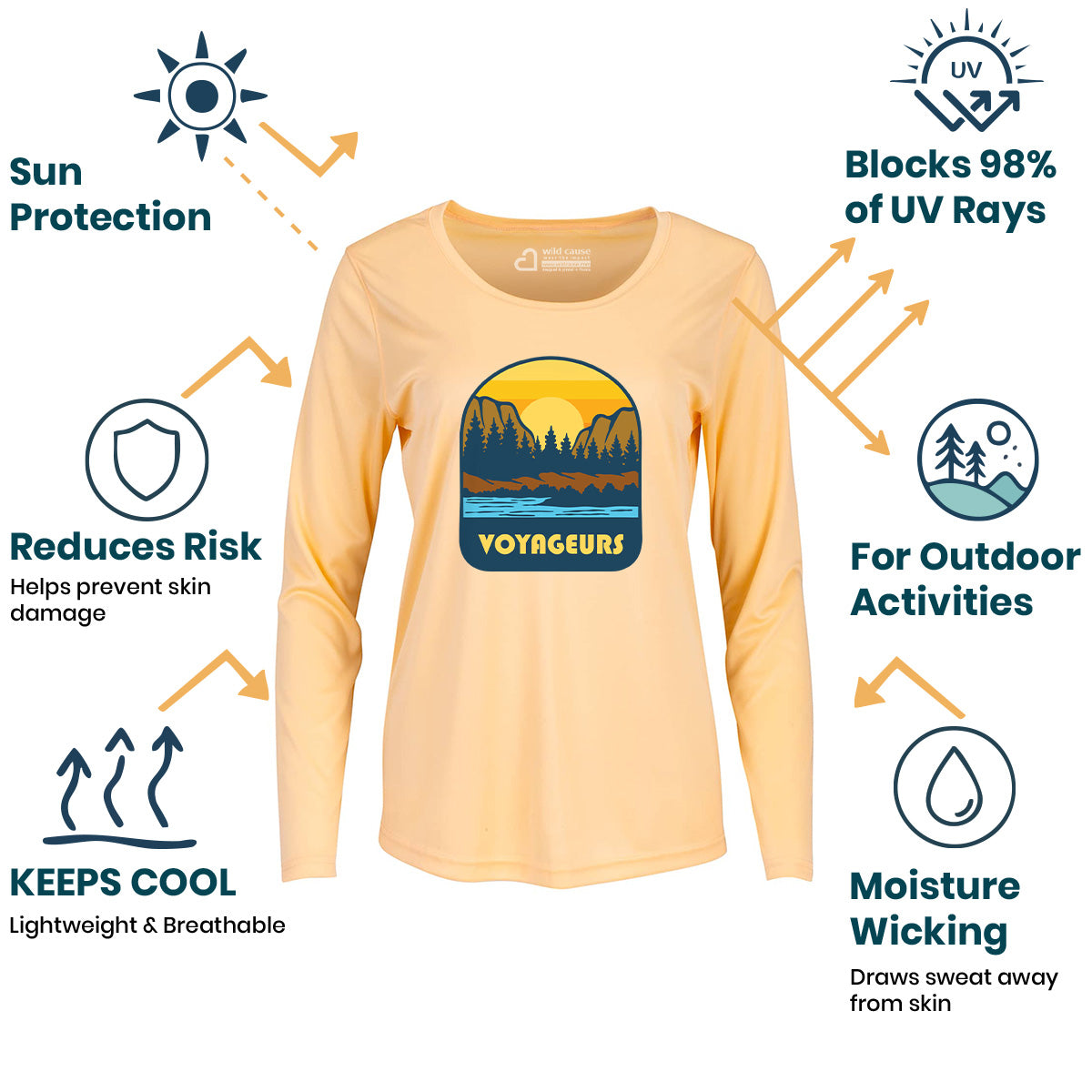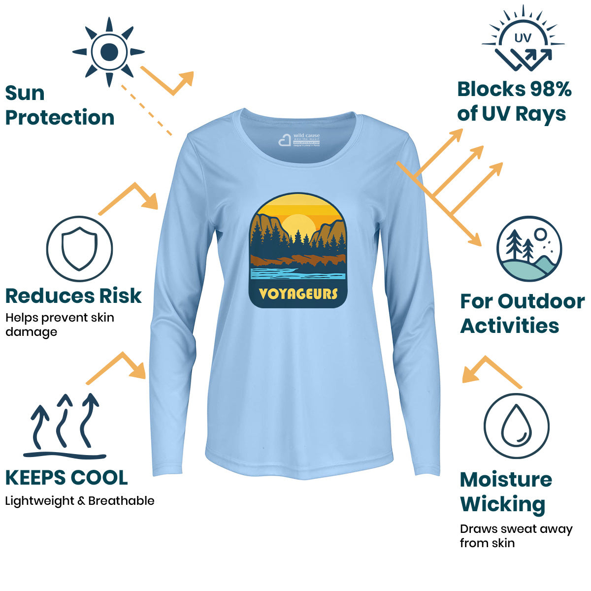 The Voyageurs National Park Expedition Women Sun Protection UV Performance Shirt UPF 50+ is perfect for paddling in Voyageurs Park. Explore Voyageurs waters in style with this outdoor water trek shirt, designed for kayaking through Voyageurs. Stay protected on your Voyageurs canoe adventure.