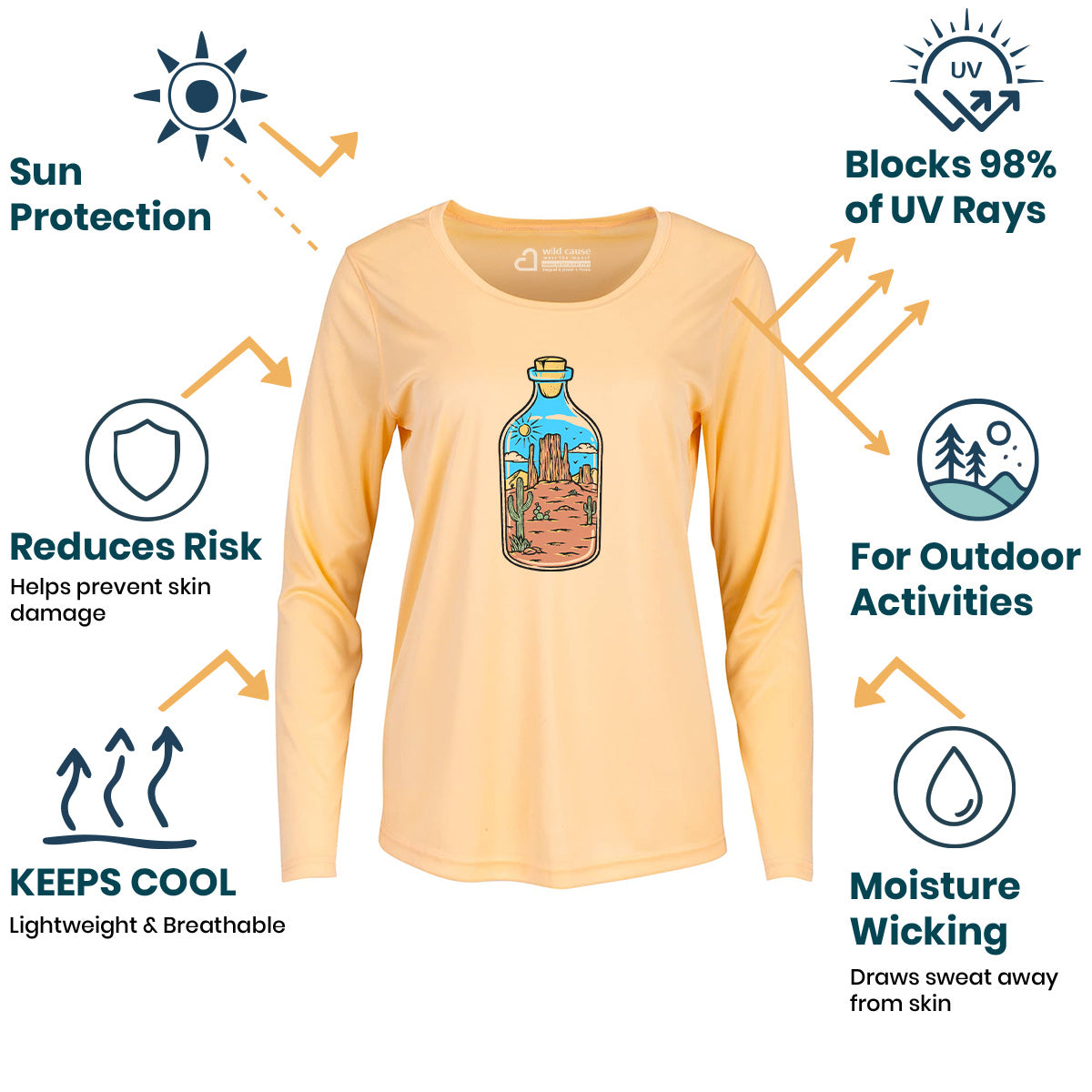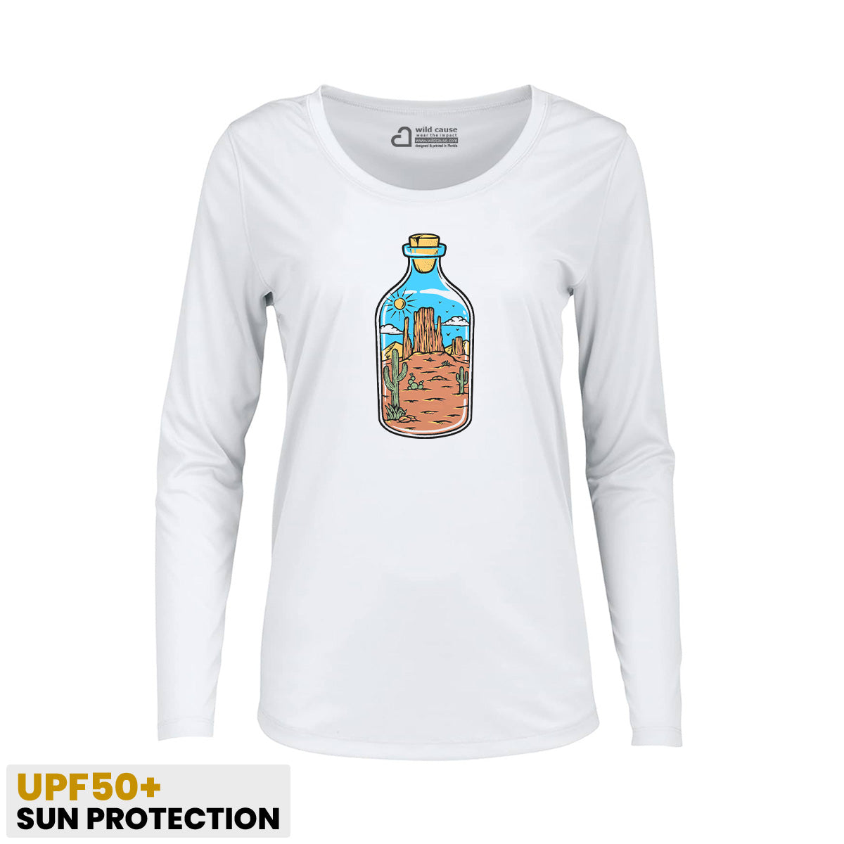 Desert-Dunes Endless Cactus Vibes In Bottle Women Sun Protection UV Performance Shirt UPF 50+