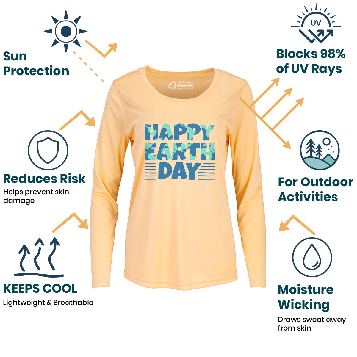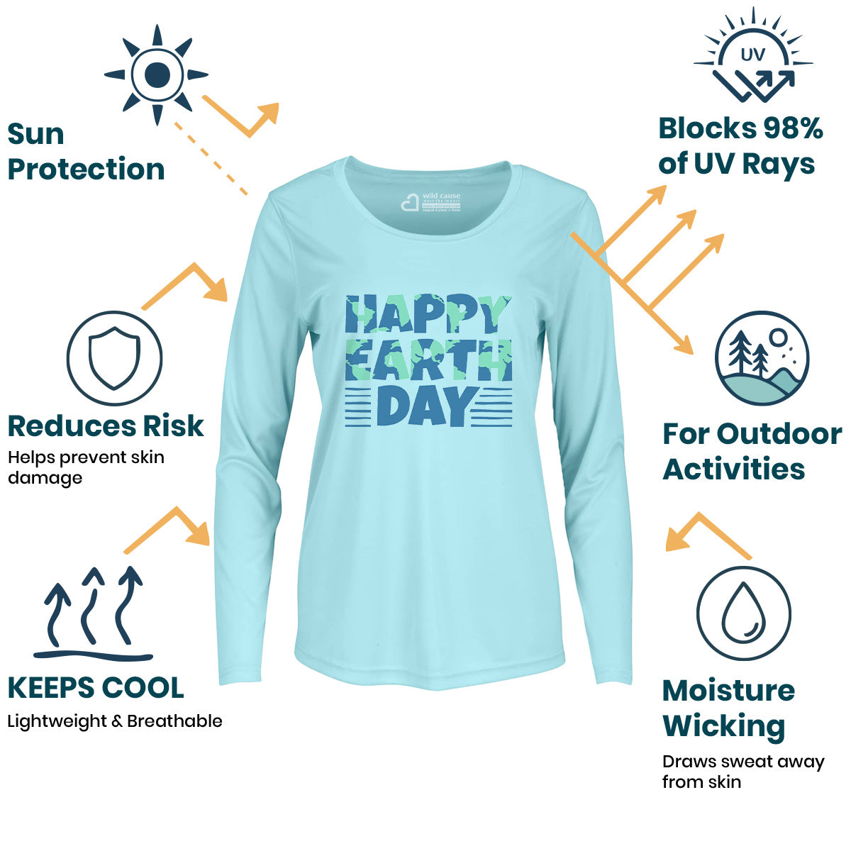 Happy Earth Day Celebration Women Sun Protection UV Performance Shirt UPF 50+
