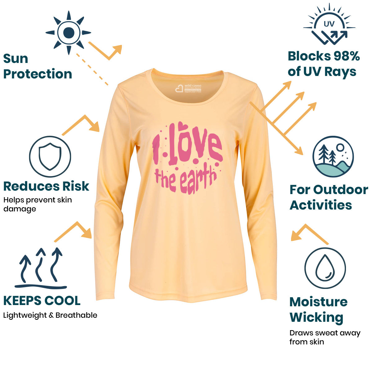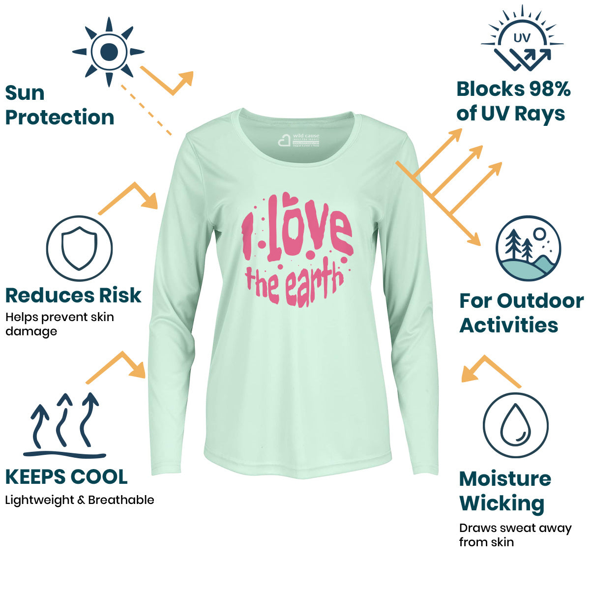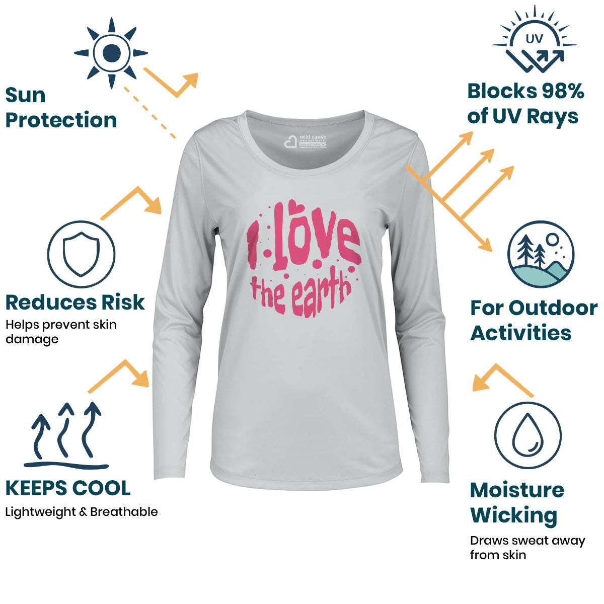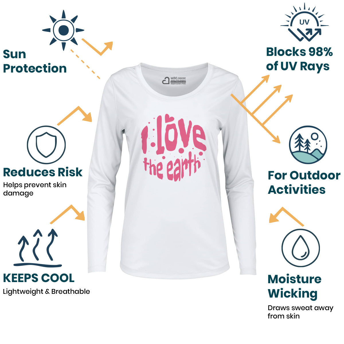 The Forever Love Earth Women Sun Protection UV Performance Shirt UPF 50+ is a must-have for Love for Earth Awareness. Show your support for the Valentine's Day Earth Campaign with this eco-friendly shirt. Protect and Love the Earth while enjoying nature care Love the Earth benefits.