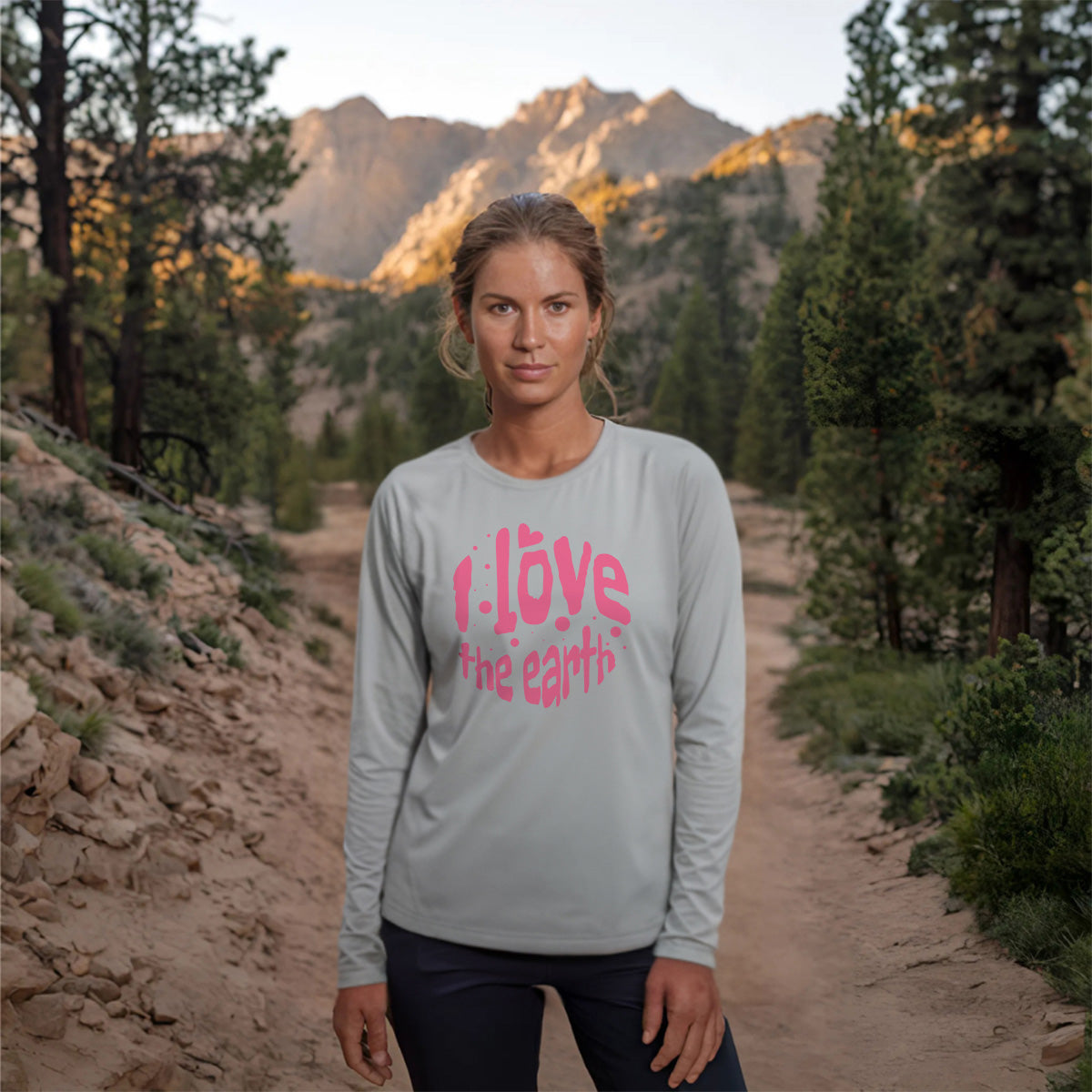 I Love Earth Heart Themed Nature Protection Women Sun Protection UV Performance Shirt UPF 50+