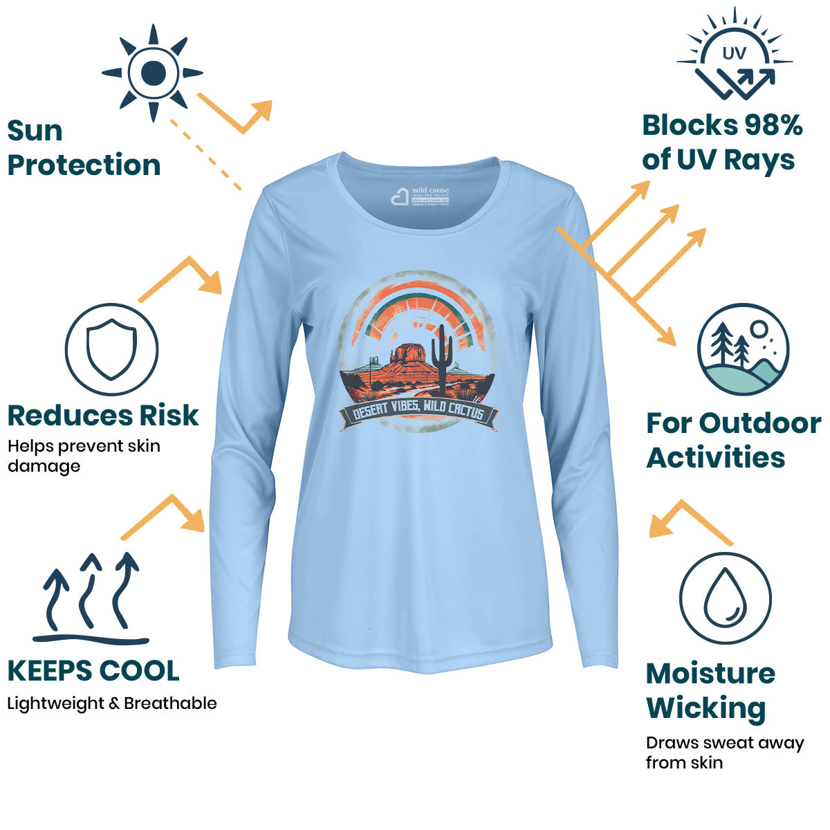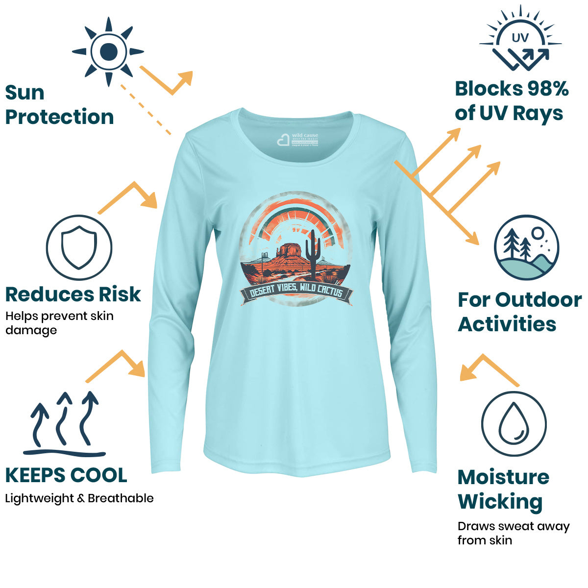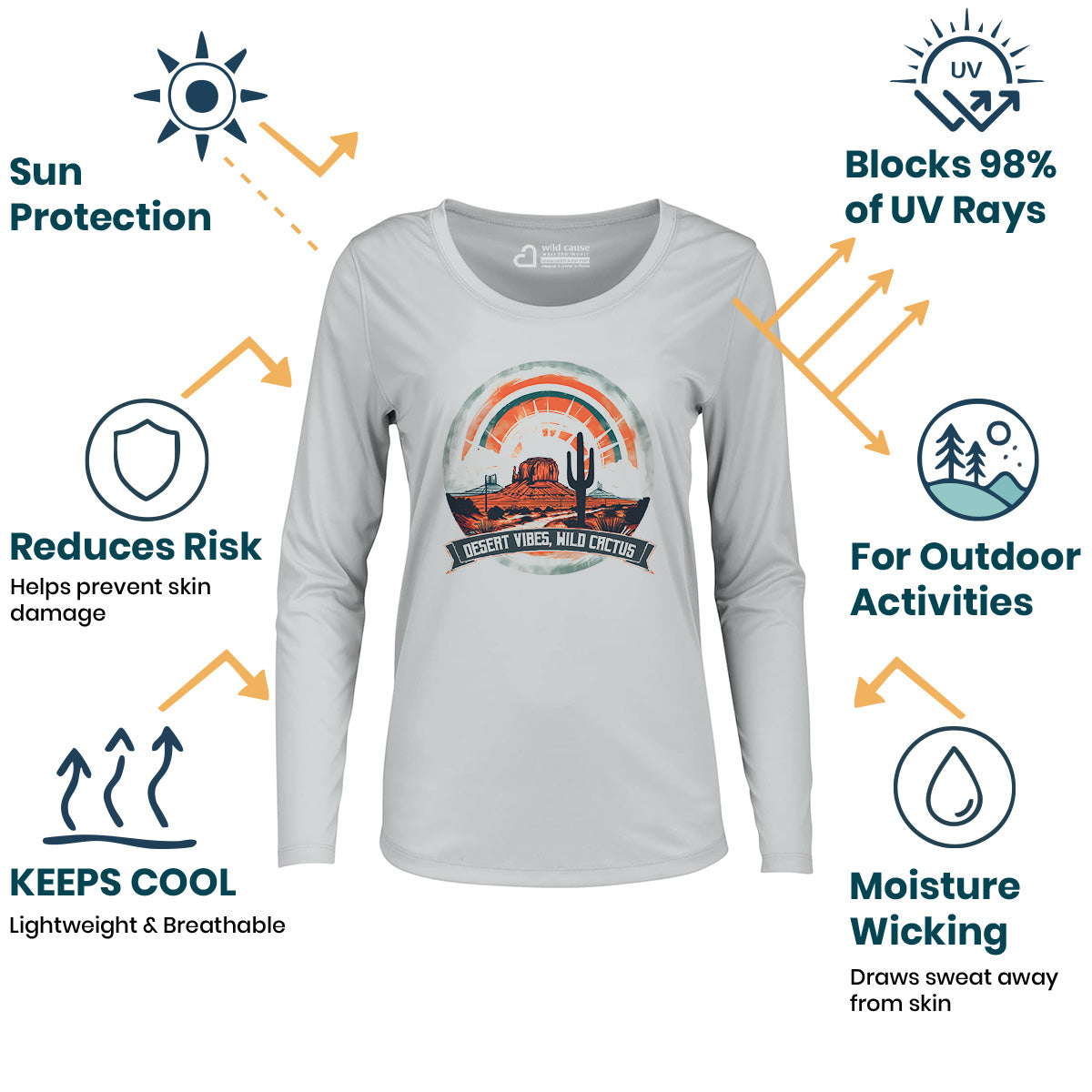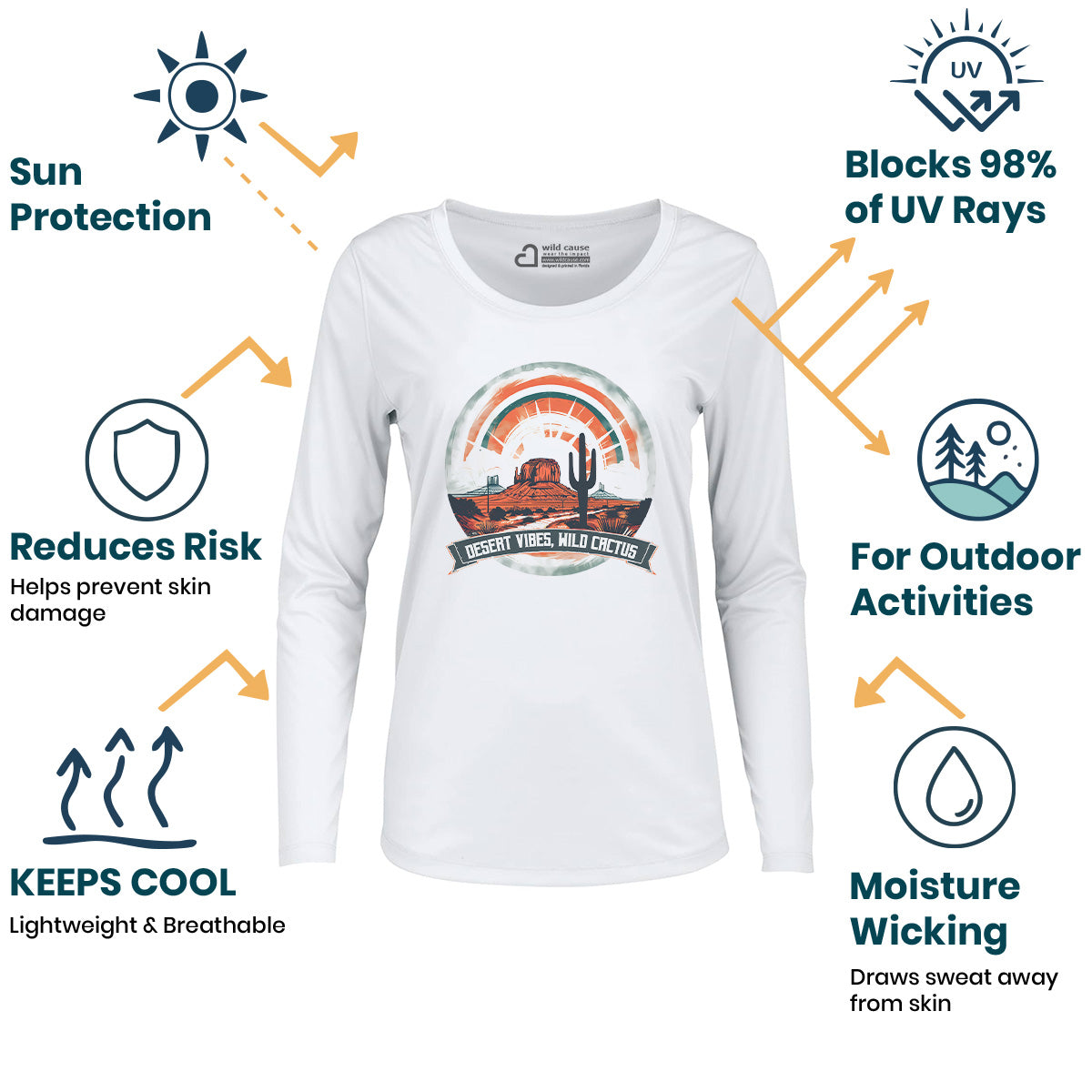 Sun-Sand Desert Vibes Wild Cactus Spine Women Sun Protection UV Performance Shirt UPF 50+