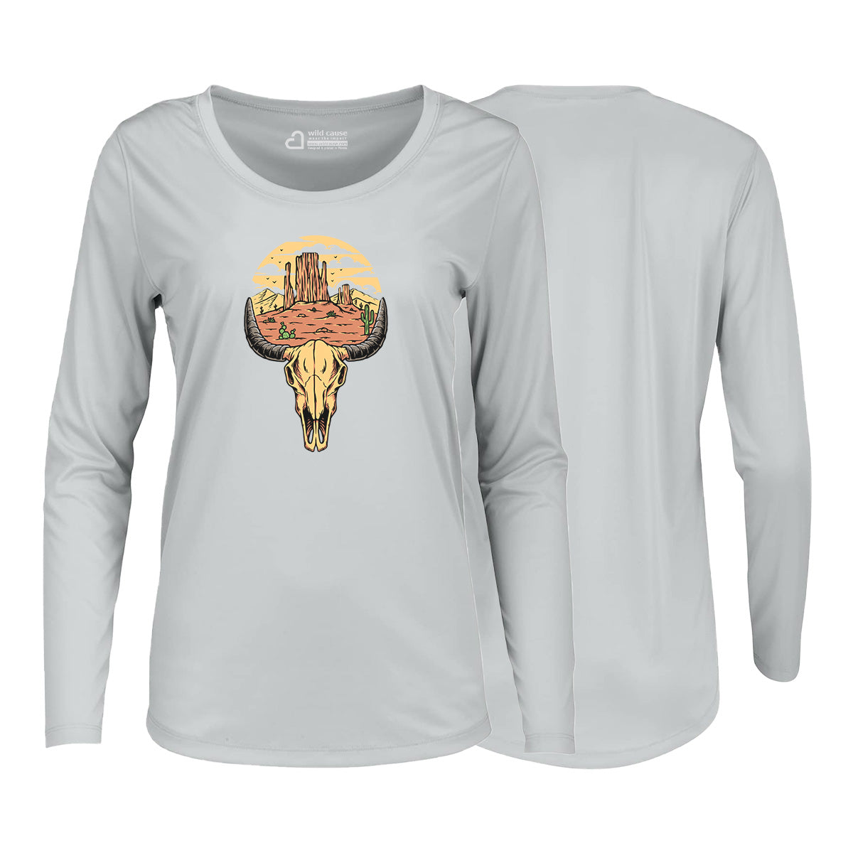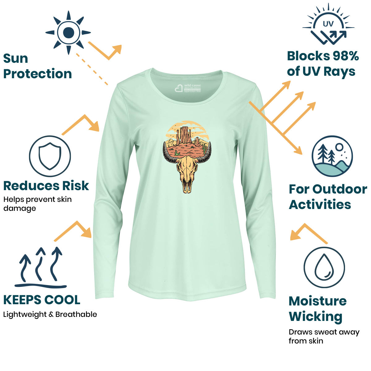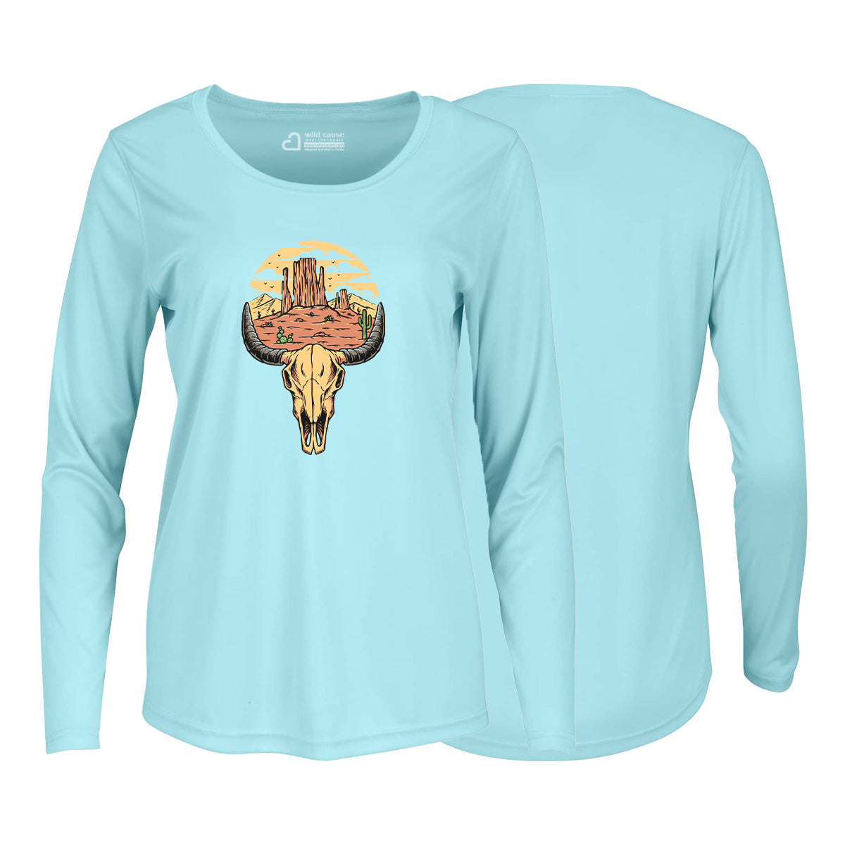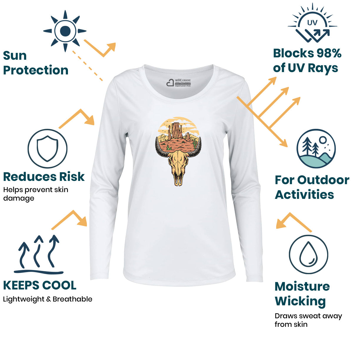 Wilderness Bull-Skull Desert Mystery Vibes Women Sun Protection UV Performance Shirt UPF 50+