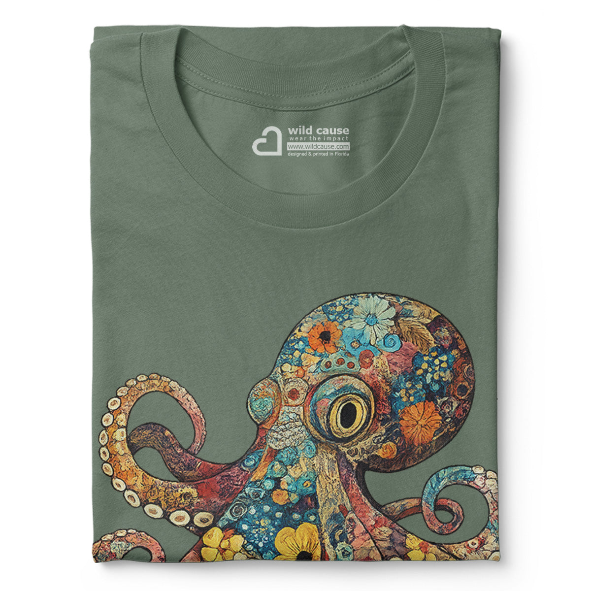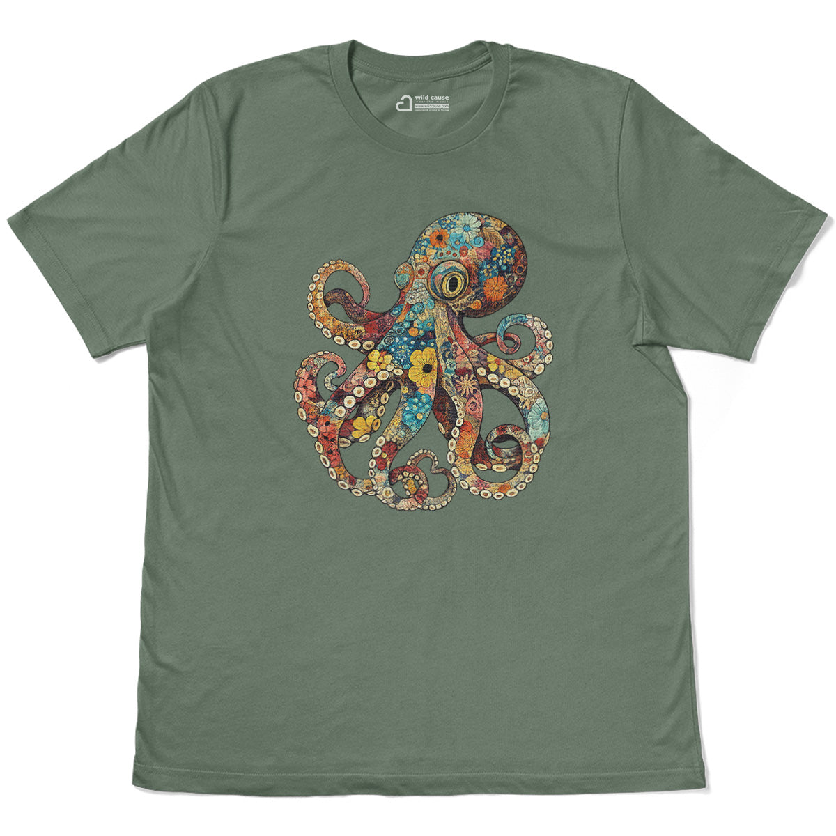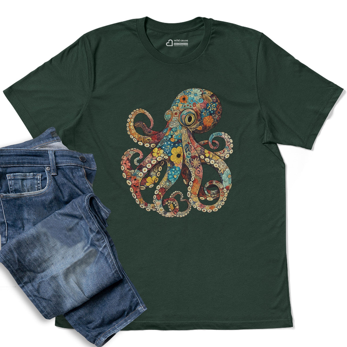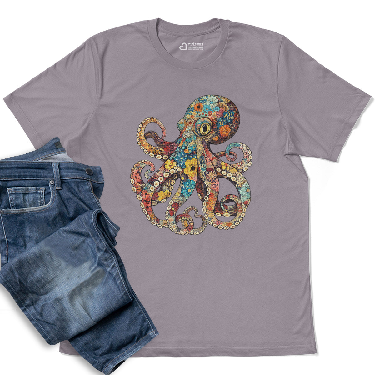 The Vibrant floral octopus bringing color and style Adult Cotton Tee T-Shirt features a colorful octopus design that adds a touch of vibrancy to your outfit. This floral sea creature tee is perfect for those who love octopus with flowers.