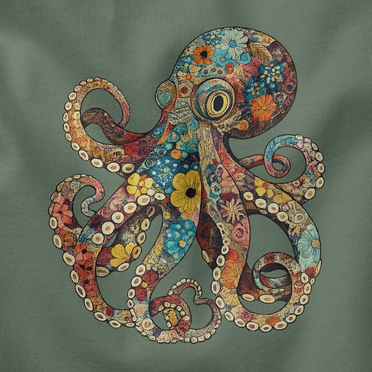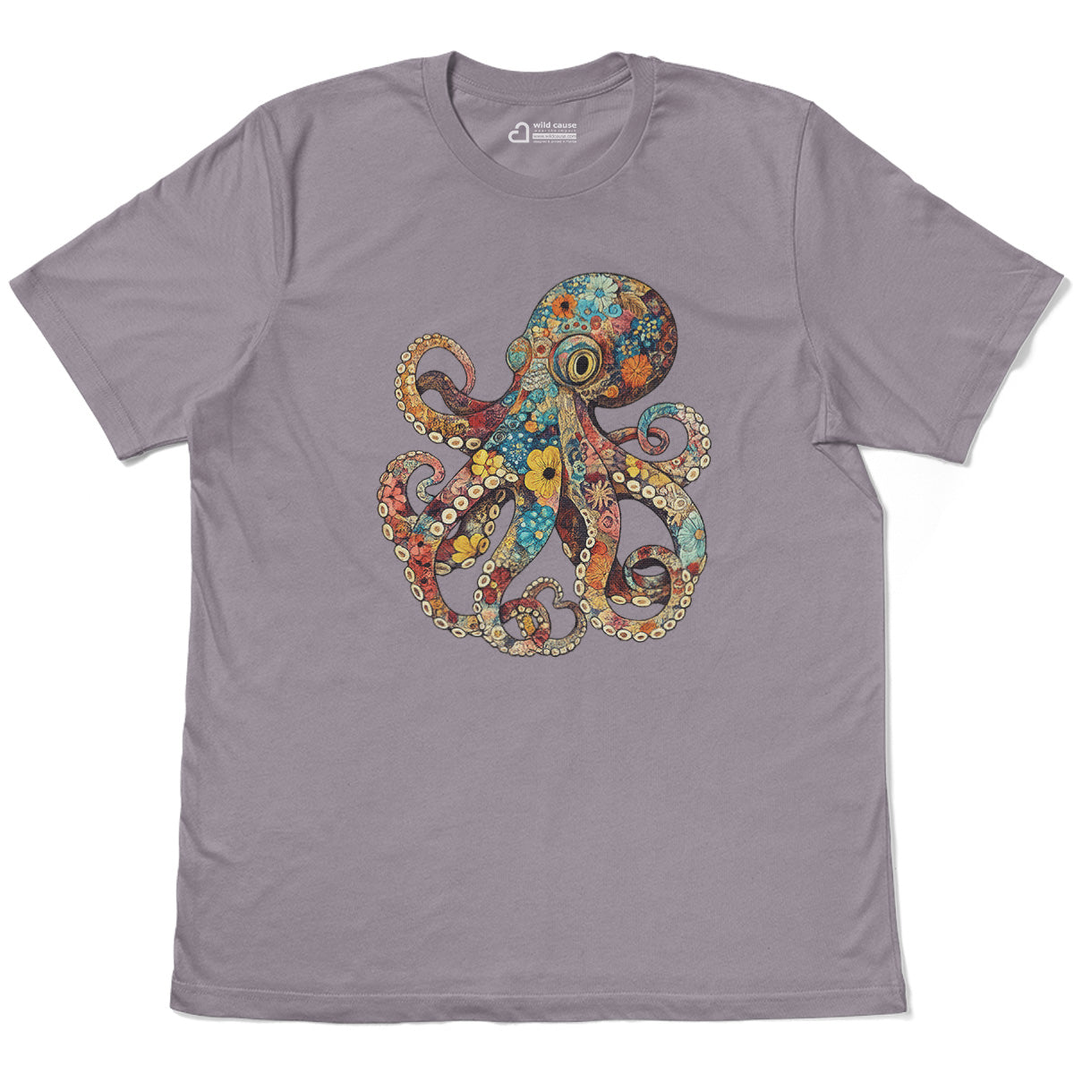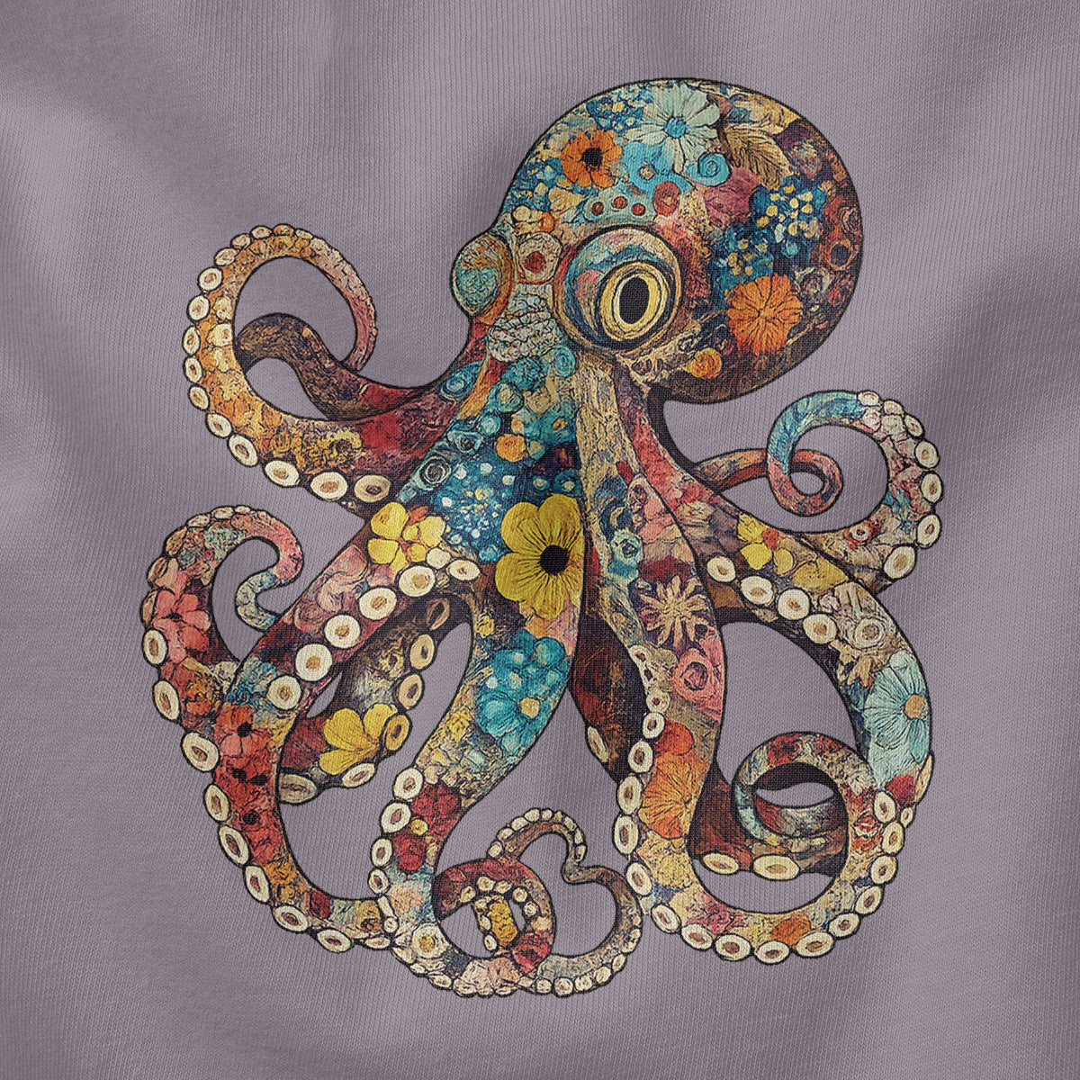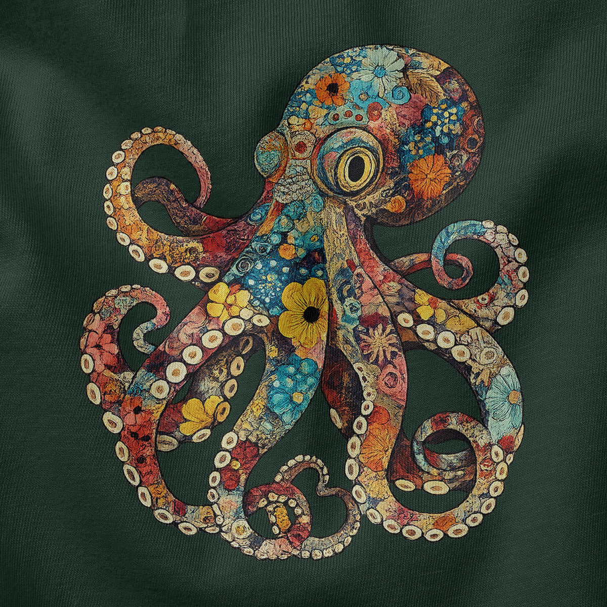 The Vibrant floral octopus bringing color and style Adult Cotton Tee T-Shirt features a colorful octopus design that adds a touch of vibrancy to your outfit. This floral sea creature tee is perfect for those who love octopus with flowers.