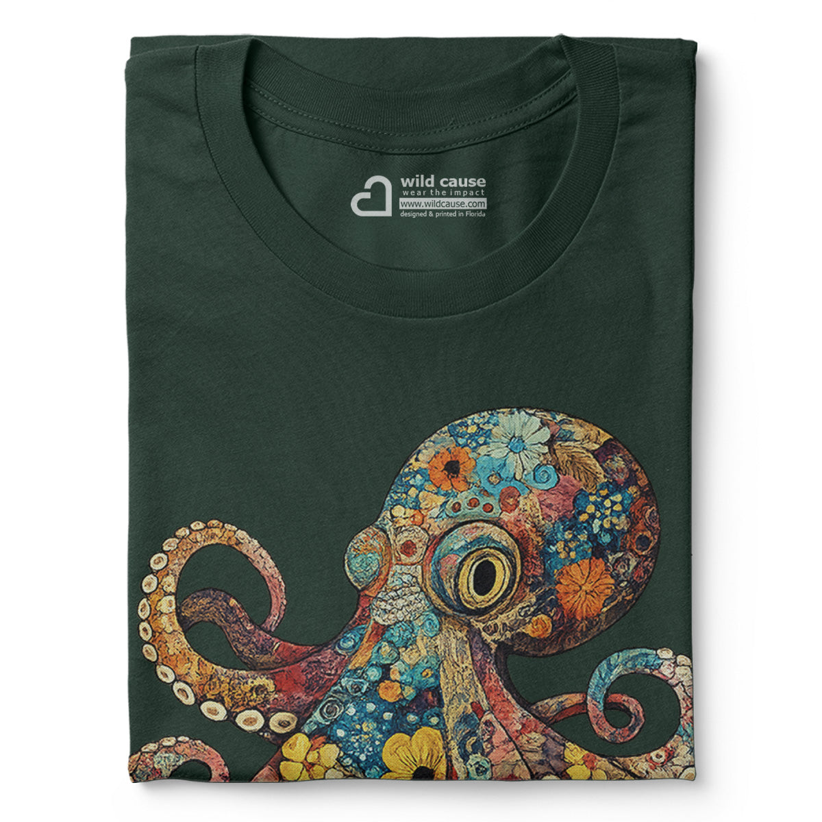 Colorful Vibrant Floral Deep Sea Octopus Adult Cotton Tee T-Shirt