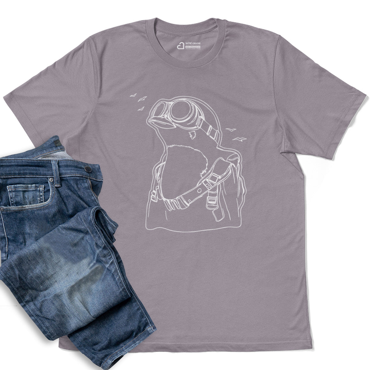 Cute Penguin With Goggles Birdwatching Adult Cotton Tee T-Shirt