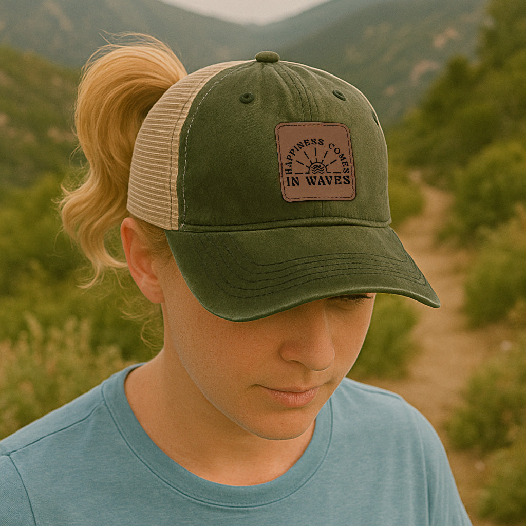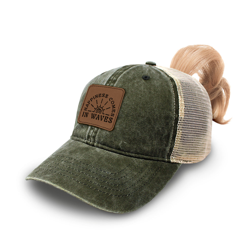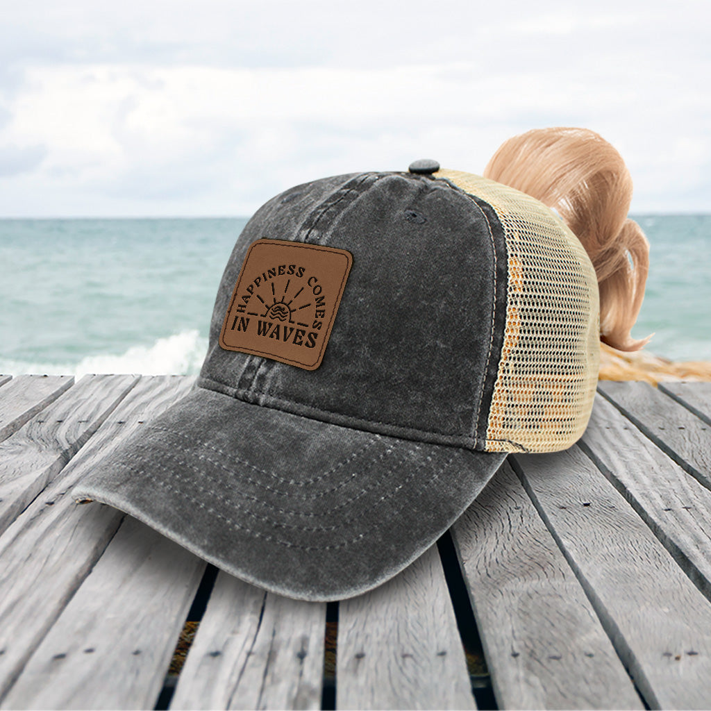 Happiness Comes In Waves Beachlife Vibes Ponytail Cap Hat