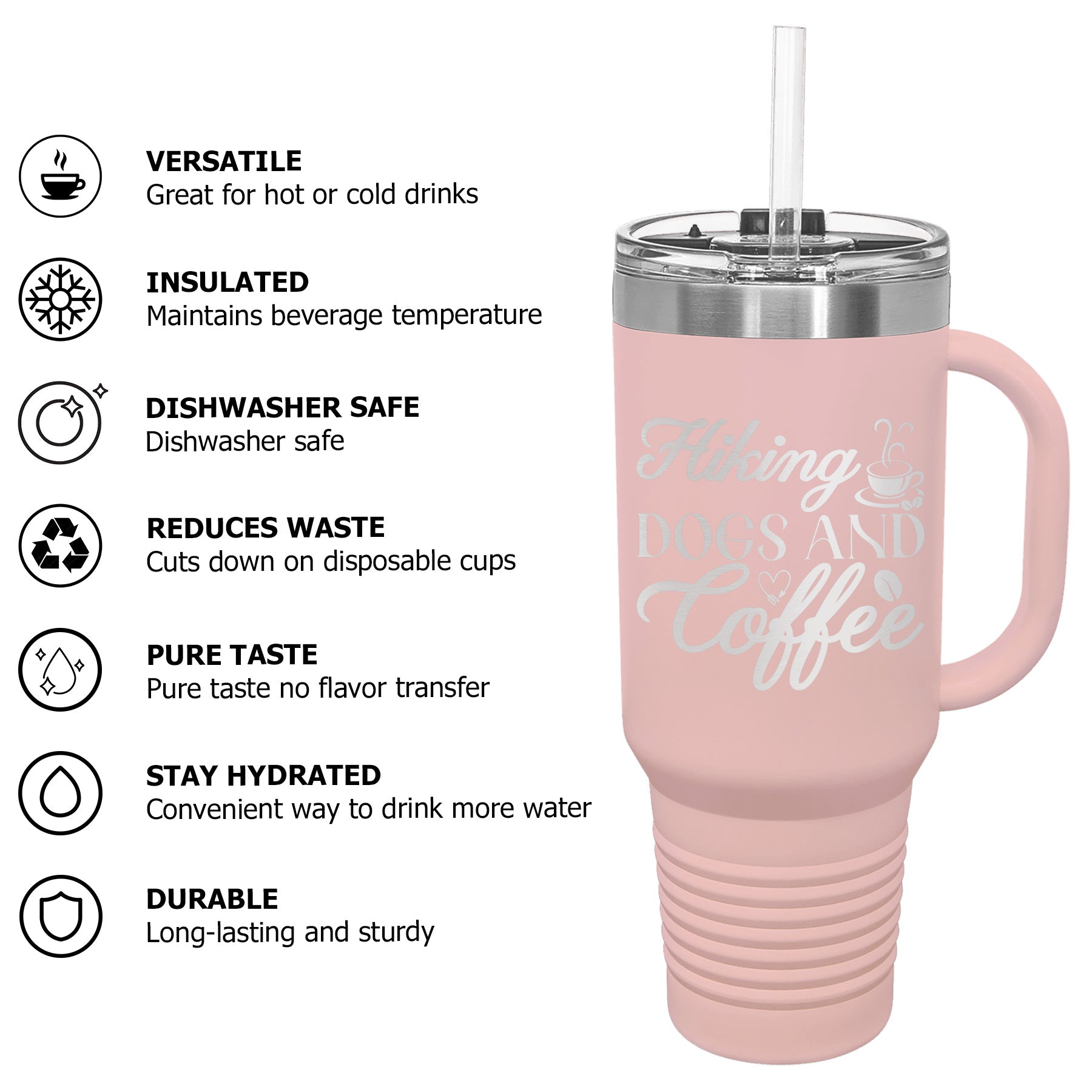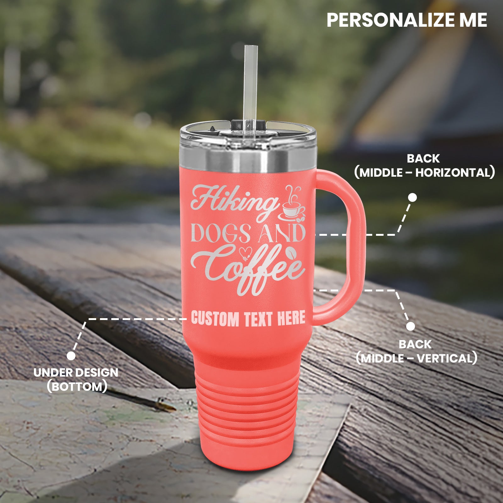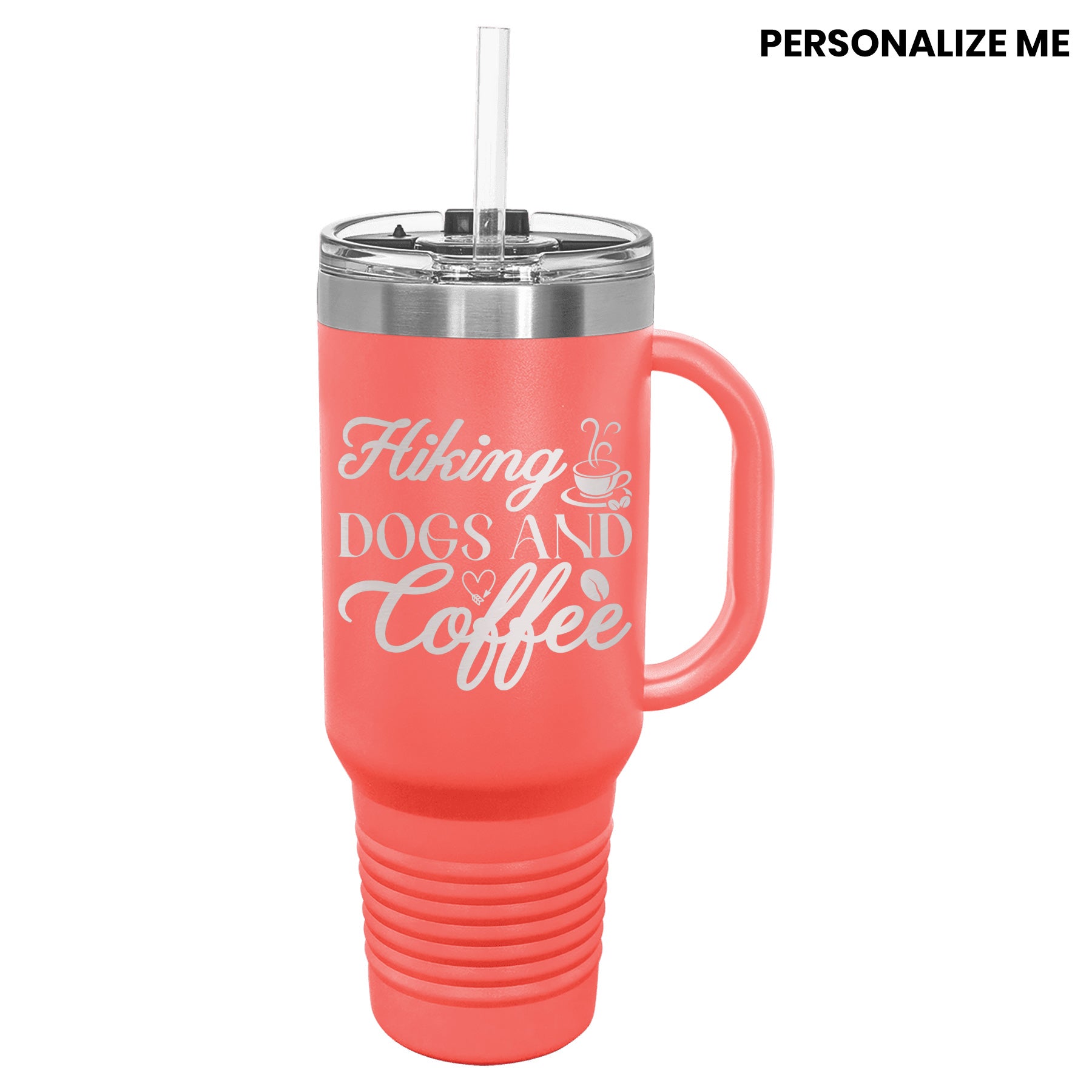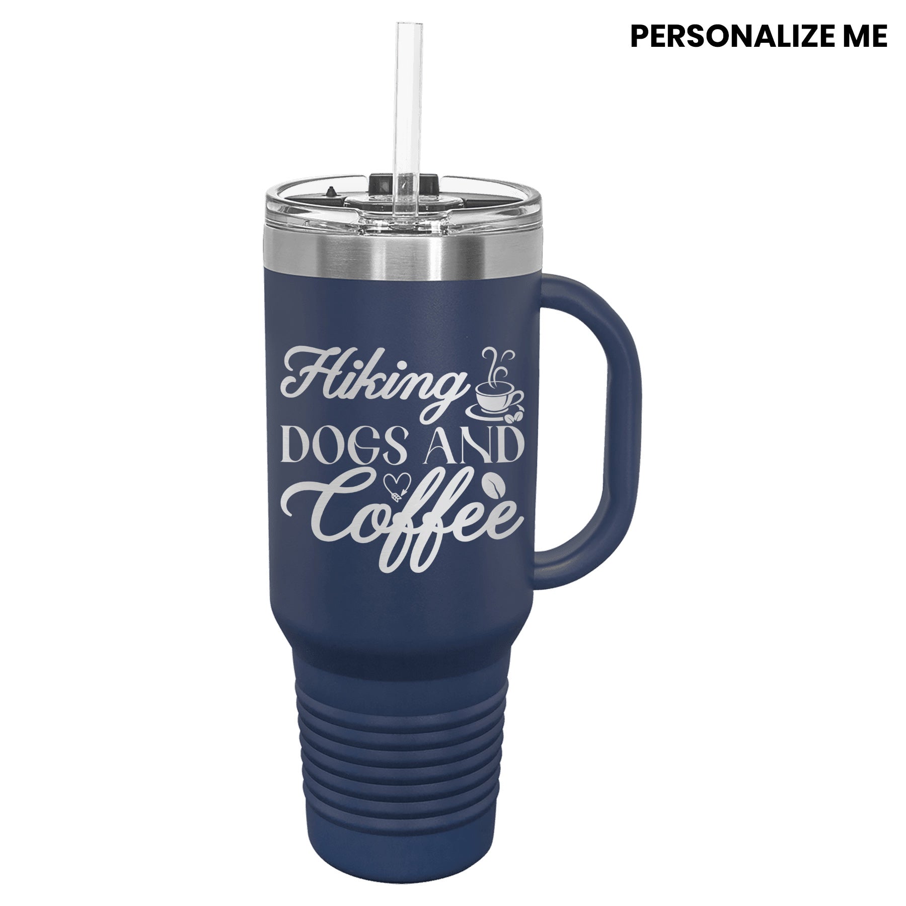 Hiking Dogs And Coffee Vibes Tumbler with Handle
